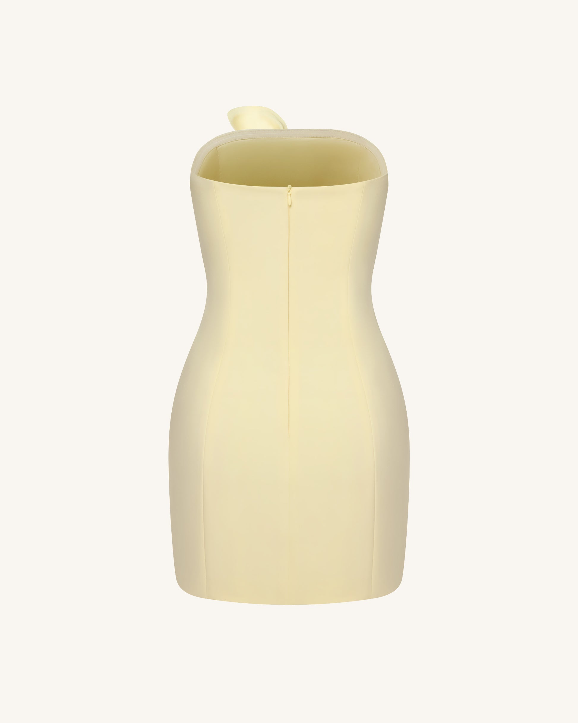 3D立體花卉圖案無肩帶迷你連衣裙 - 黃色