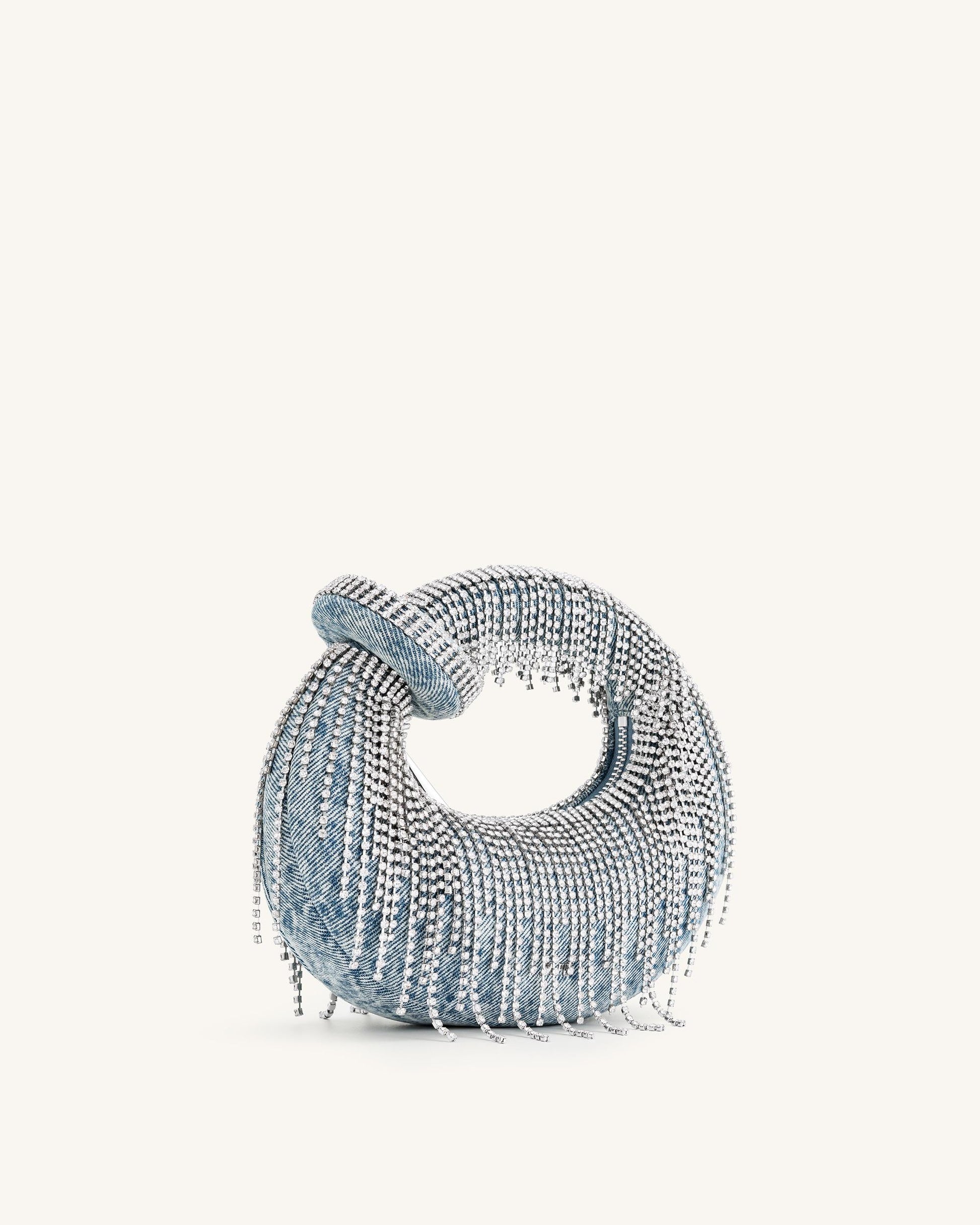 Abacus 牛仔人造水晶迷你手提包 - 藍色