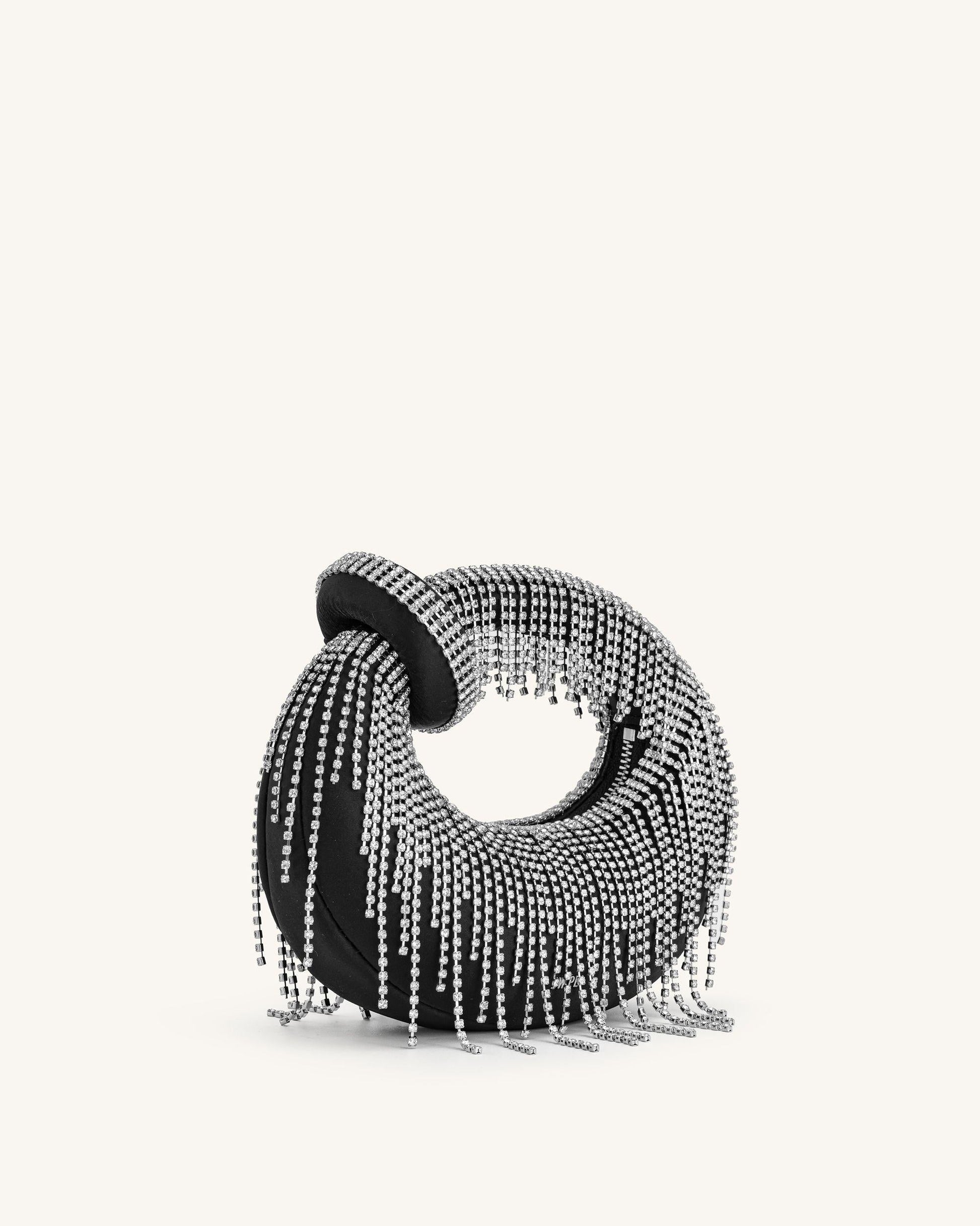 Abacus 緞面人造水晶迷你手提包 - 黑色