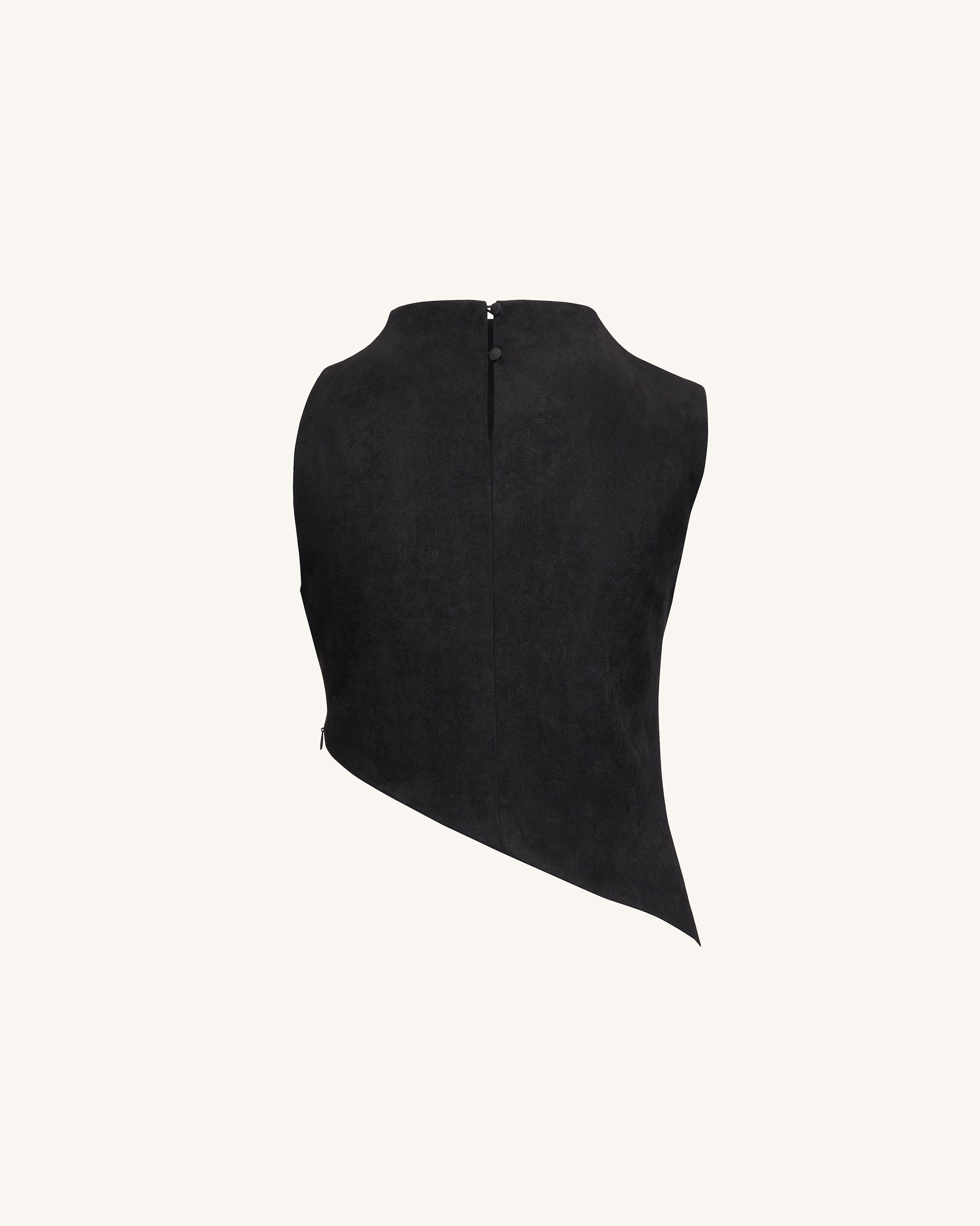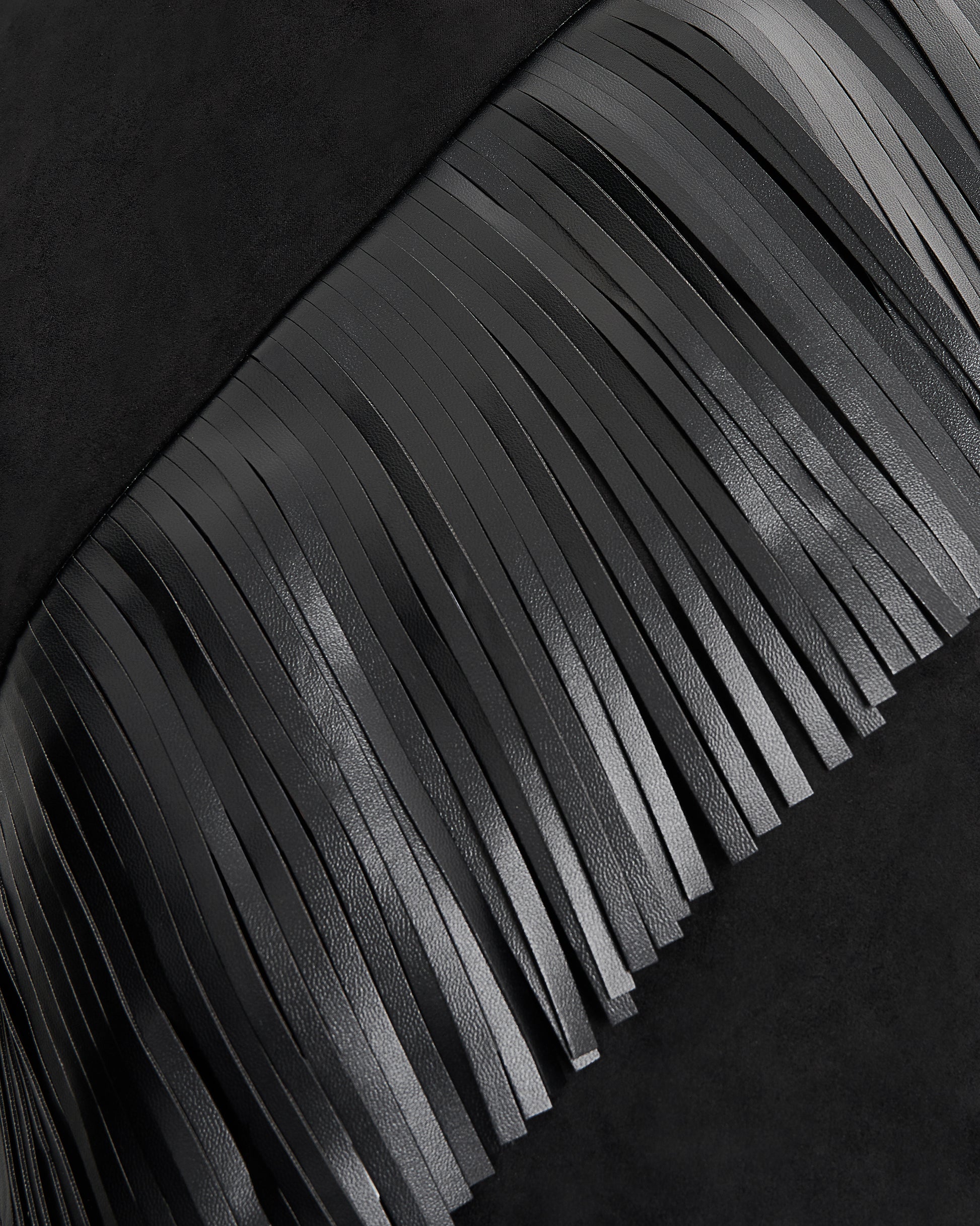 Adeline 不對稱流蘇絨面上衣 - 黑色