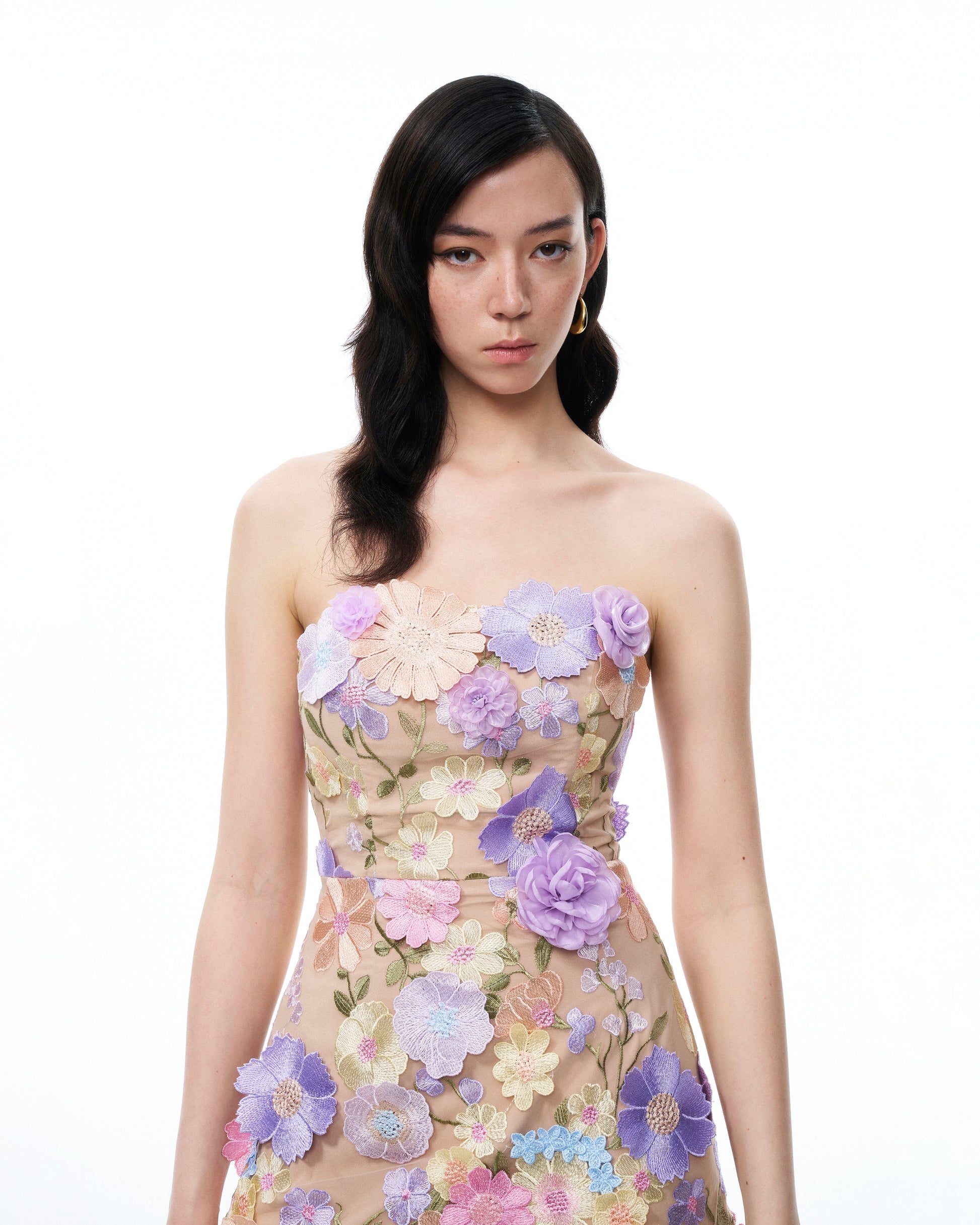 Amelie 花卉刺繡迷你裙-粉彩拼色