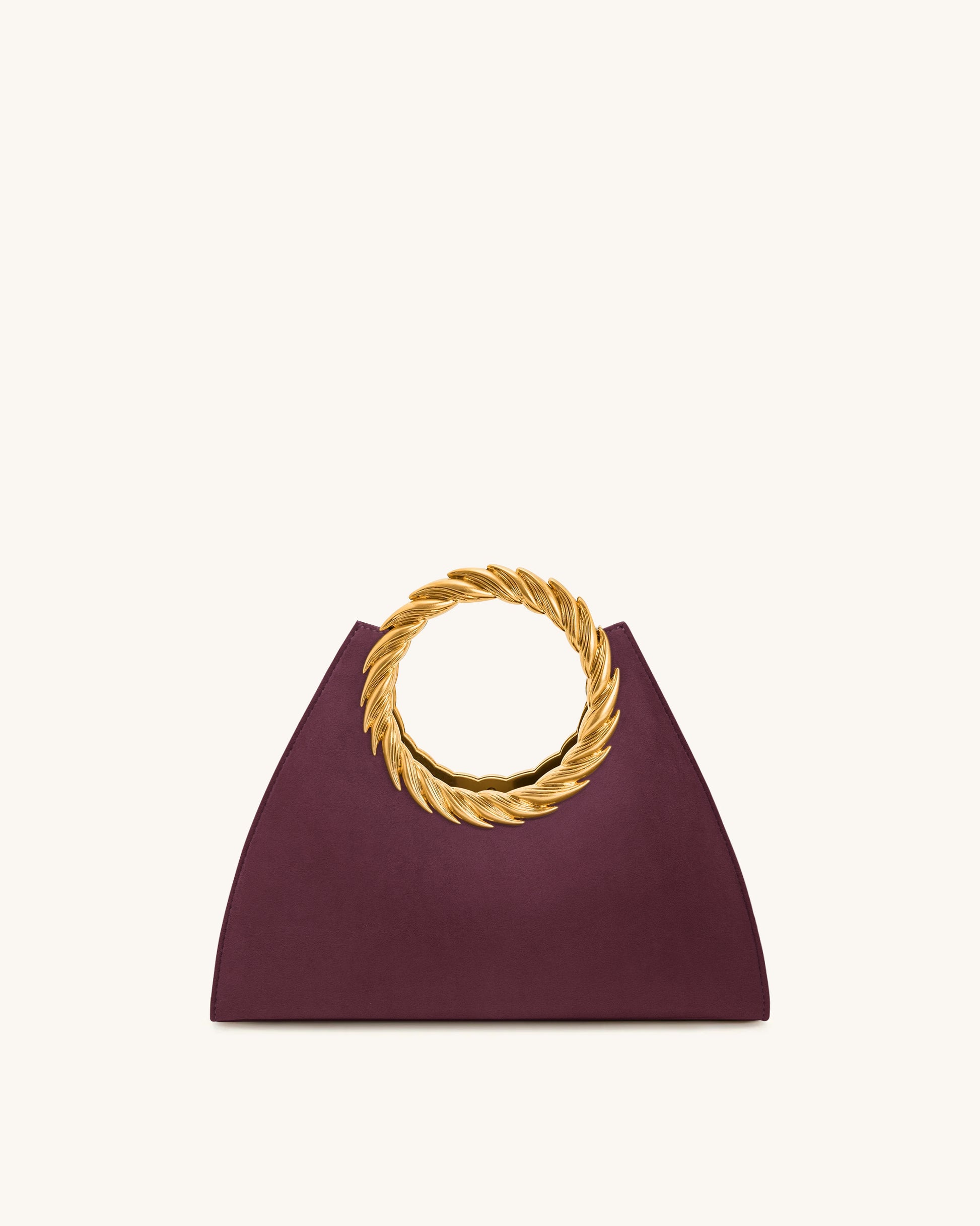 Amiya 葉形手柄仿麂皮雕塑包 - 梅洛酒紅色