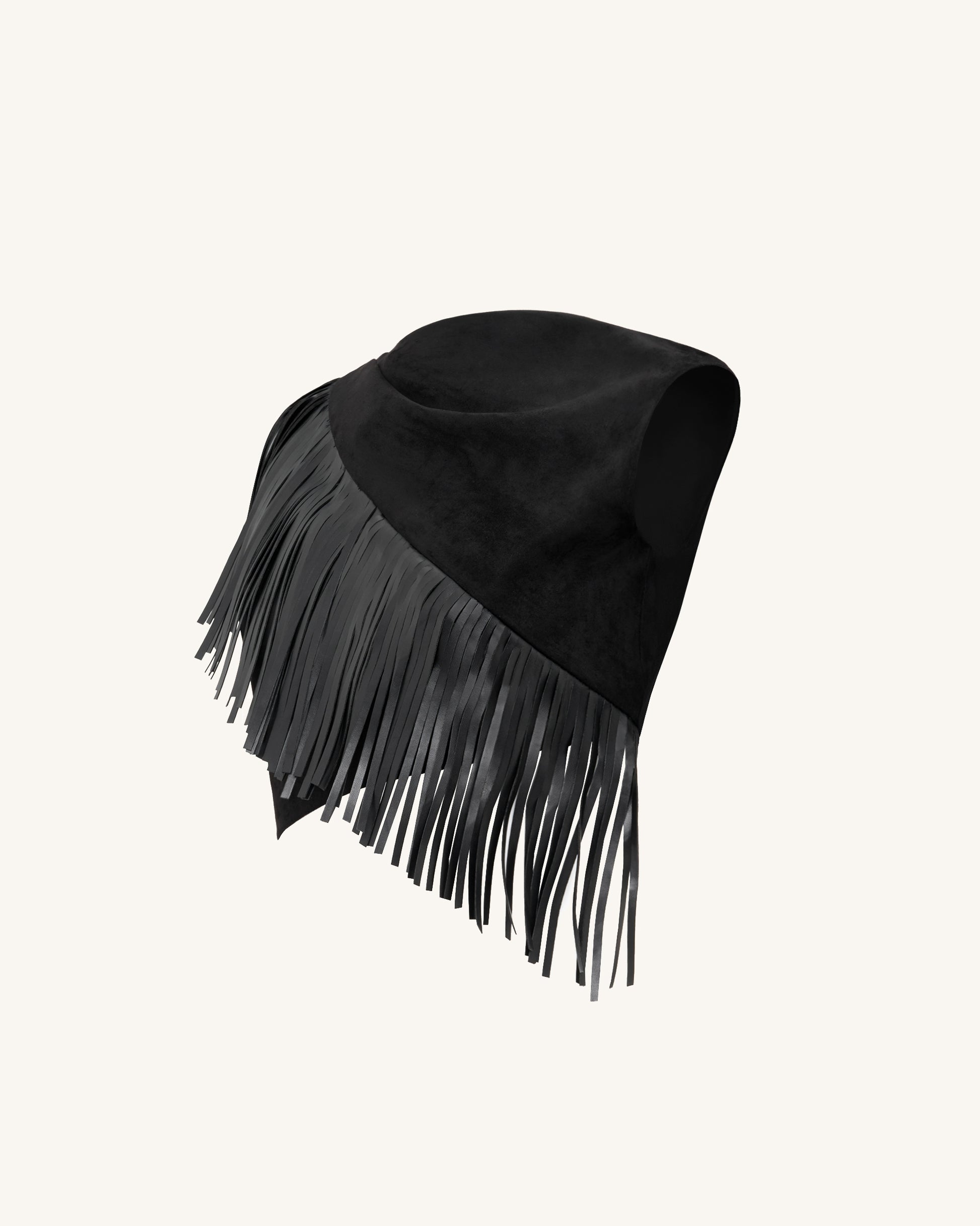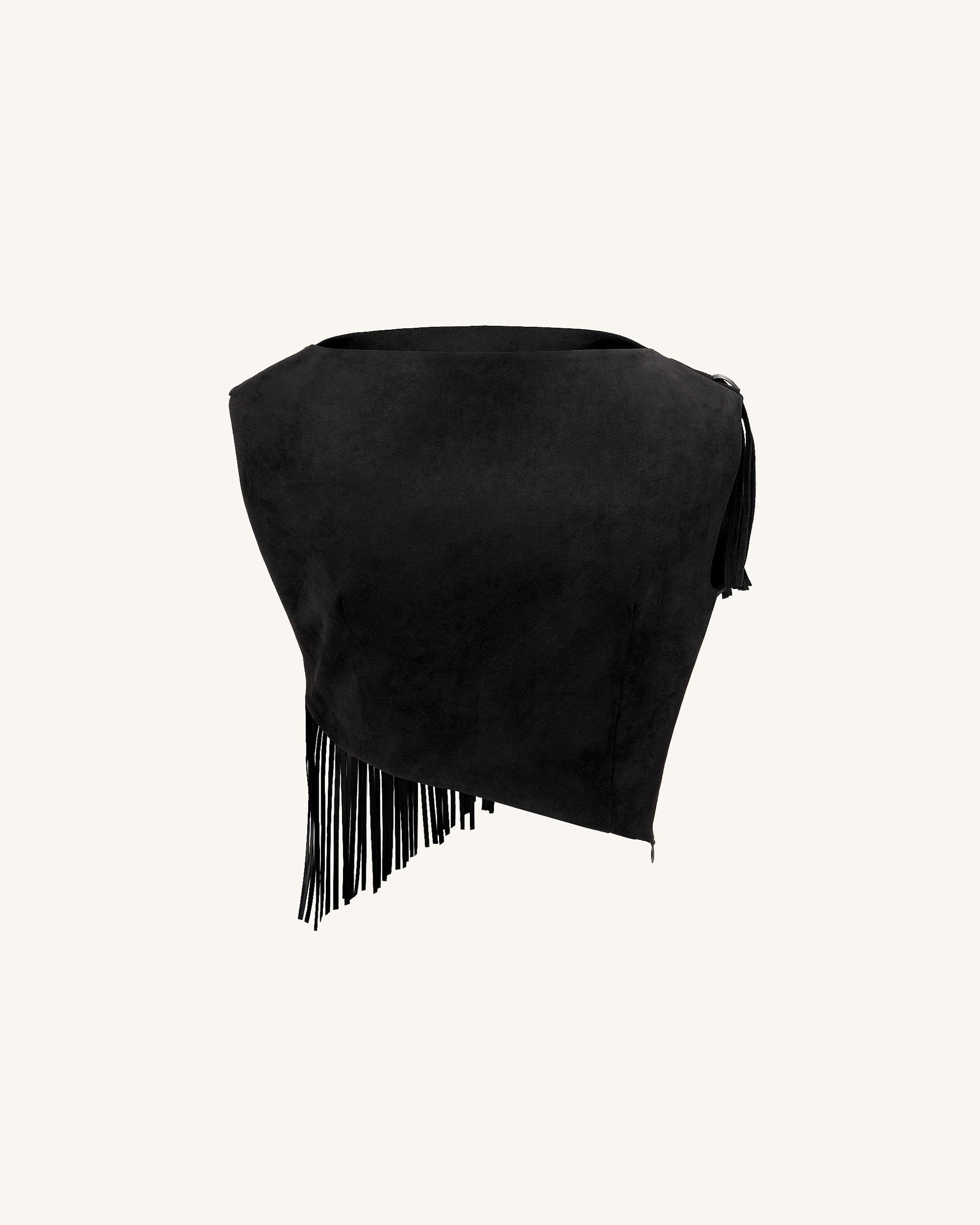 Ariana 不對稱流蘇絨面上衣 - 黑色