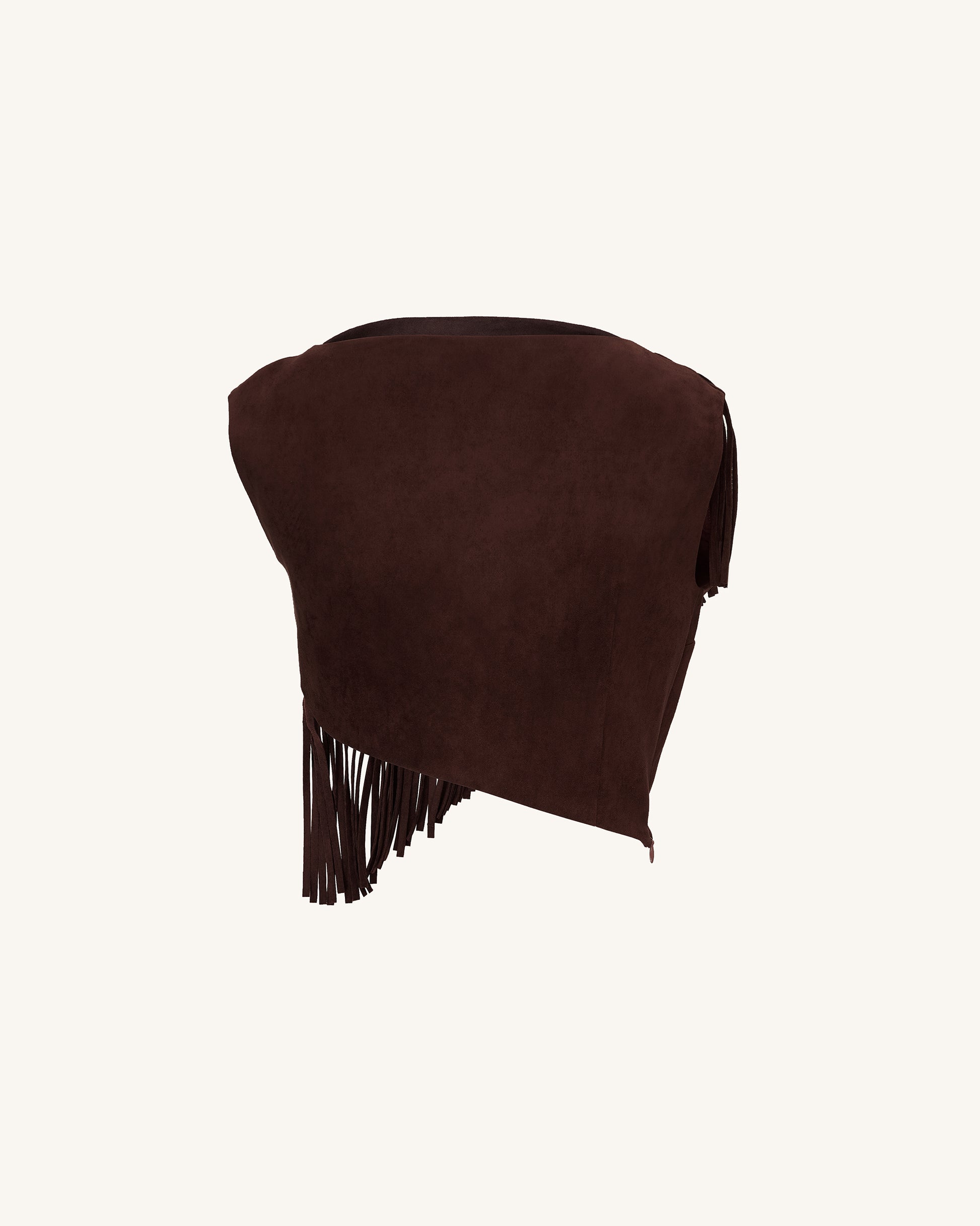 Ariana 不對稱流蘇絨面上衣 - 酒紅色