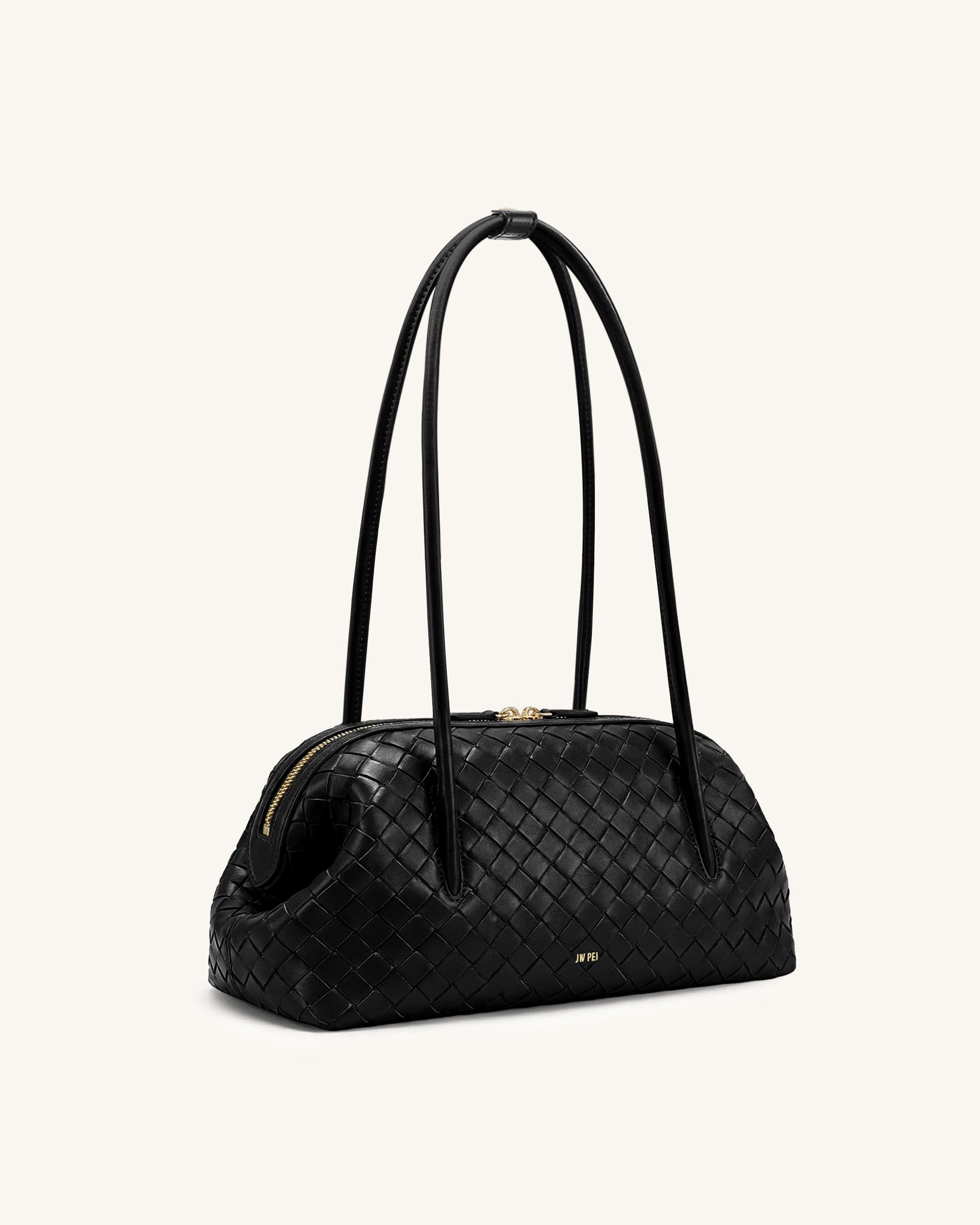 Aveline 編織紋理肩袋 - 黑色
