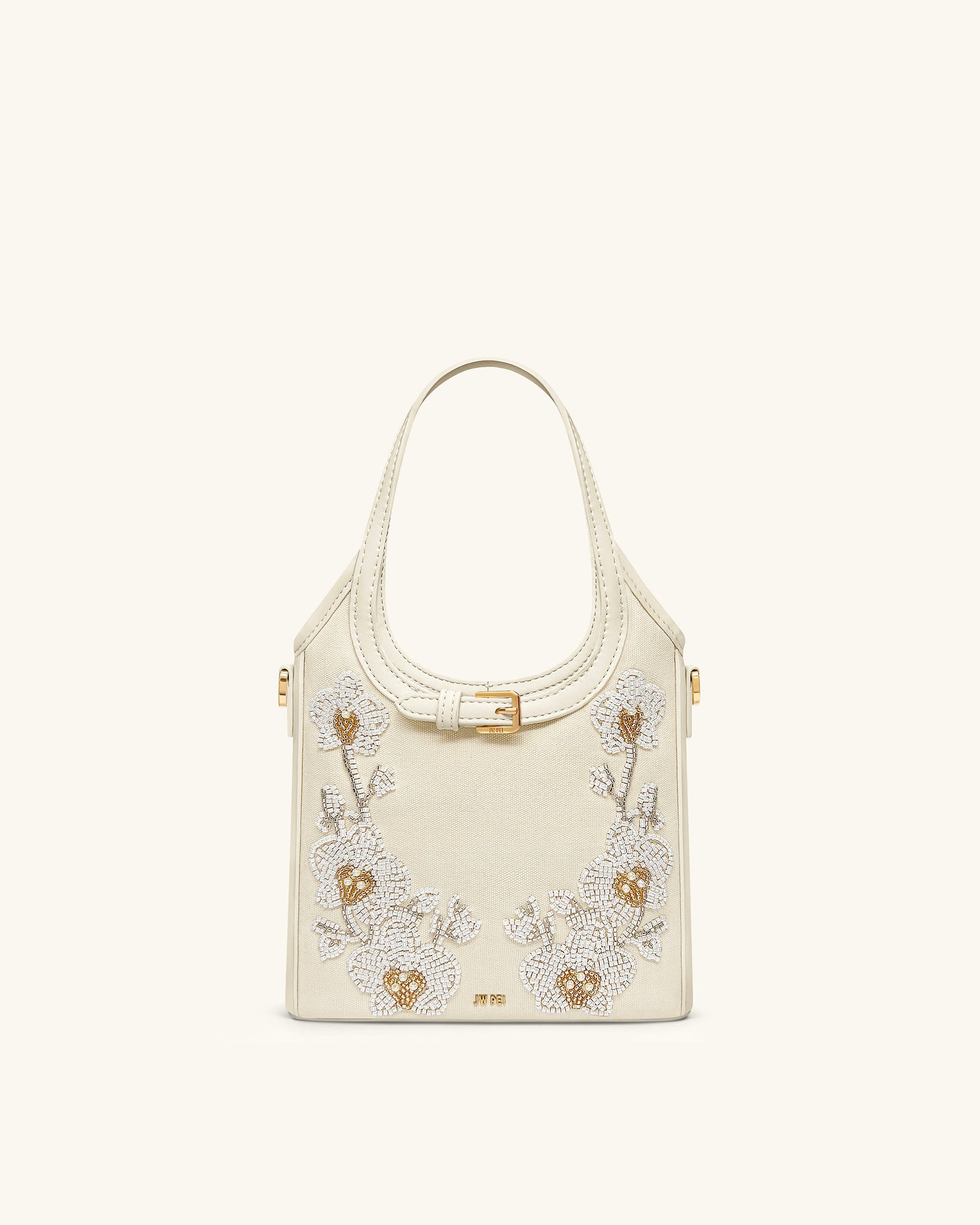Brooke 迷你綴飾帶蝴蝶蘭珠飾手提包 - 象牙白