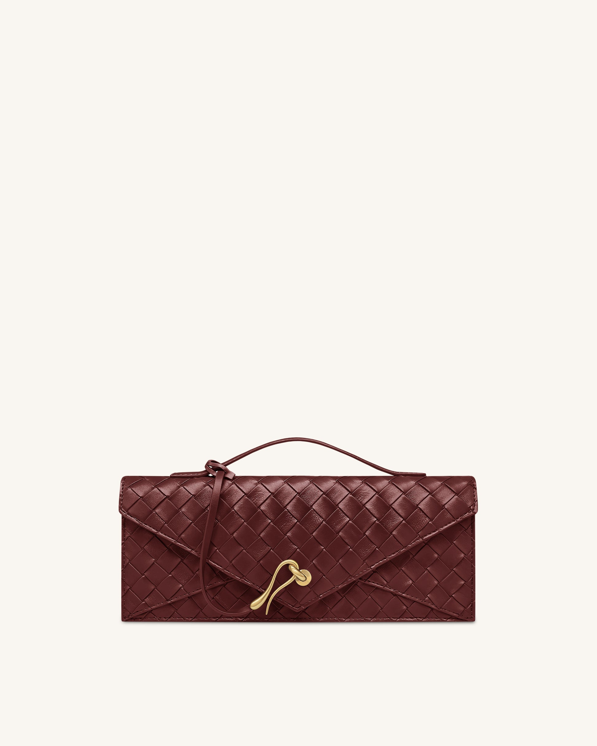 Celeste 編織紋理信封式手挽袋 - 酒紅色