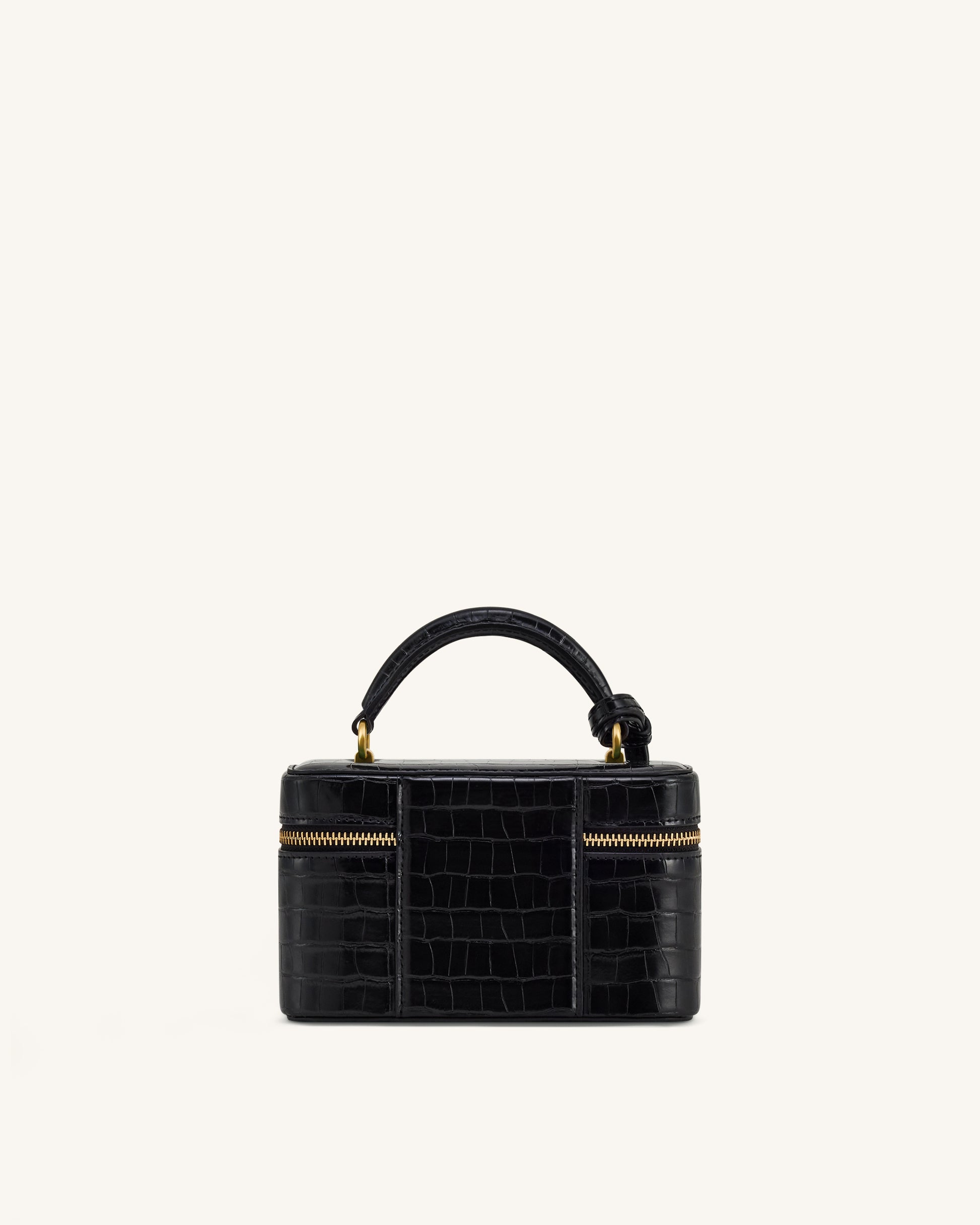 Cleo 盒形手挽袋 - 黑色鱷魚紋