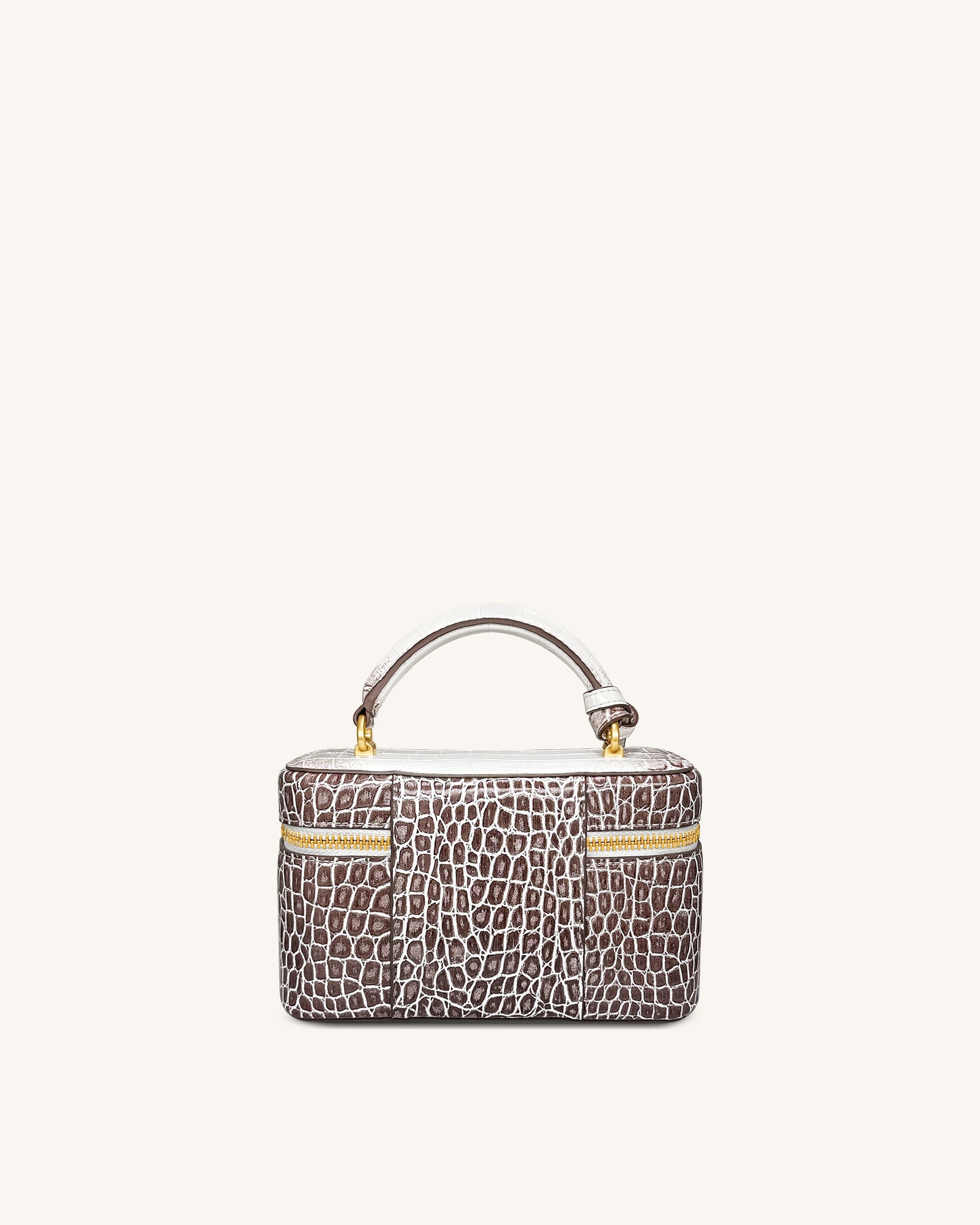 Cleo 盒形手挽袋 - 白色鱷魚紋
