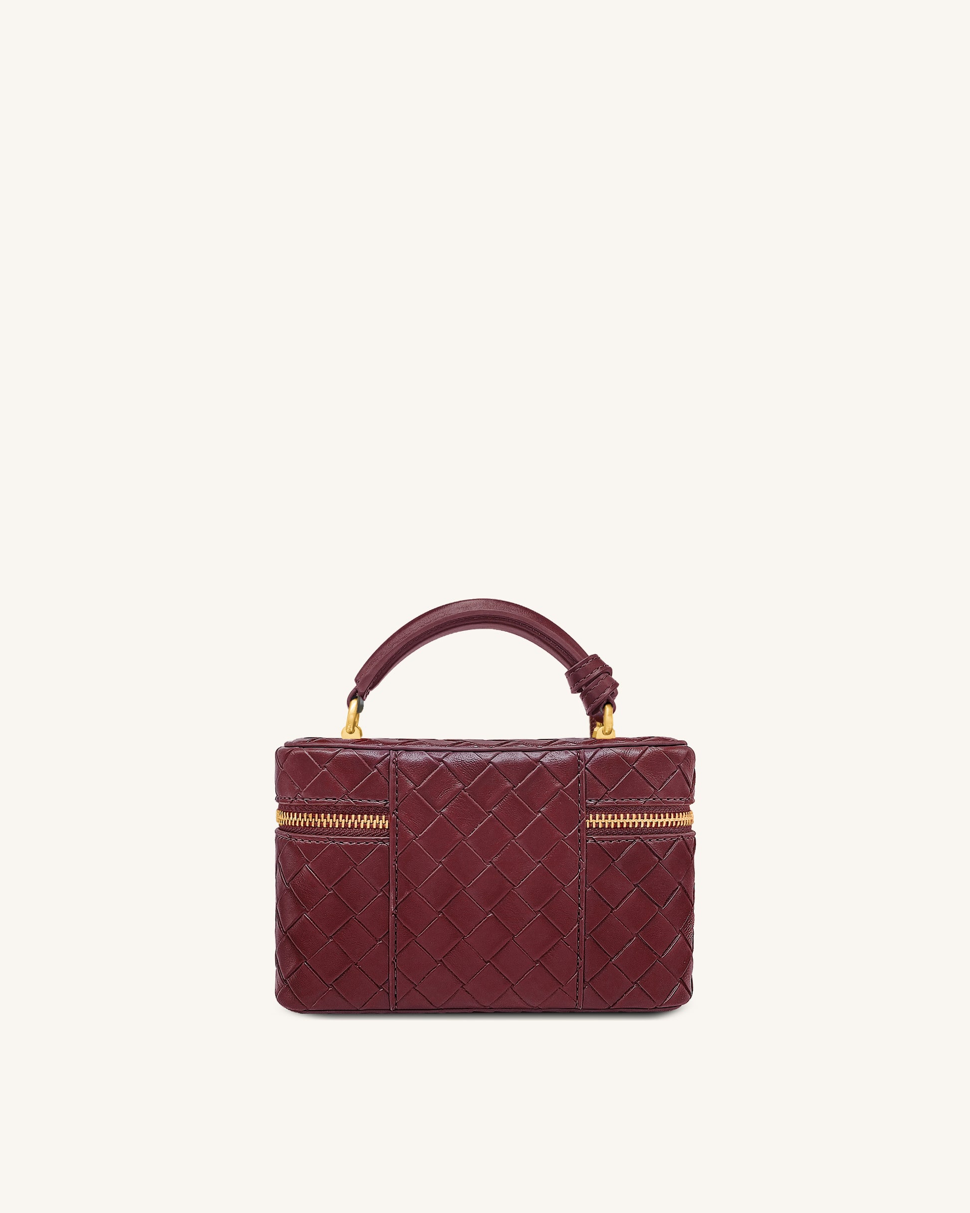 Cleo 編織紋理盒形手挽袋 - 酒紅色