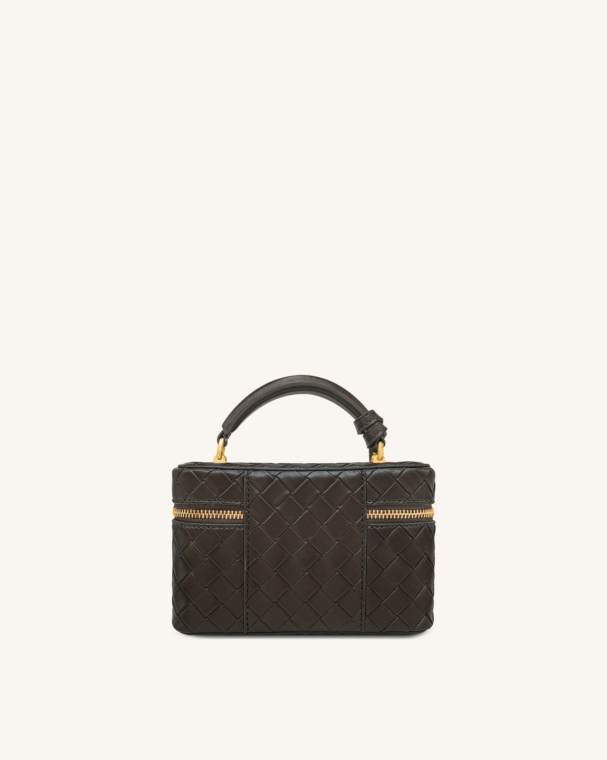 Cleo 編織紋理盒形手挽袋 - 深啡色