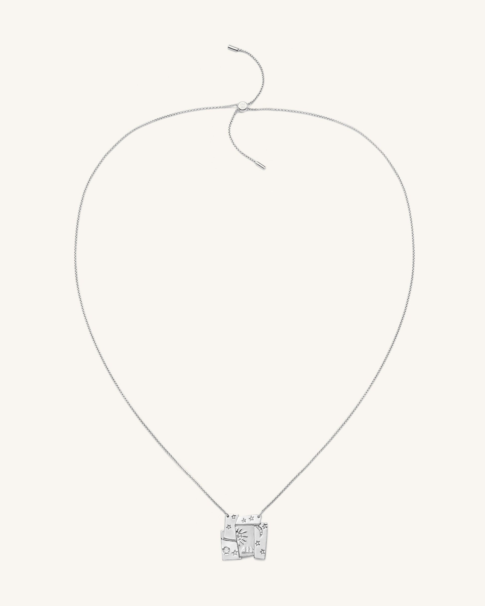 Cosmos 組合項鍊 - 18ct 鍍白金&白色鋯石