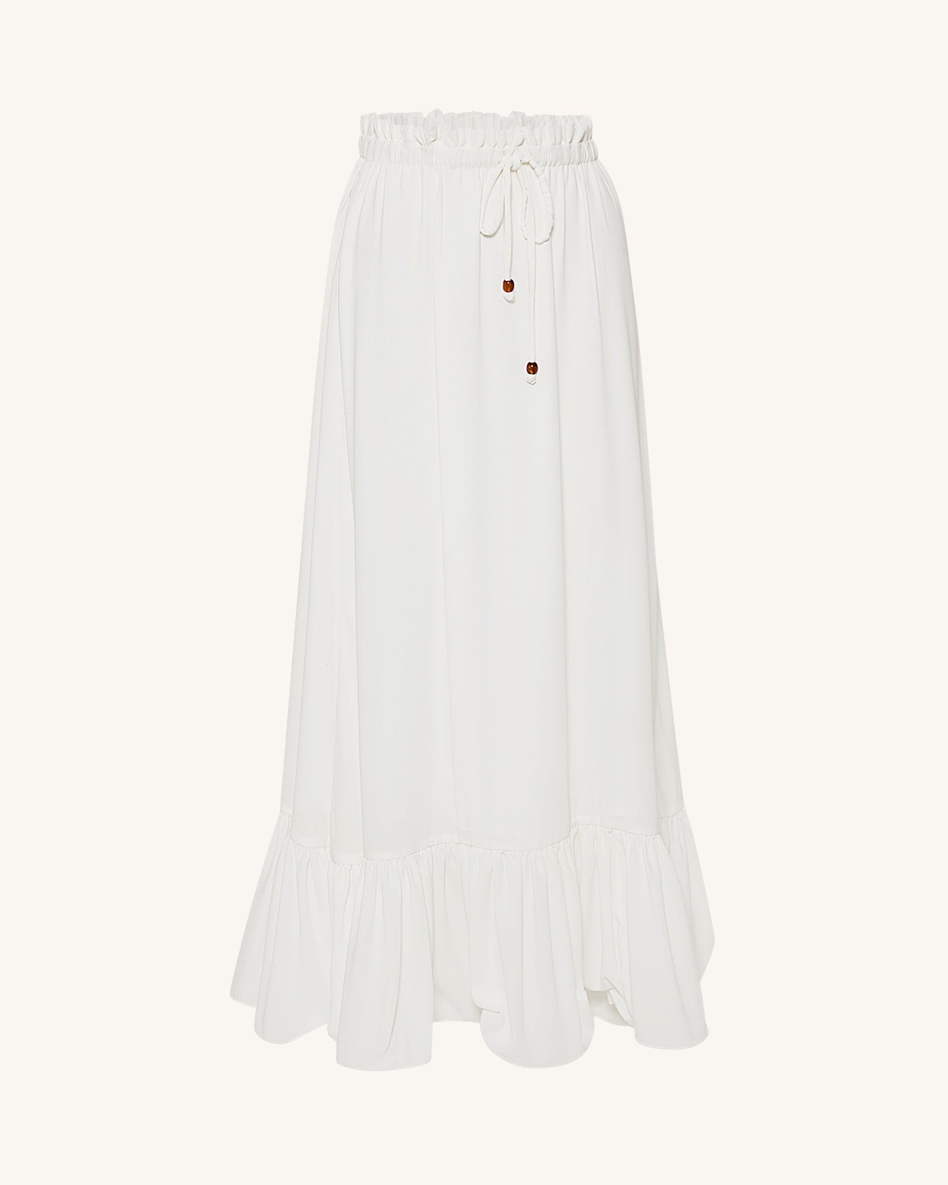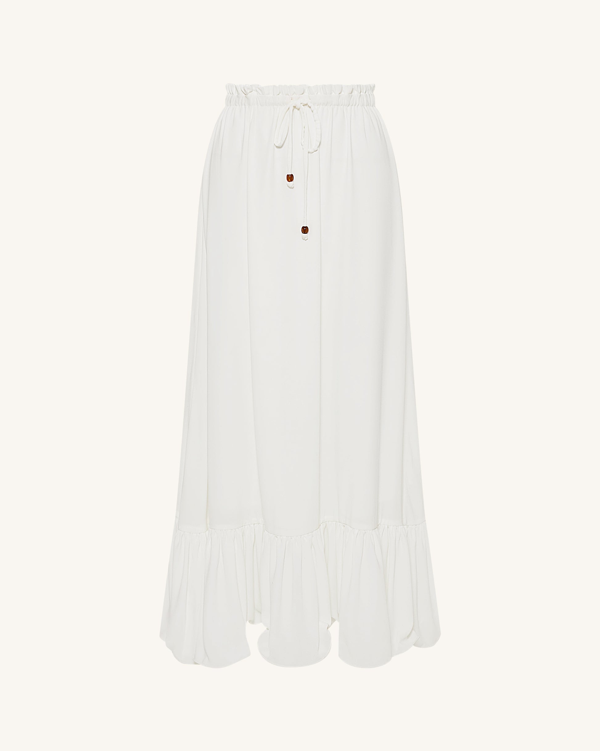 抽繩雪紡長裙 - 白色