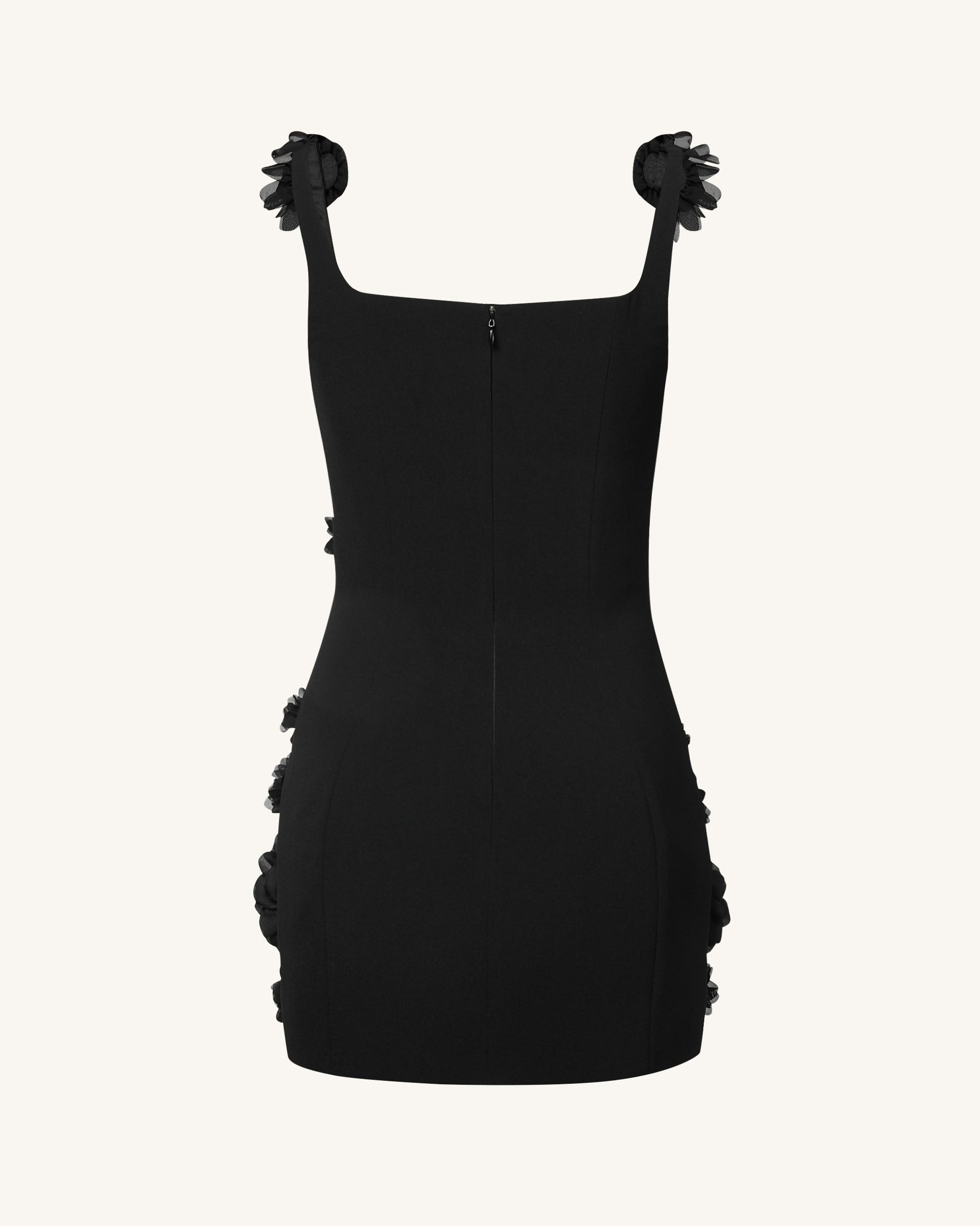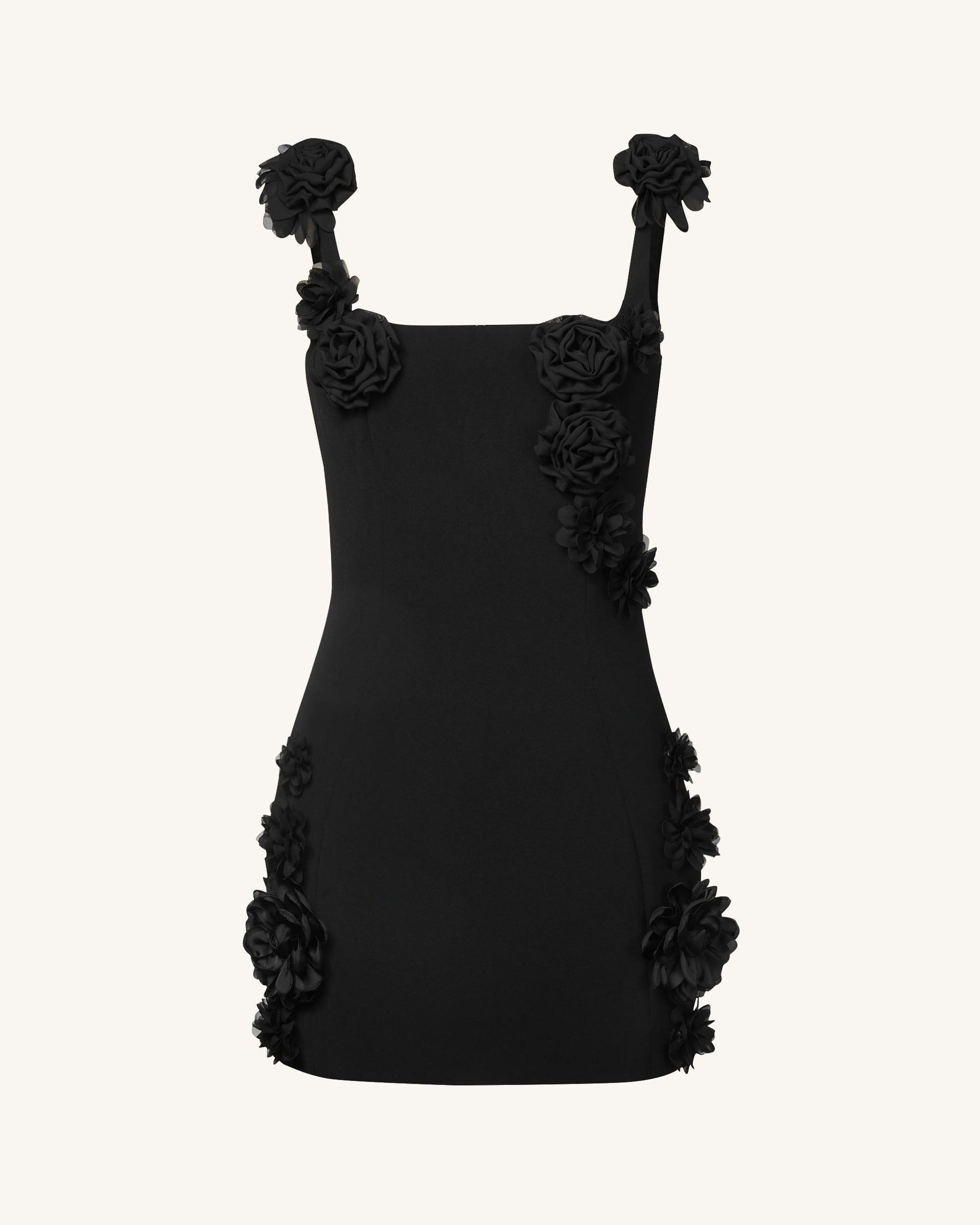 Elaina 黑色玫瑰花飾迷你連衣裙-黑色