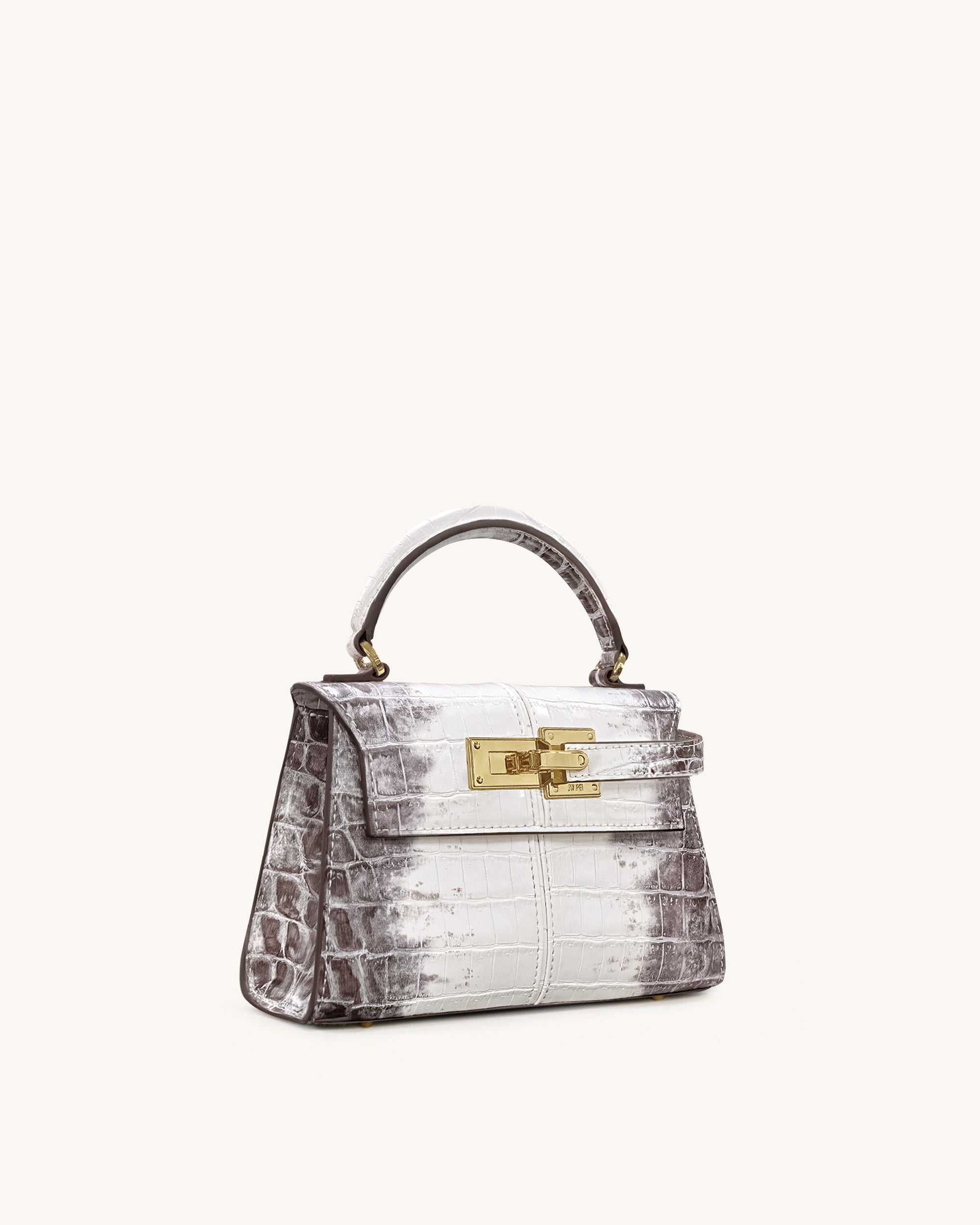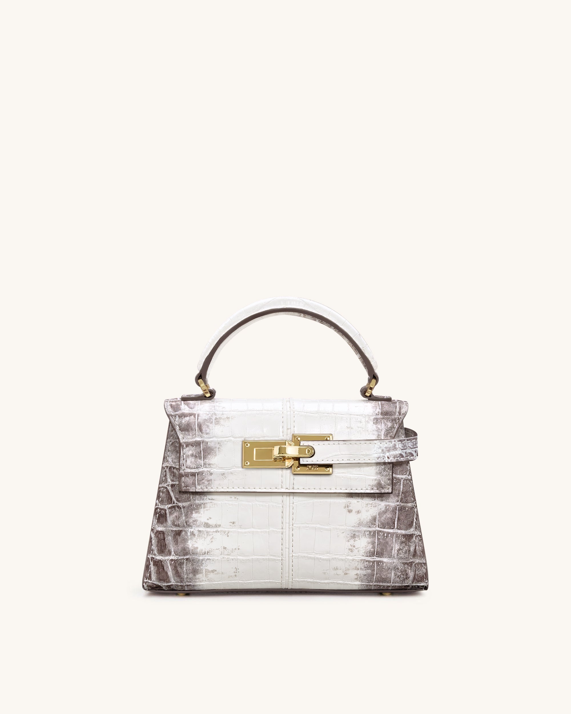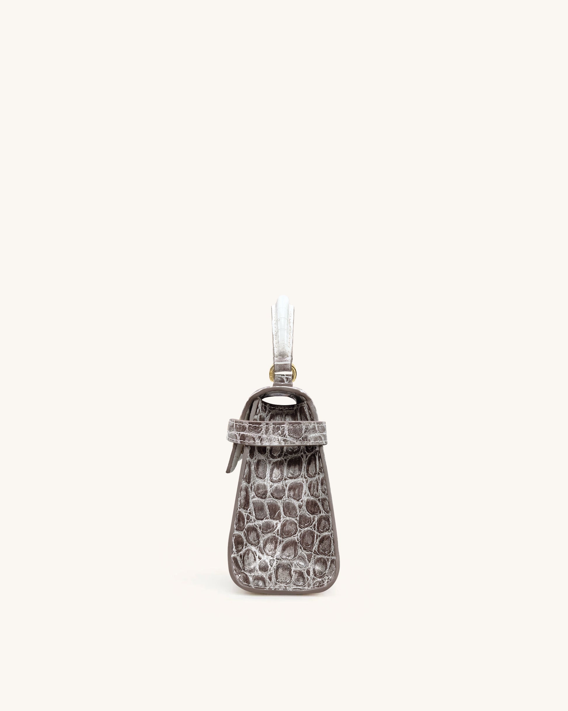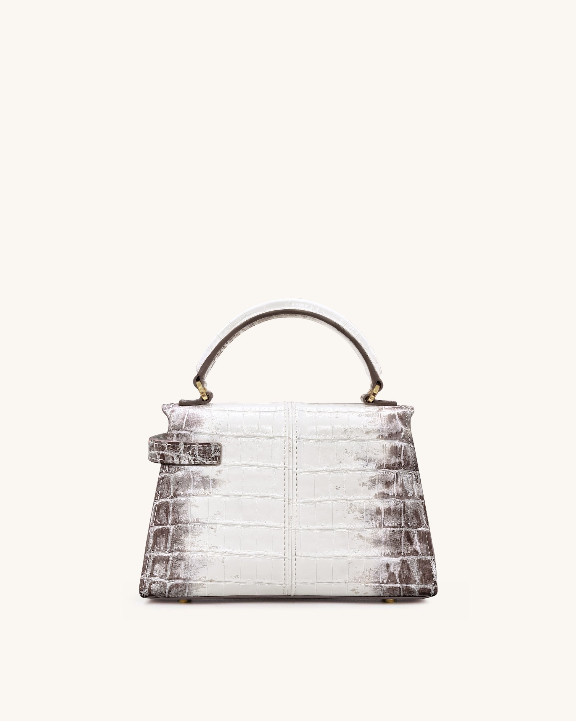 利落鱷魚紋素皮革,呈現簡約梯形剪裁。金色金屬配件突顯現代時尚感。配備可調節可拆式肩帶,攜帶方式靈活多變。