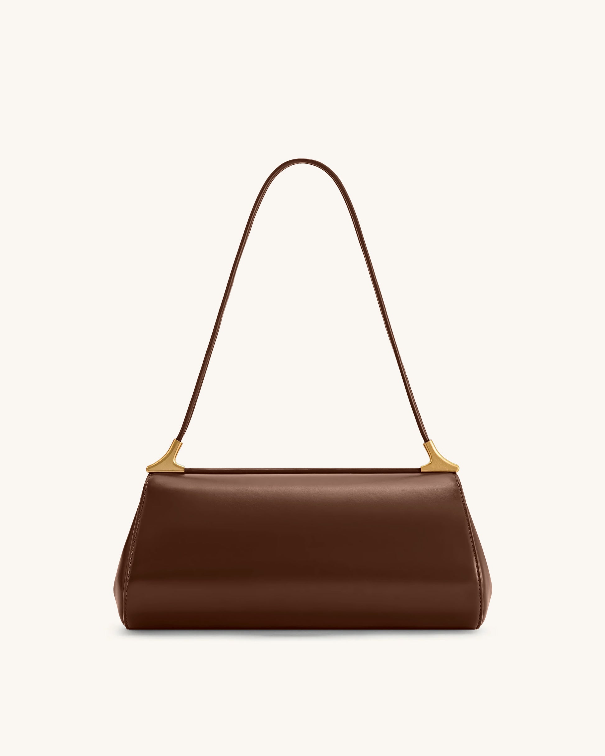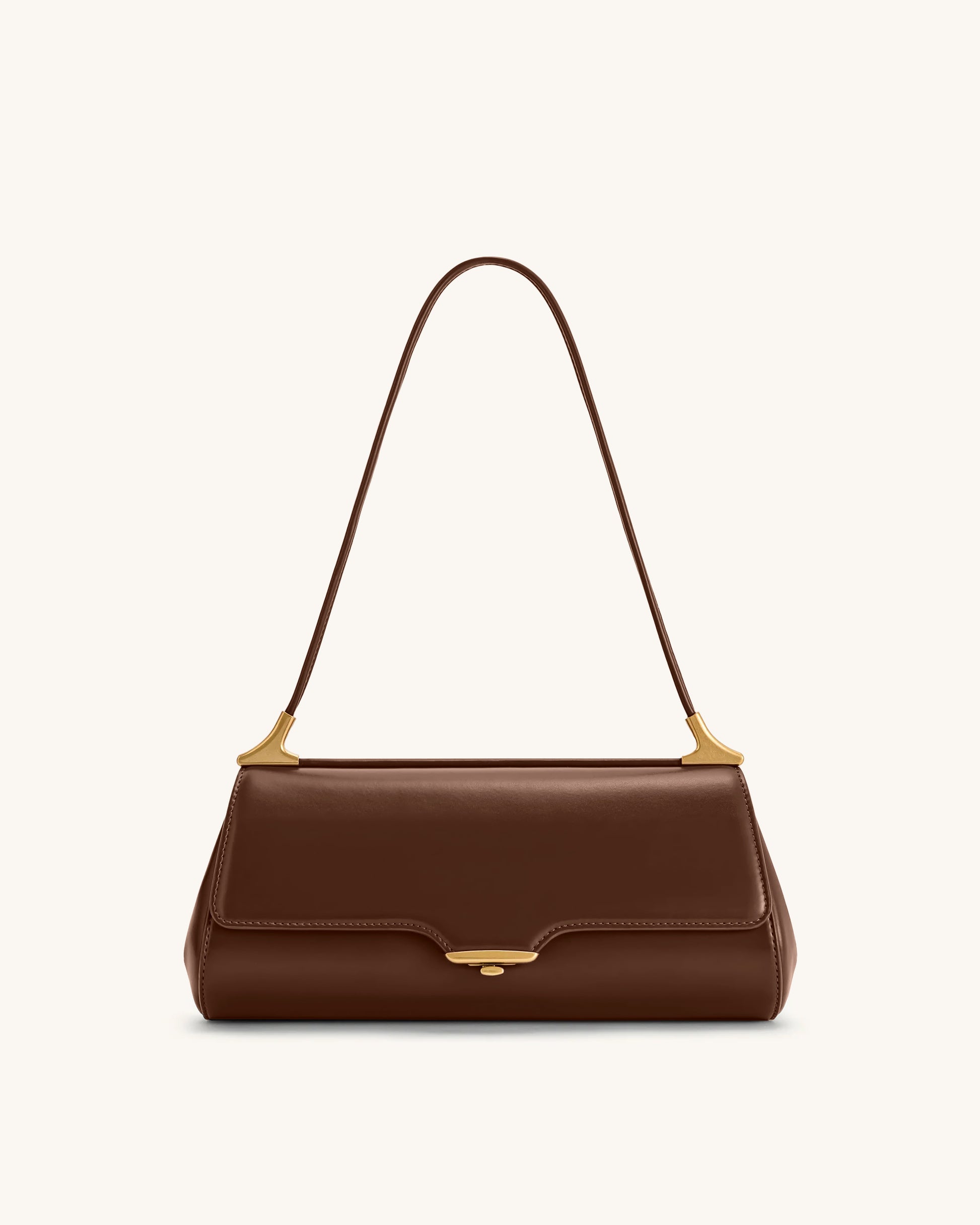 優雅的深棕色肩揹袋,結構流暢。金色五金點綴增添高雅氣息。適合必需品及日常使用。
