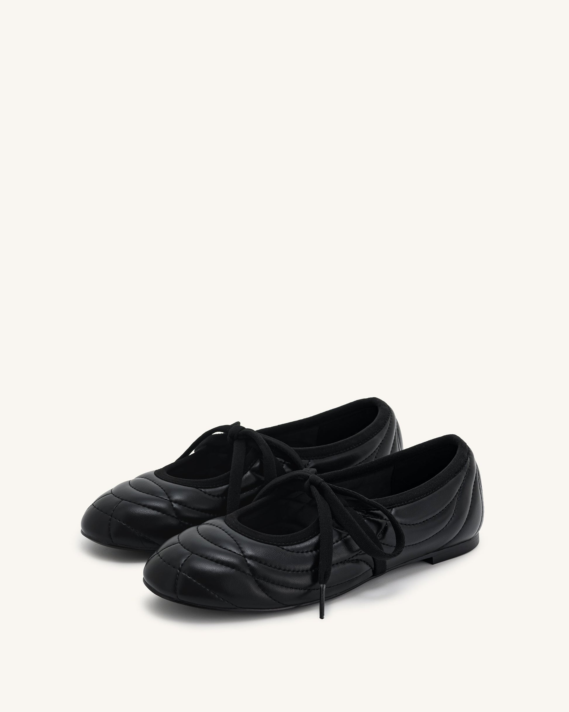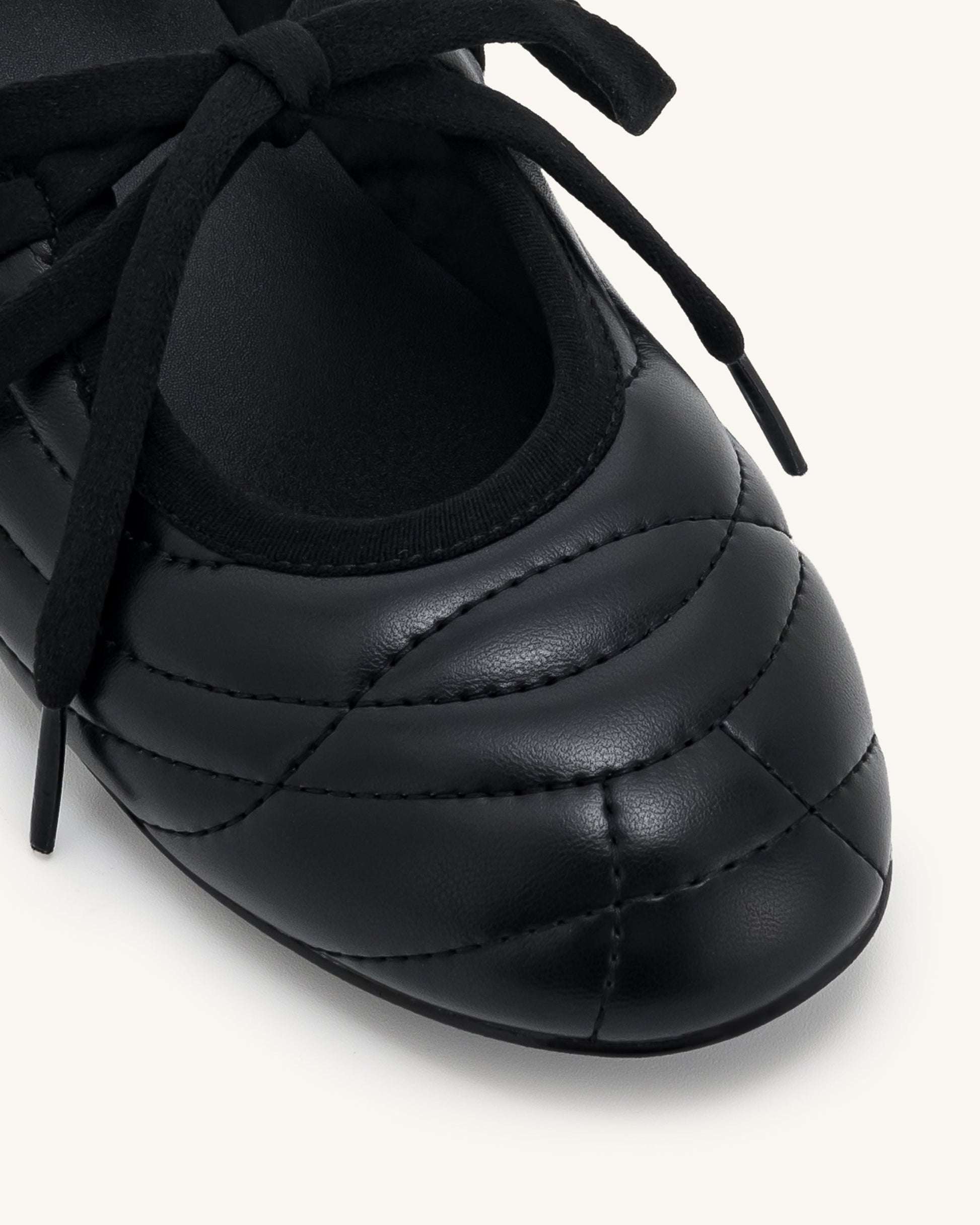 Erika 明線繫帶芭蕾平底鞋 - 黑色