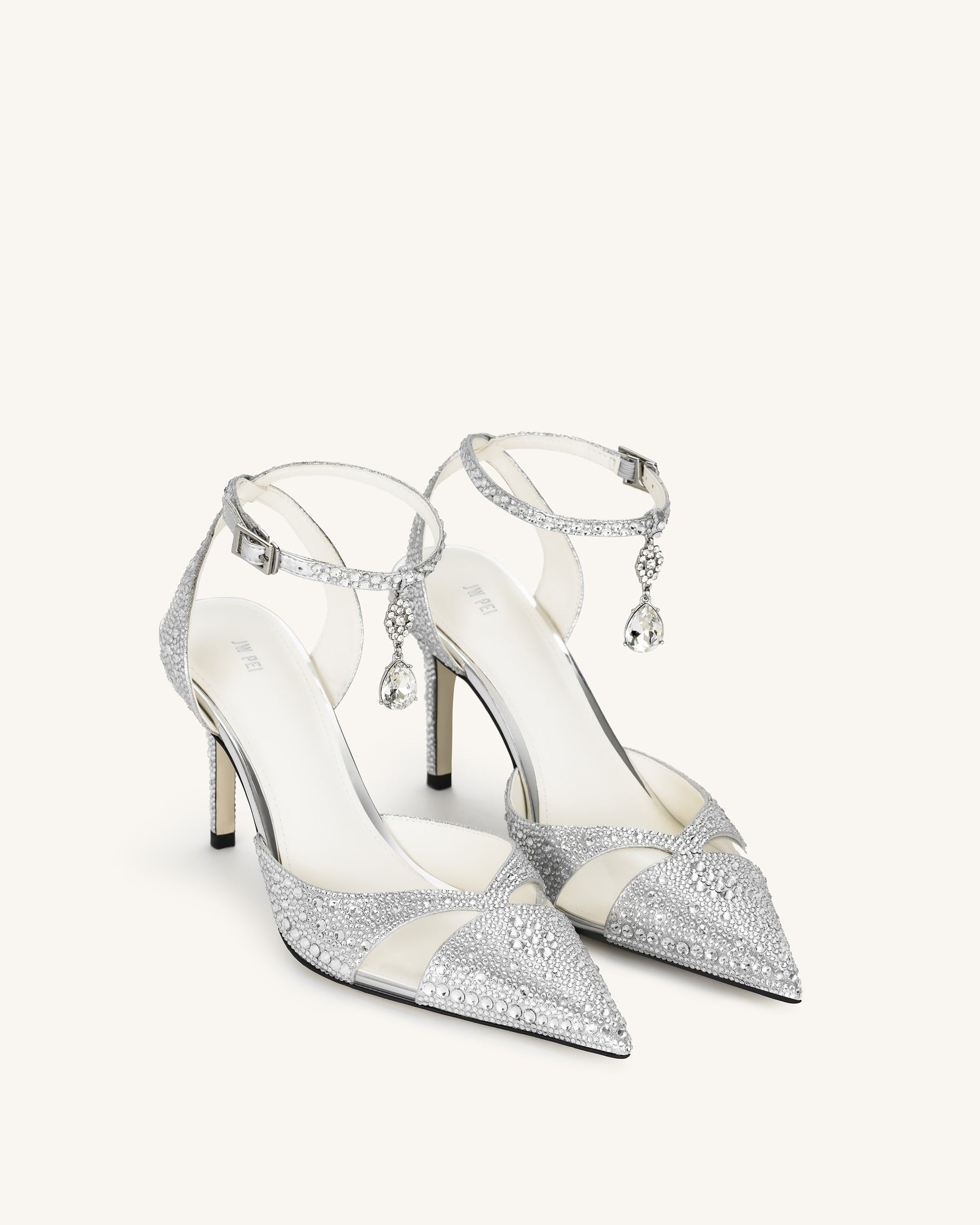 Haidi 人造水晶高跟鞋 - 銀色