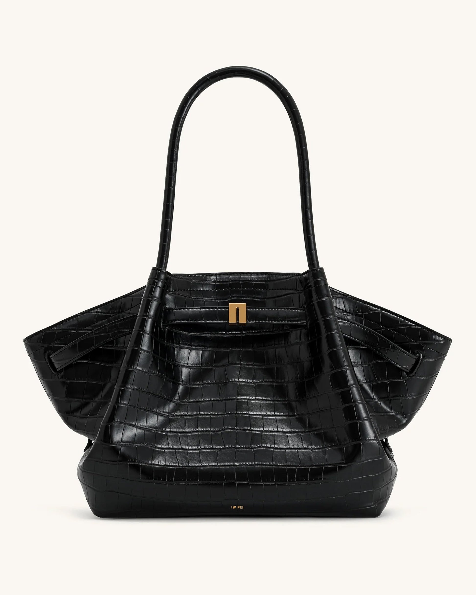 Hana 大型托特包 - 黑色鱷魚紋