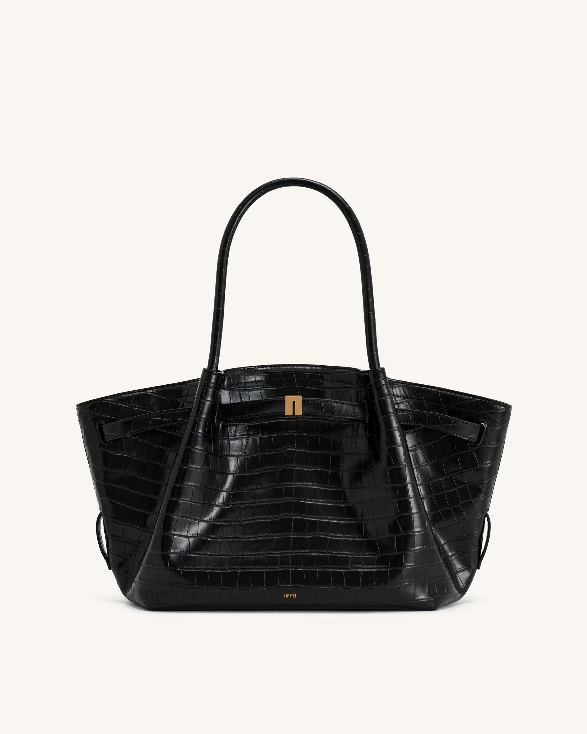 Hana 中型手提袋 - 黑色鱷魚紋