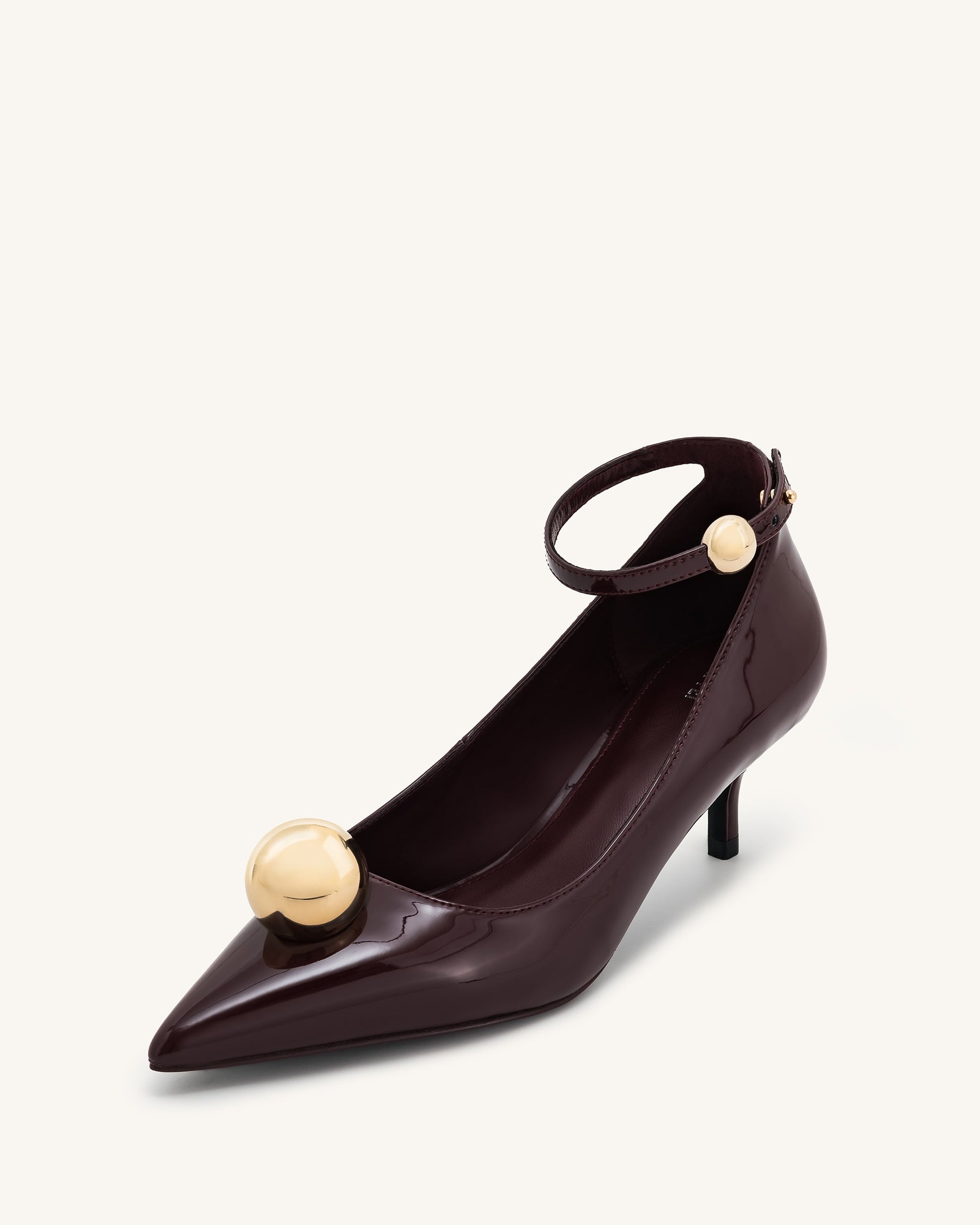 Jewel 搭扣小貓跟高跟鞋 - 酒紅色