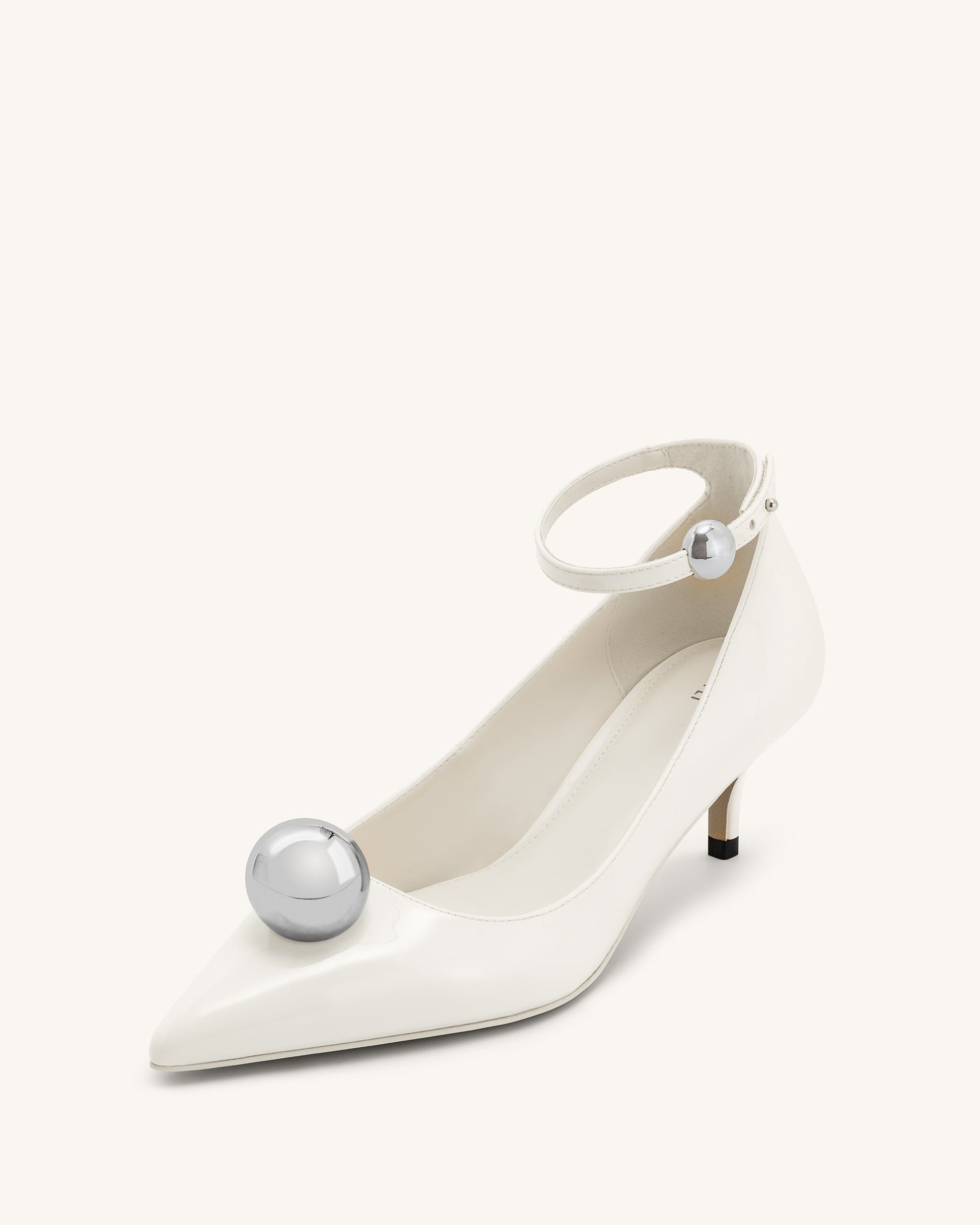 Jewel 搭扣小貓跟高跟鞋 - 白色