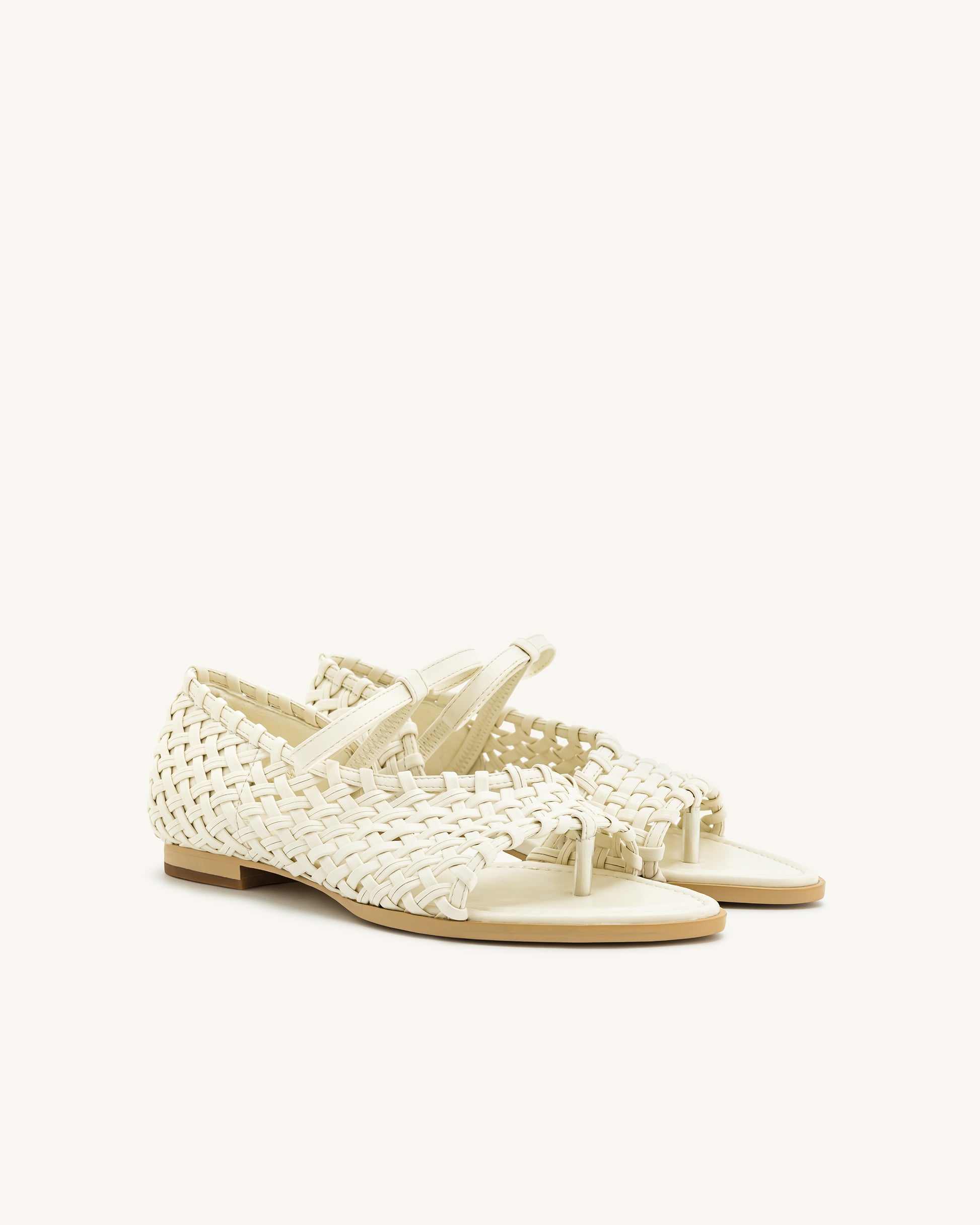 Jocelyn 編織帶人字拖 - 米色