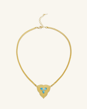 葉子吊墜項鍊 - 18ct 鍍金&海藍寶石鋯石