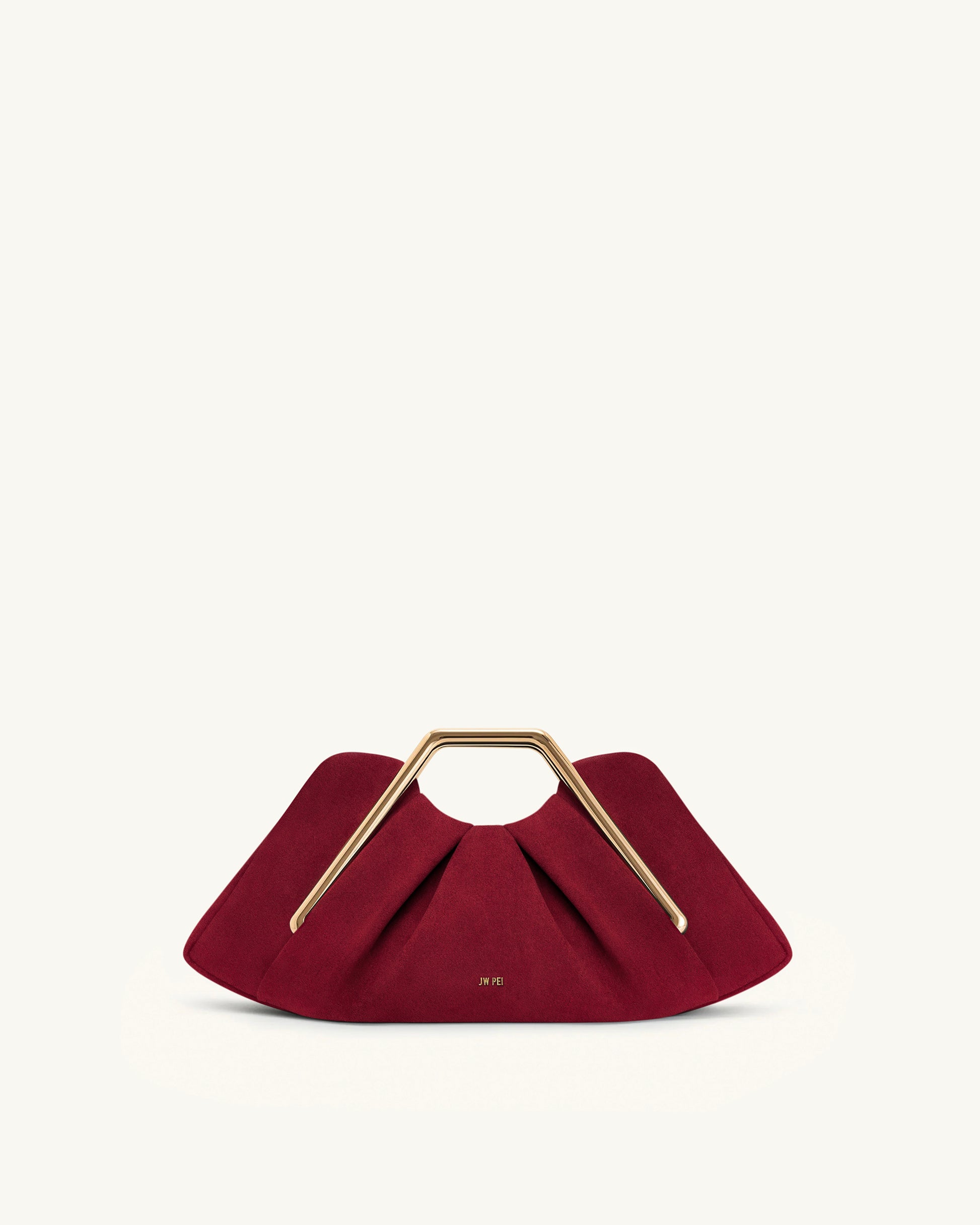 Lila 仿麂皮金屬框手拿包 - 红色