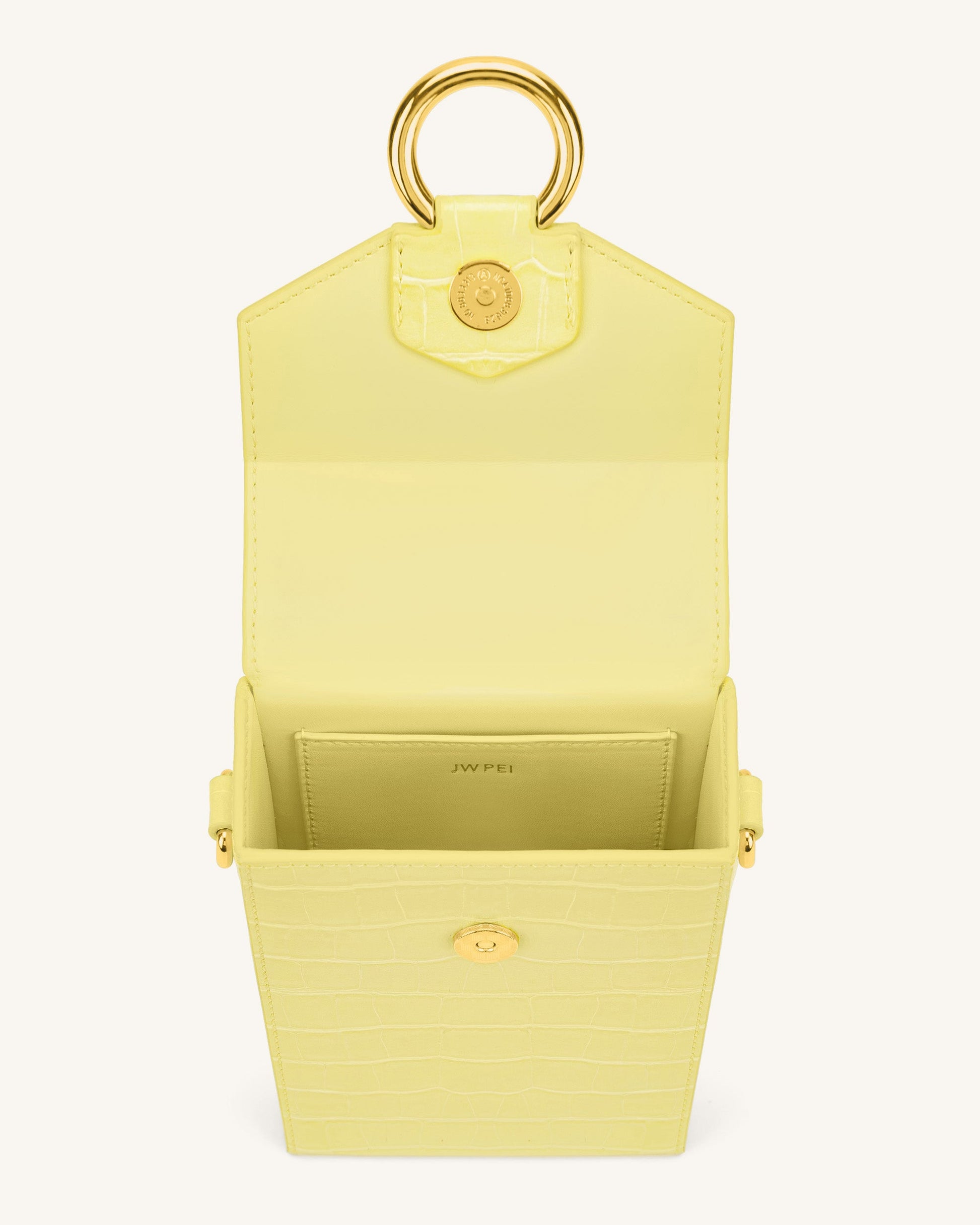Lola 鏈條手機盒子包 - 淺黃色鱷魚紋