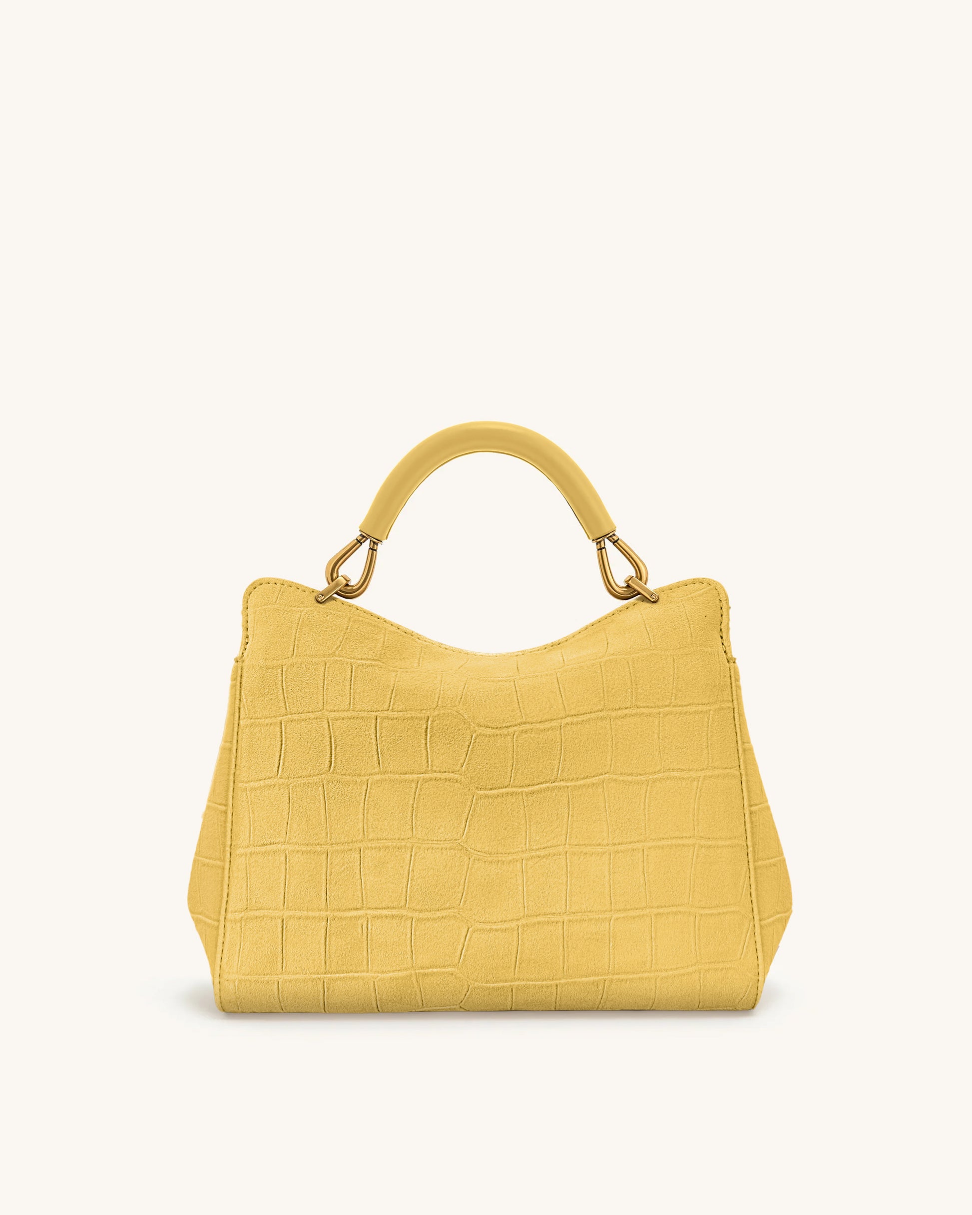 Lucia 經典鱷魚紋仿絨面手挽包 - 黃色