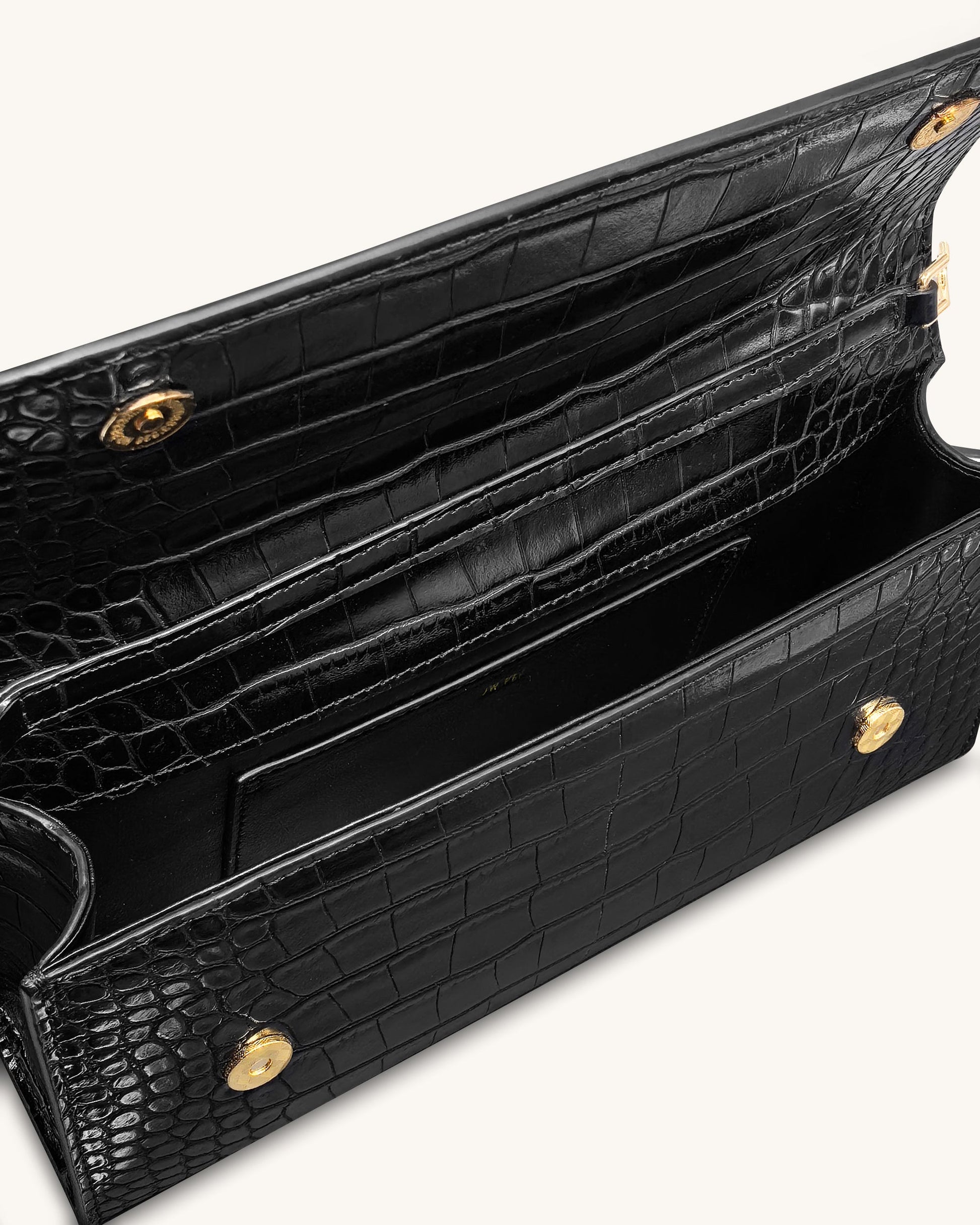 Maya 豹形金屬手柄手挽袋 - 黑色鱷魚紋