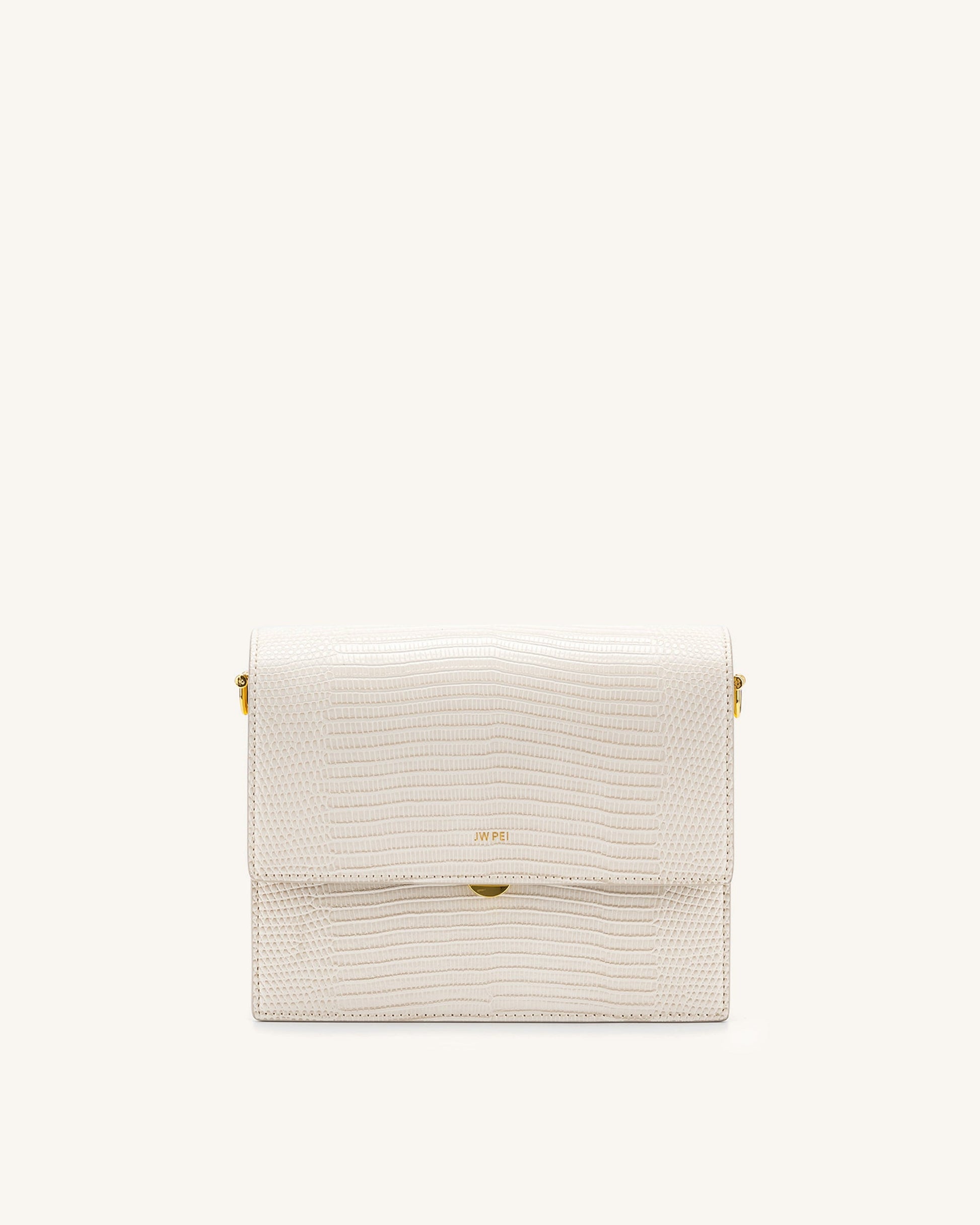 Mini Flap 迷你翻蓋包 - 象牙白色蜥蜴紋