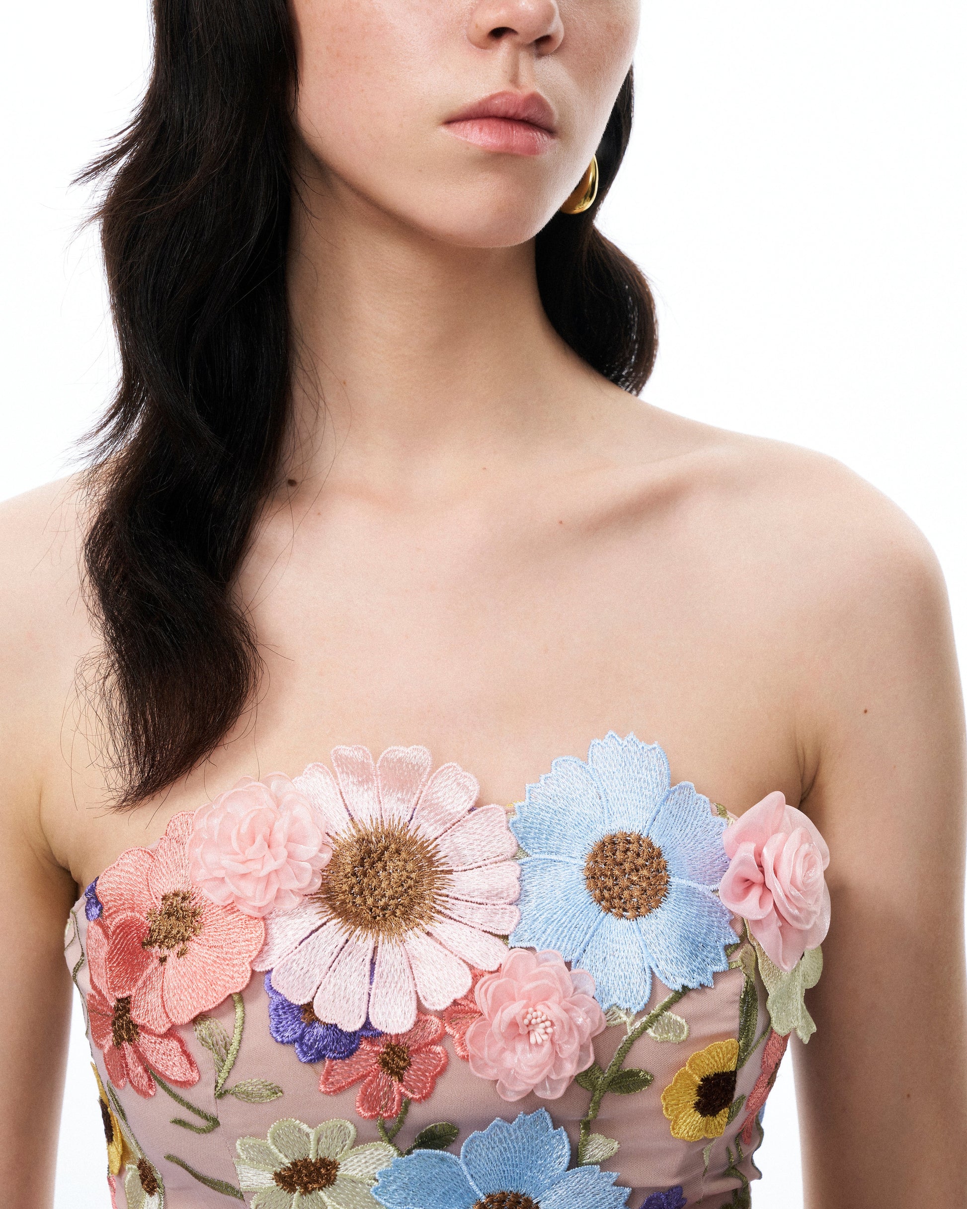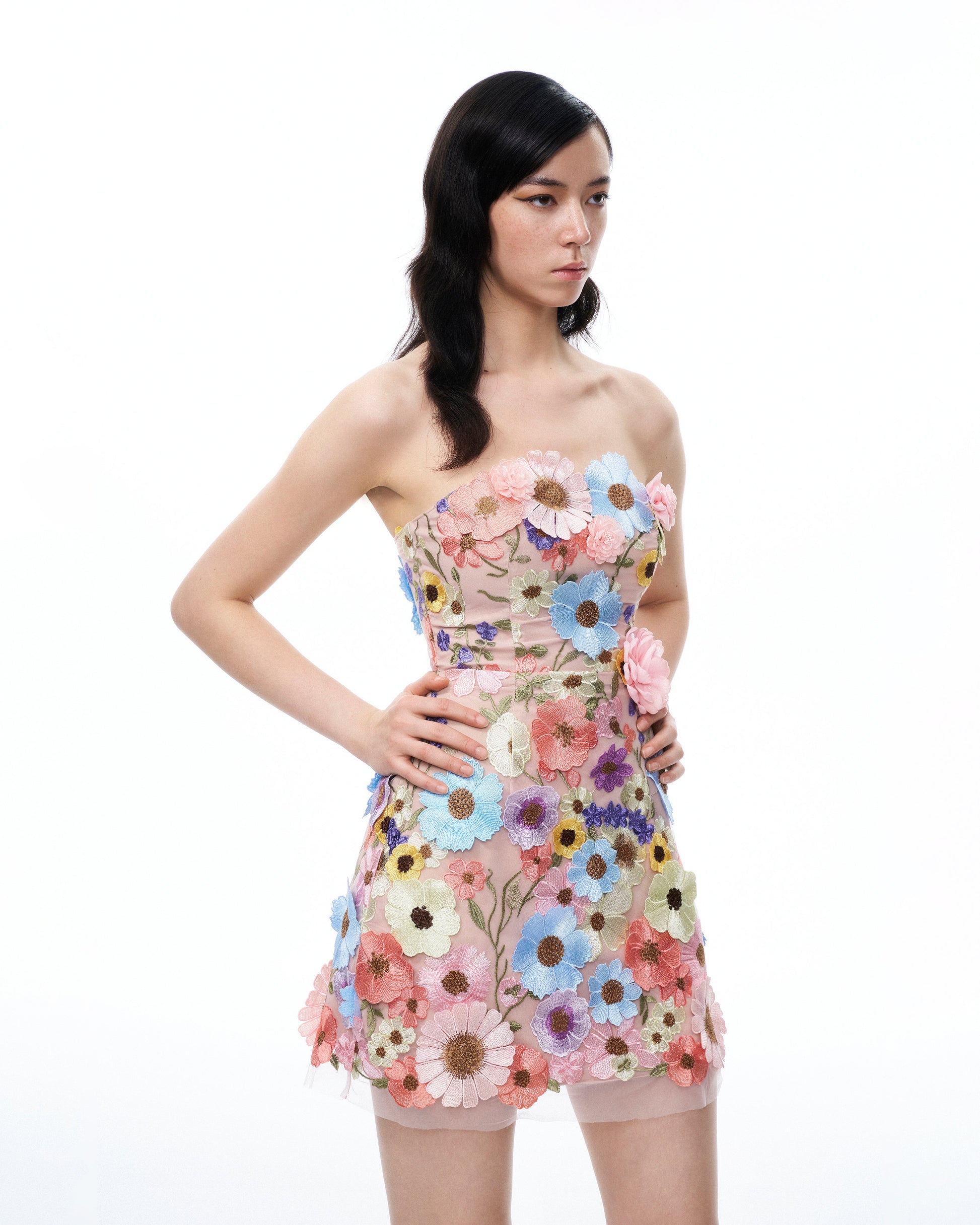 Odalys 花卉刺繡迷你裙-粉彩拼色