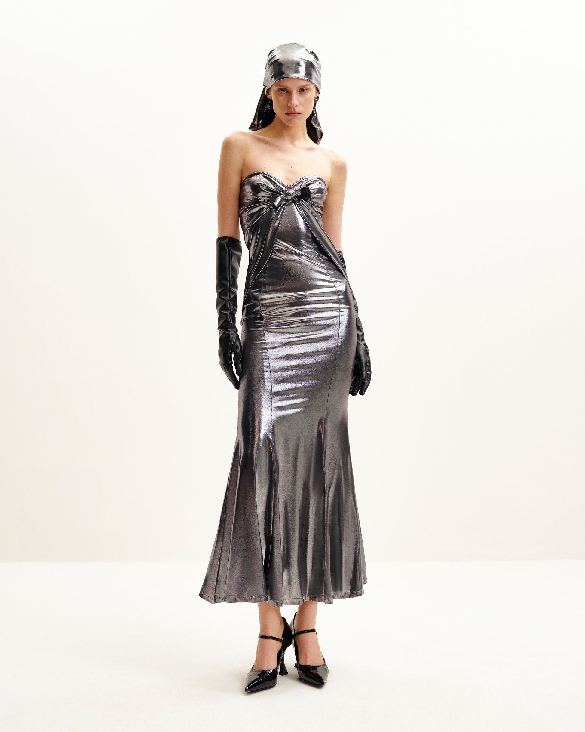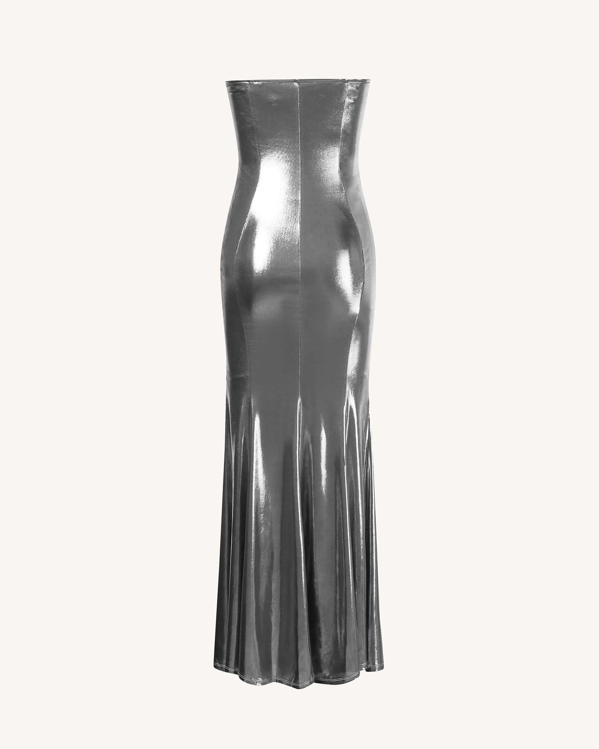 Olivia 銀色超長抹胸連衣裙 - 銀色
