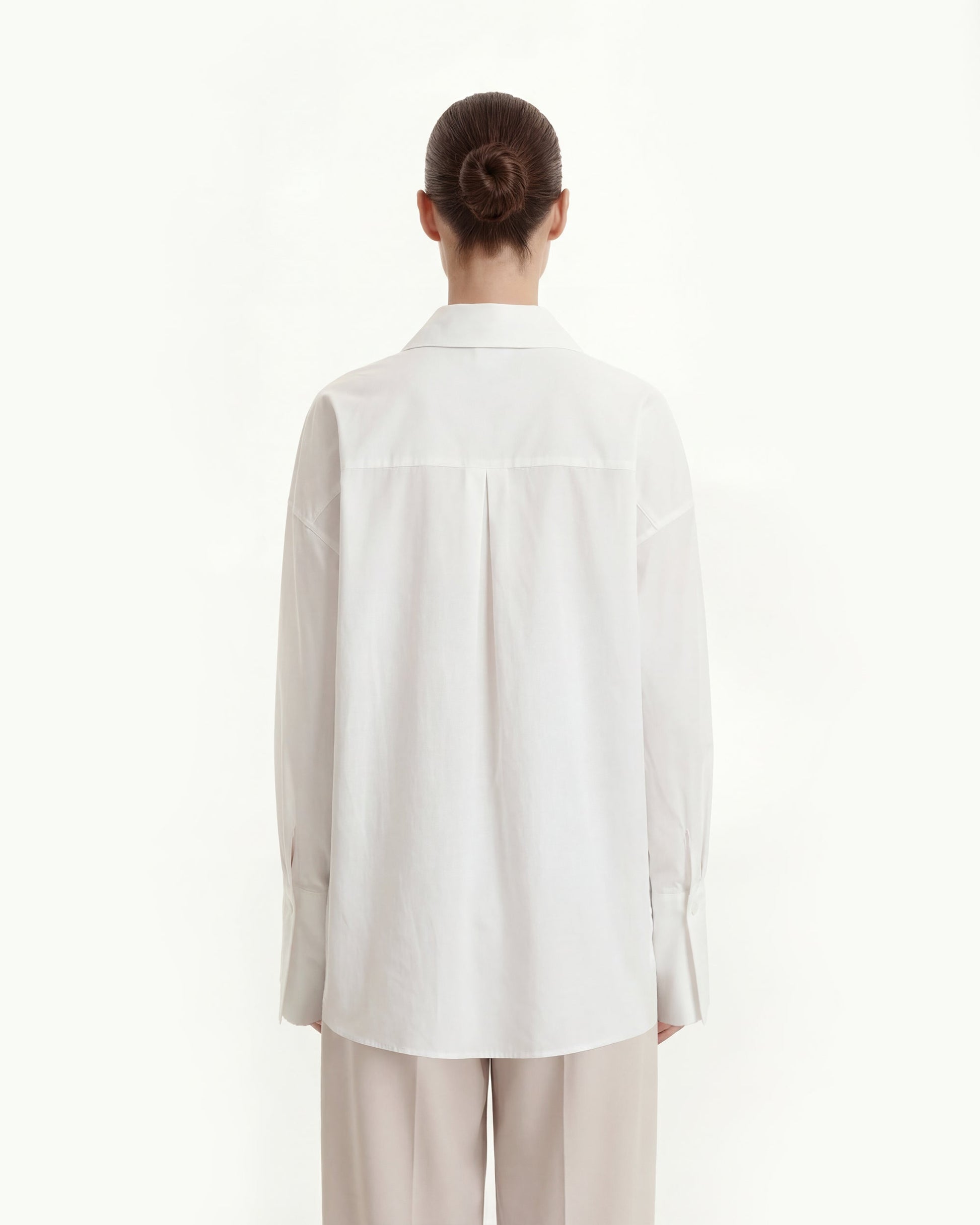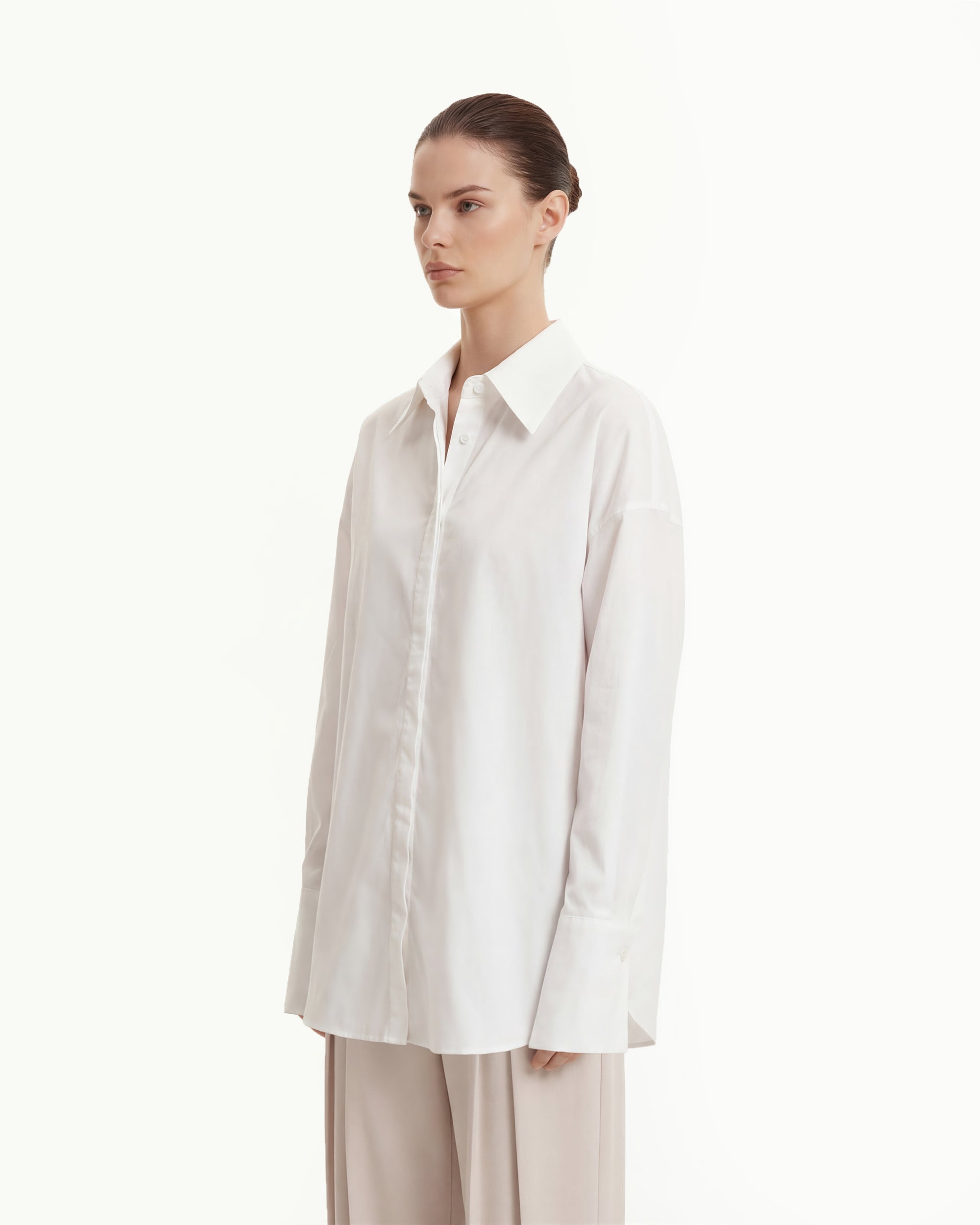 府綢隱藏式門襟寬鬆恤衫 - 白色