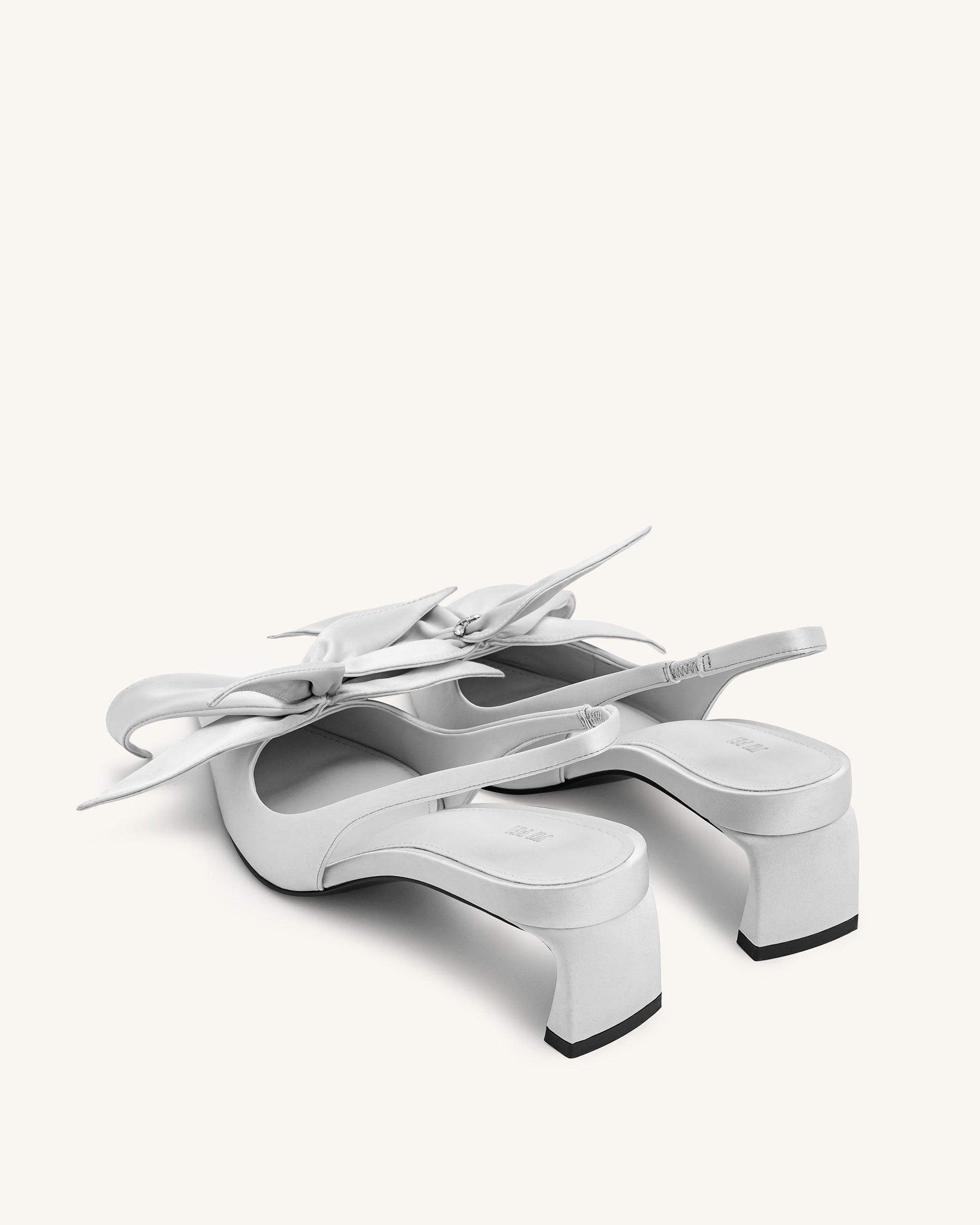 Queena 花卉貼花露跟高跟鞋 - 銀色