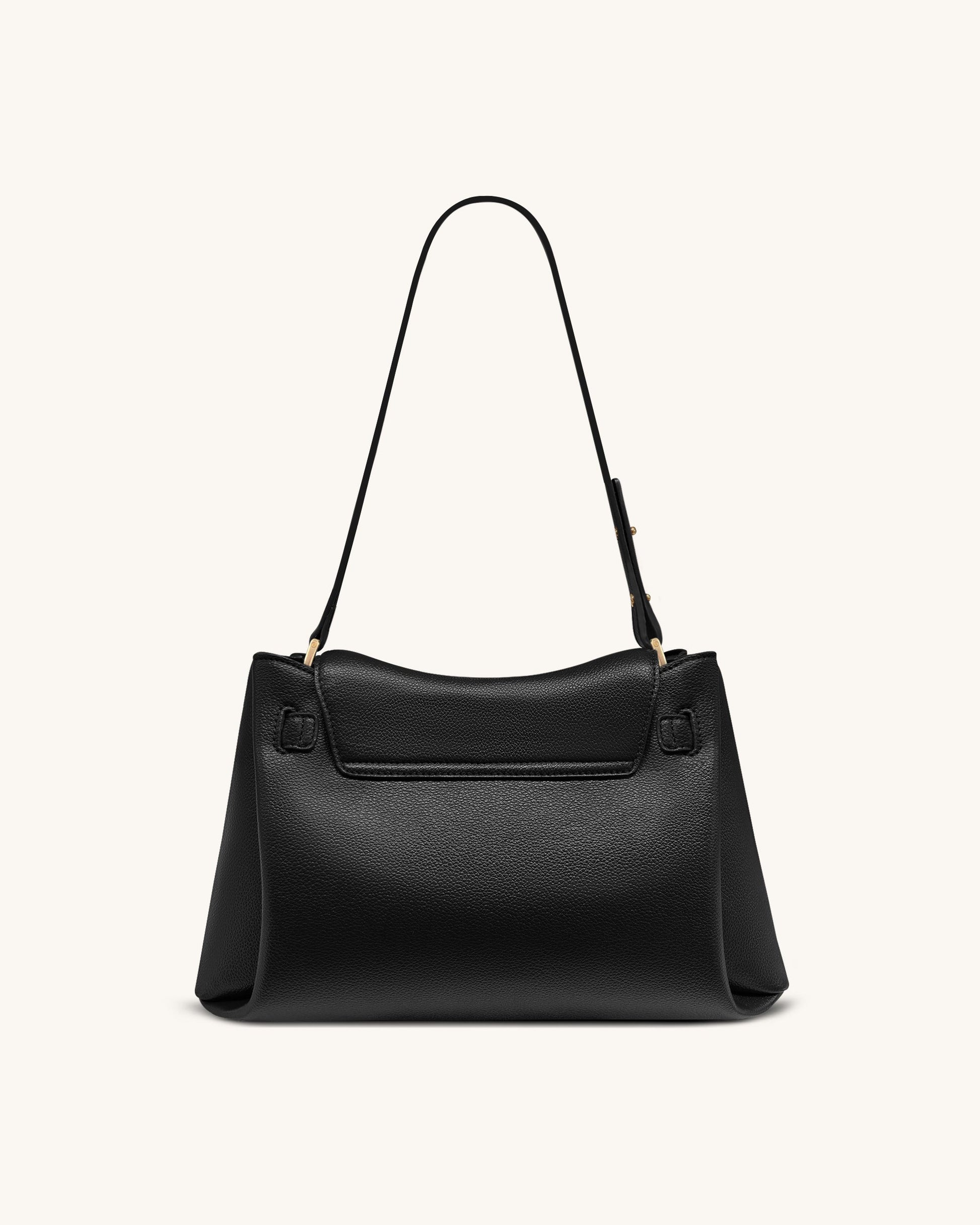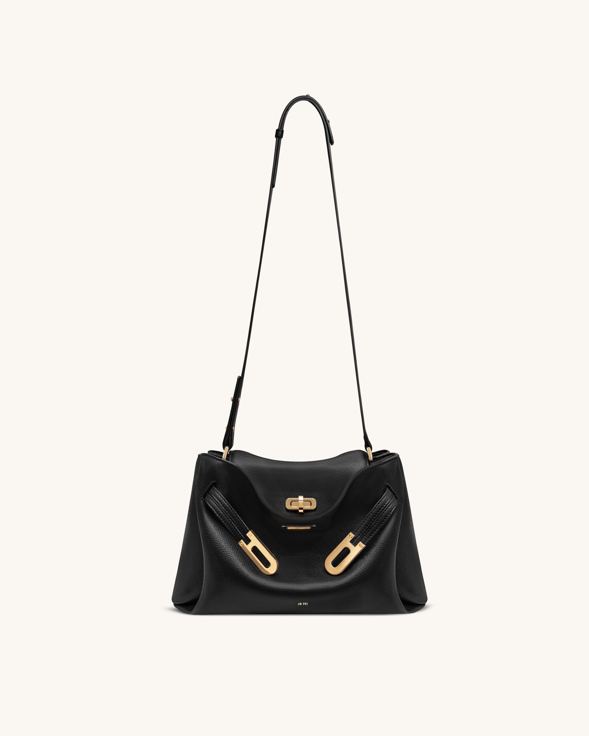 Rhea 卵石紋雙扣肩背包 - 黑色