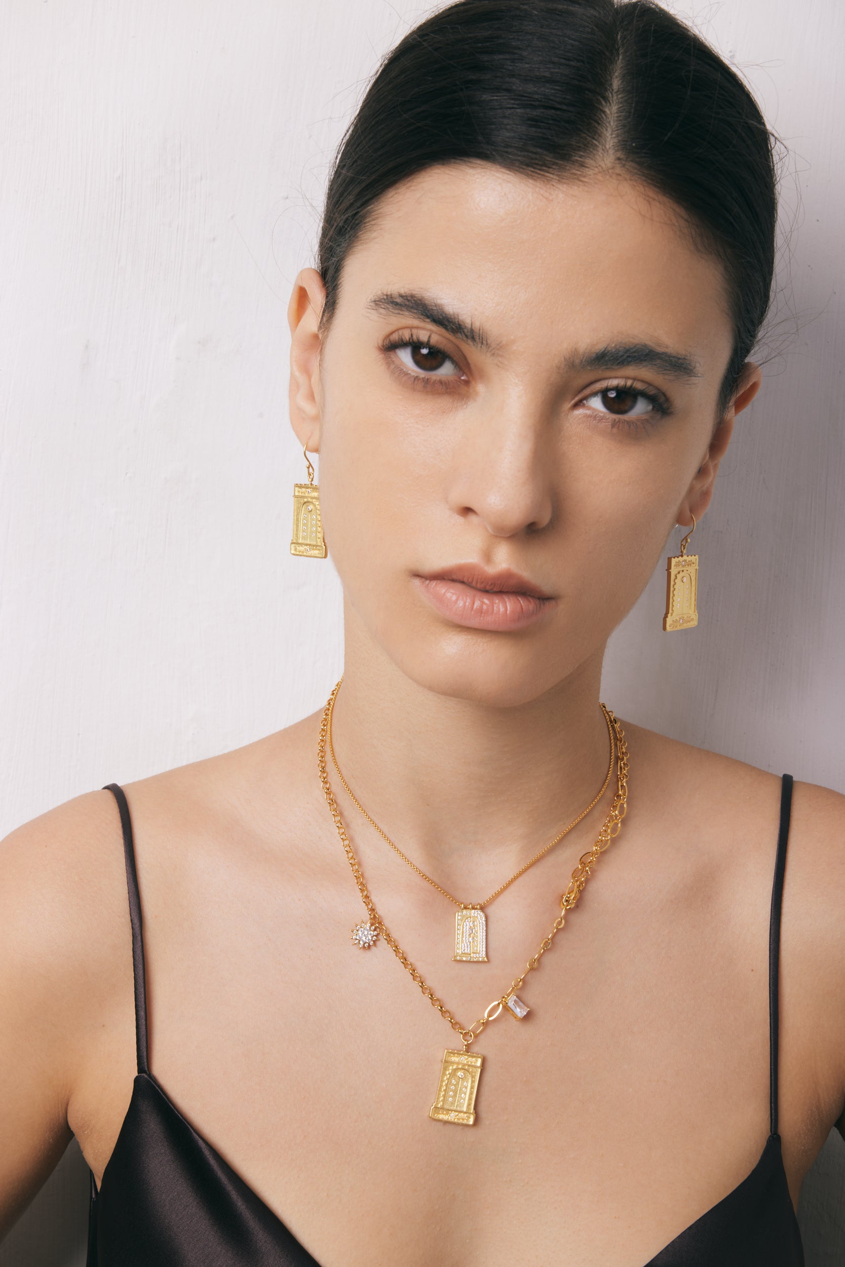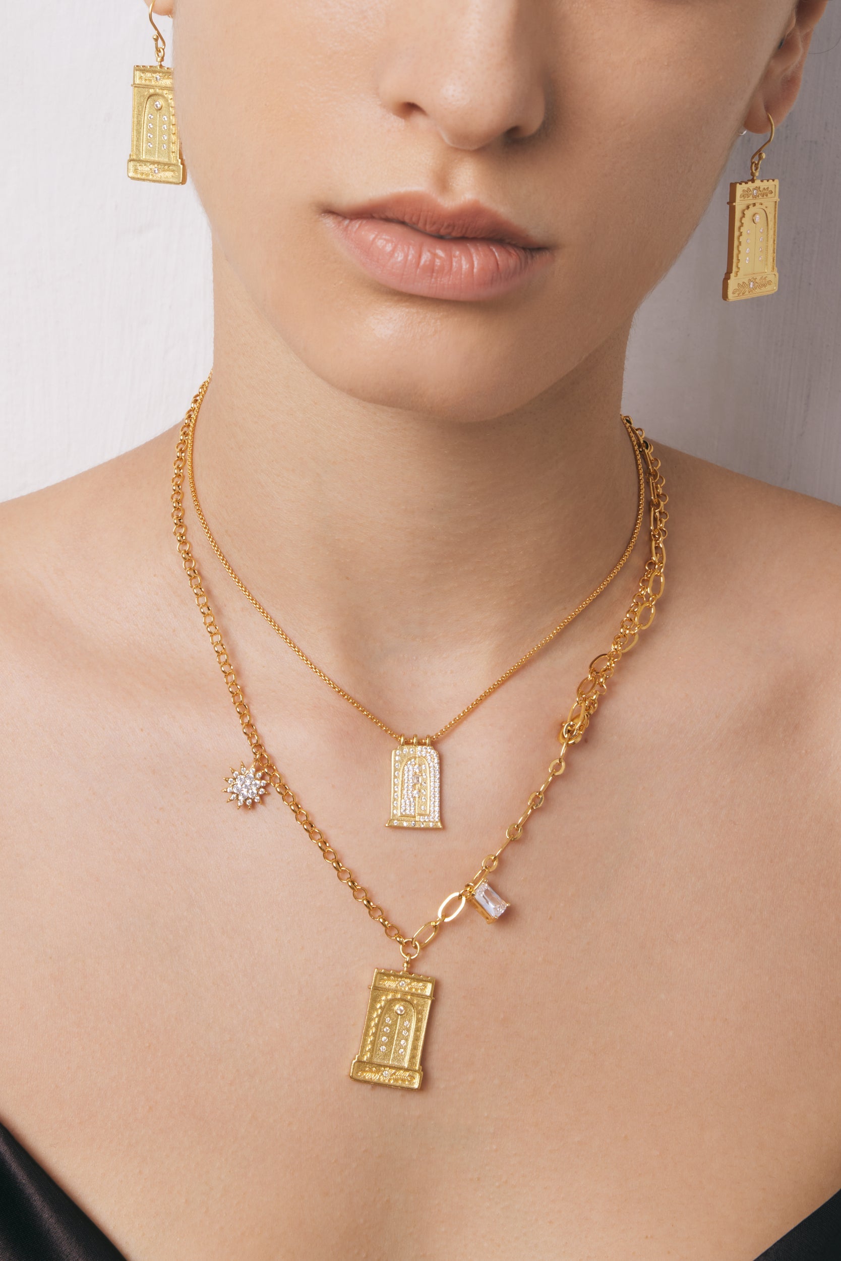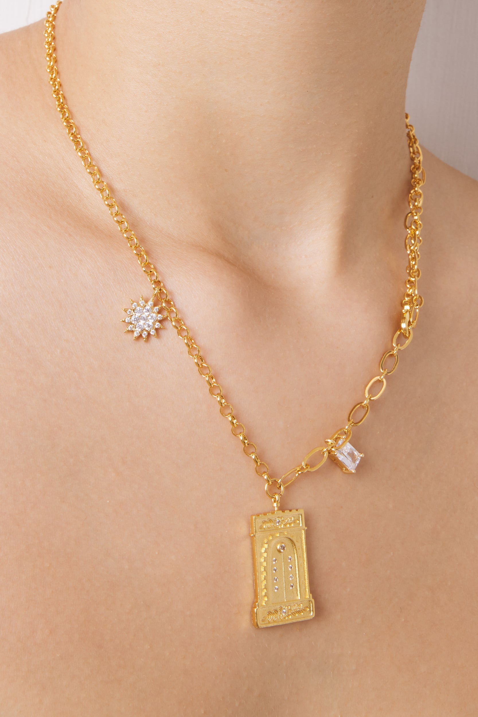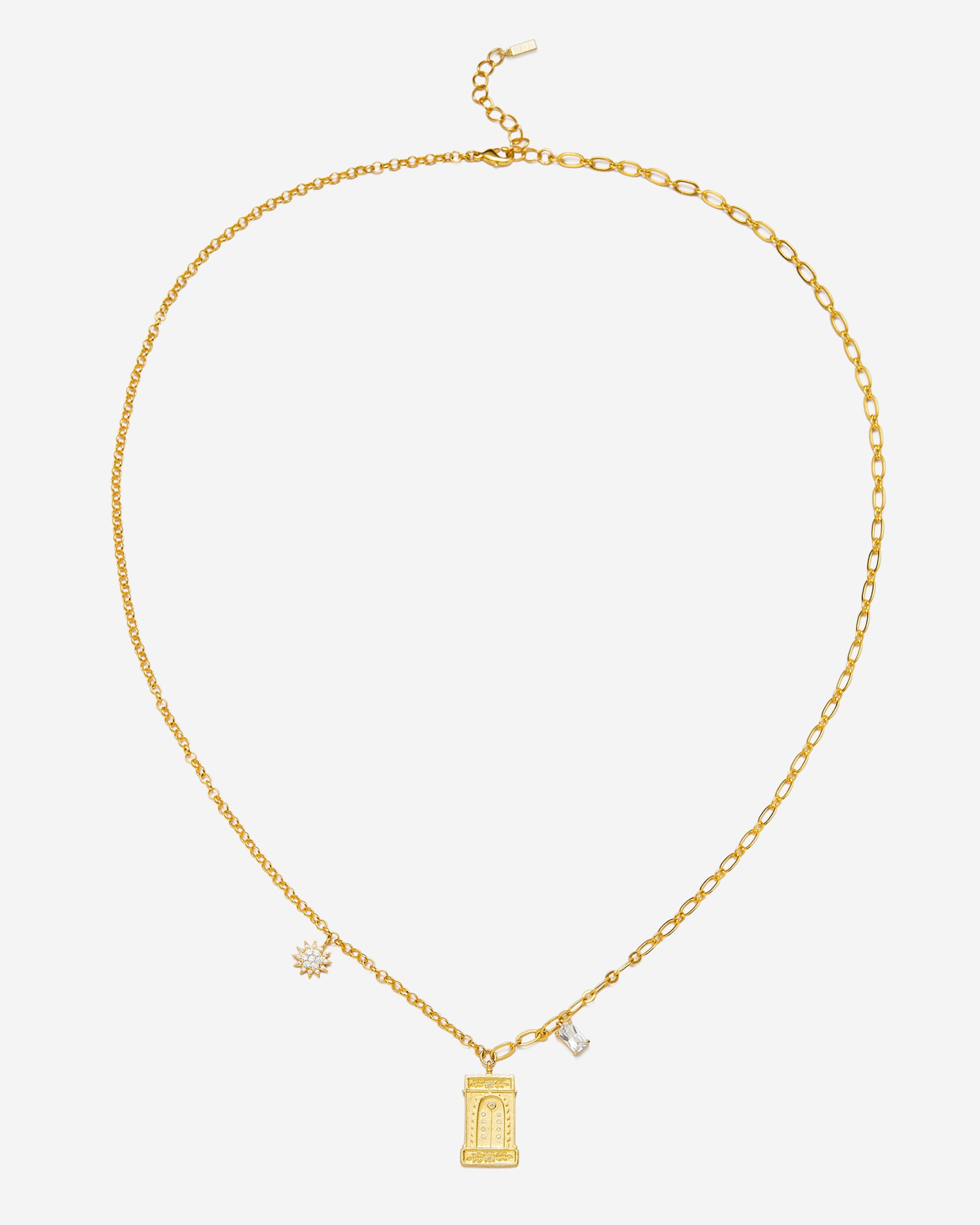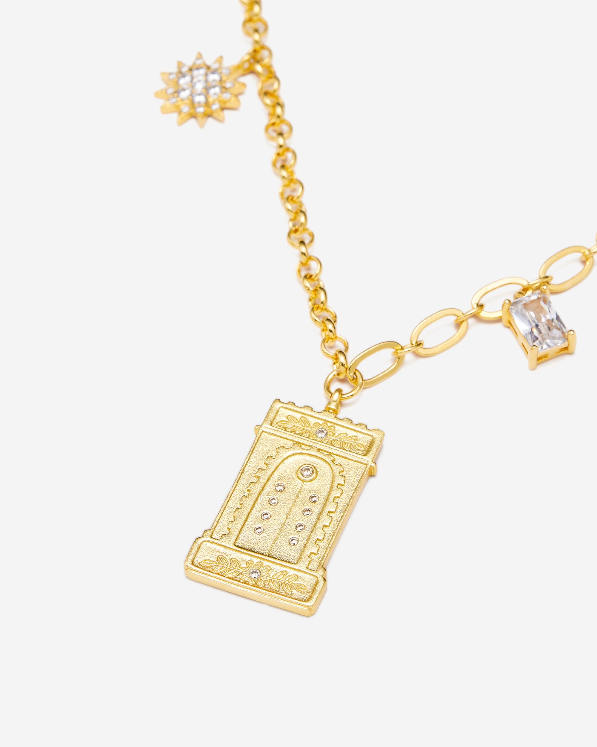 羅馬拱形吊墜項鍊 - 18ct 鍍金&白色鋯石