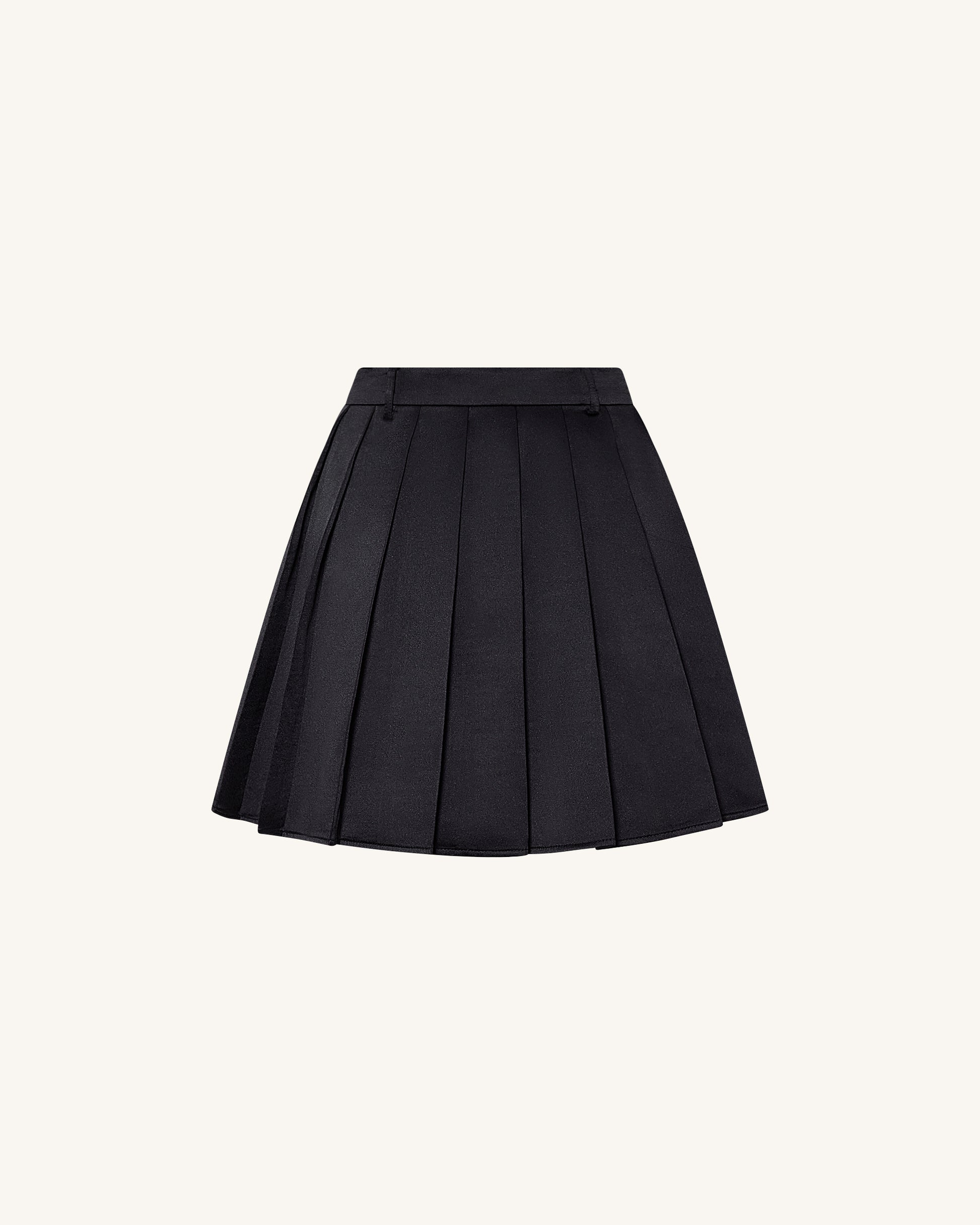 緞面百褶迷你裙 - 黑色