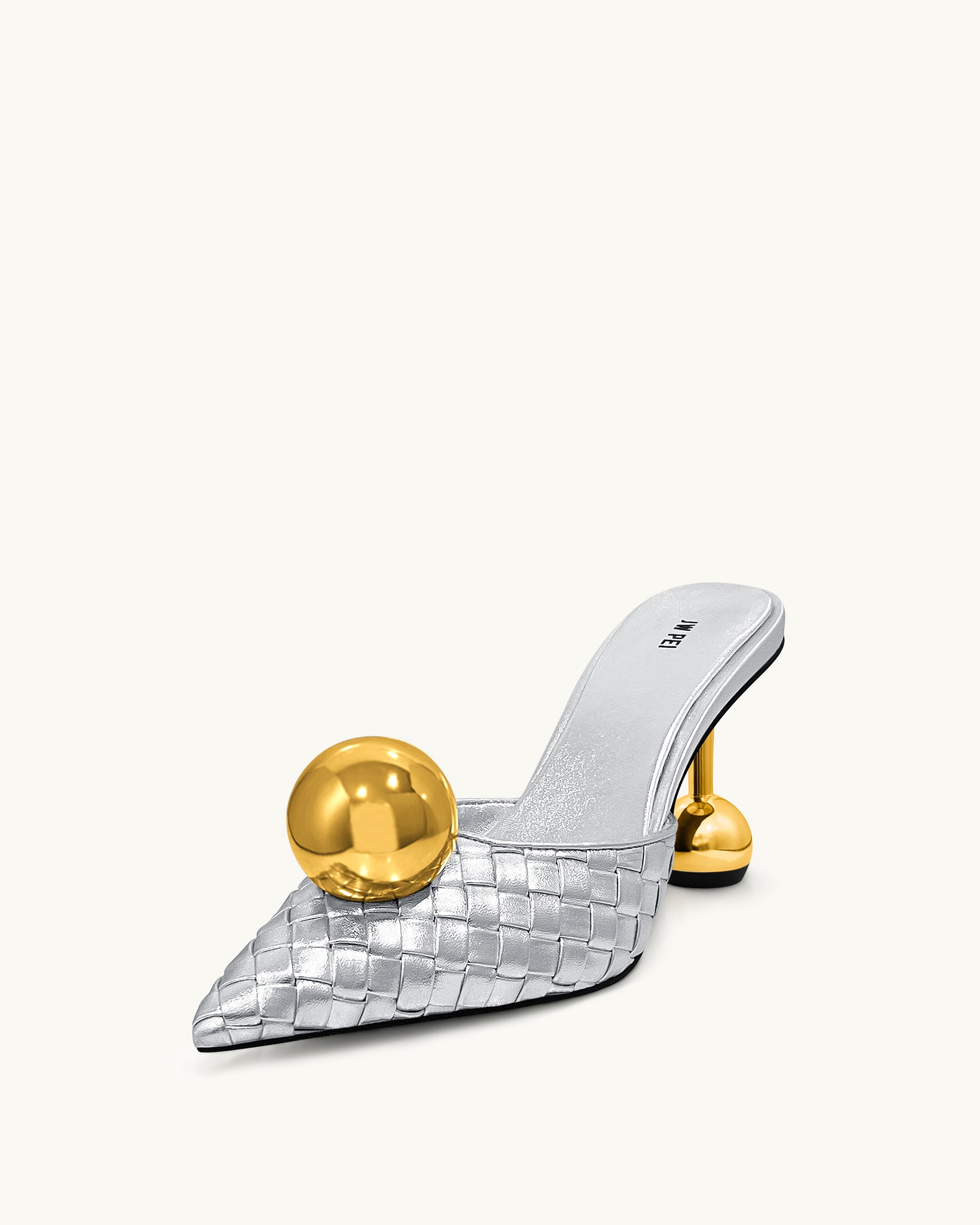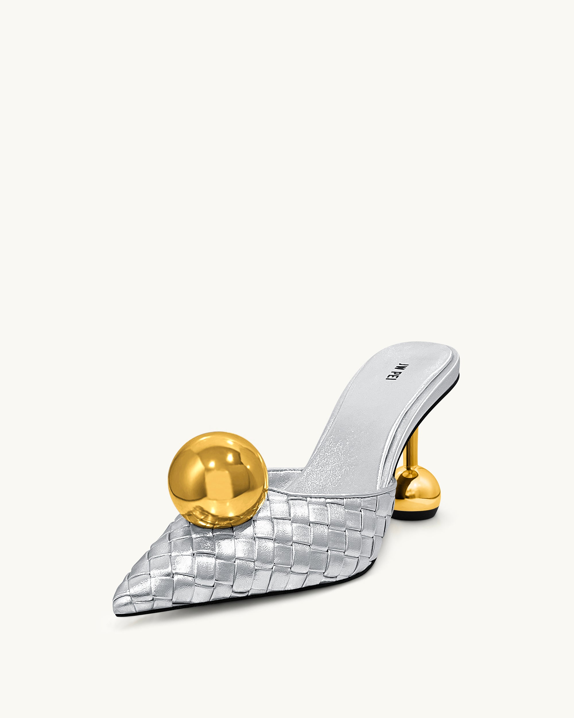 Sofia 編織球形跟穆勒鞋 - 銀色與金色