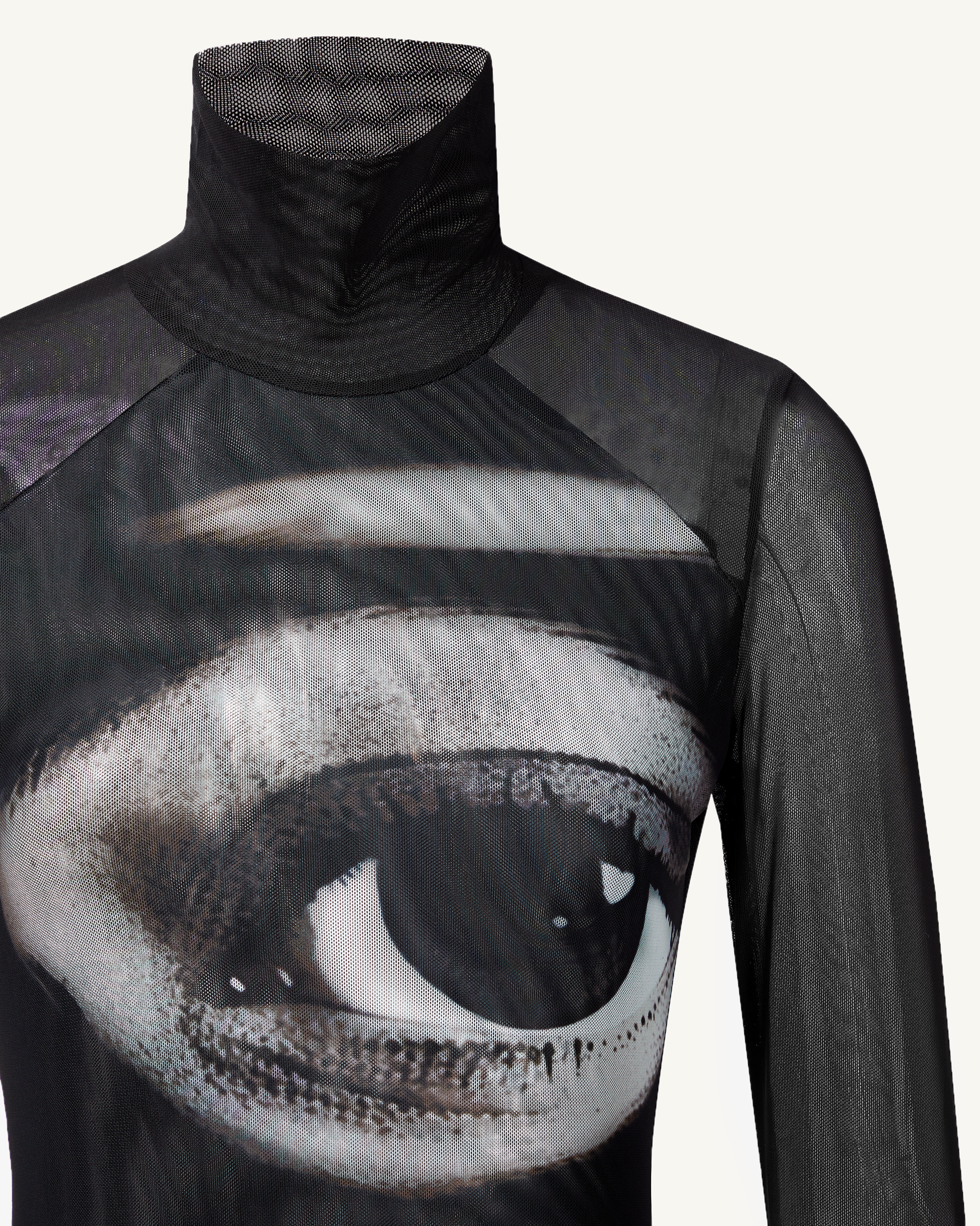 Sophia 眼睛印花網紗連衣裙 - 黑/白