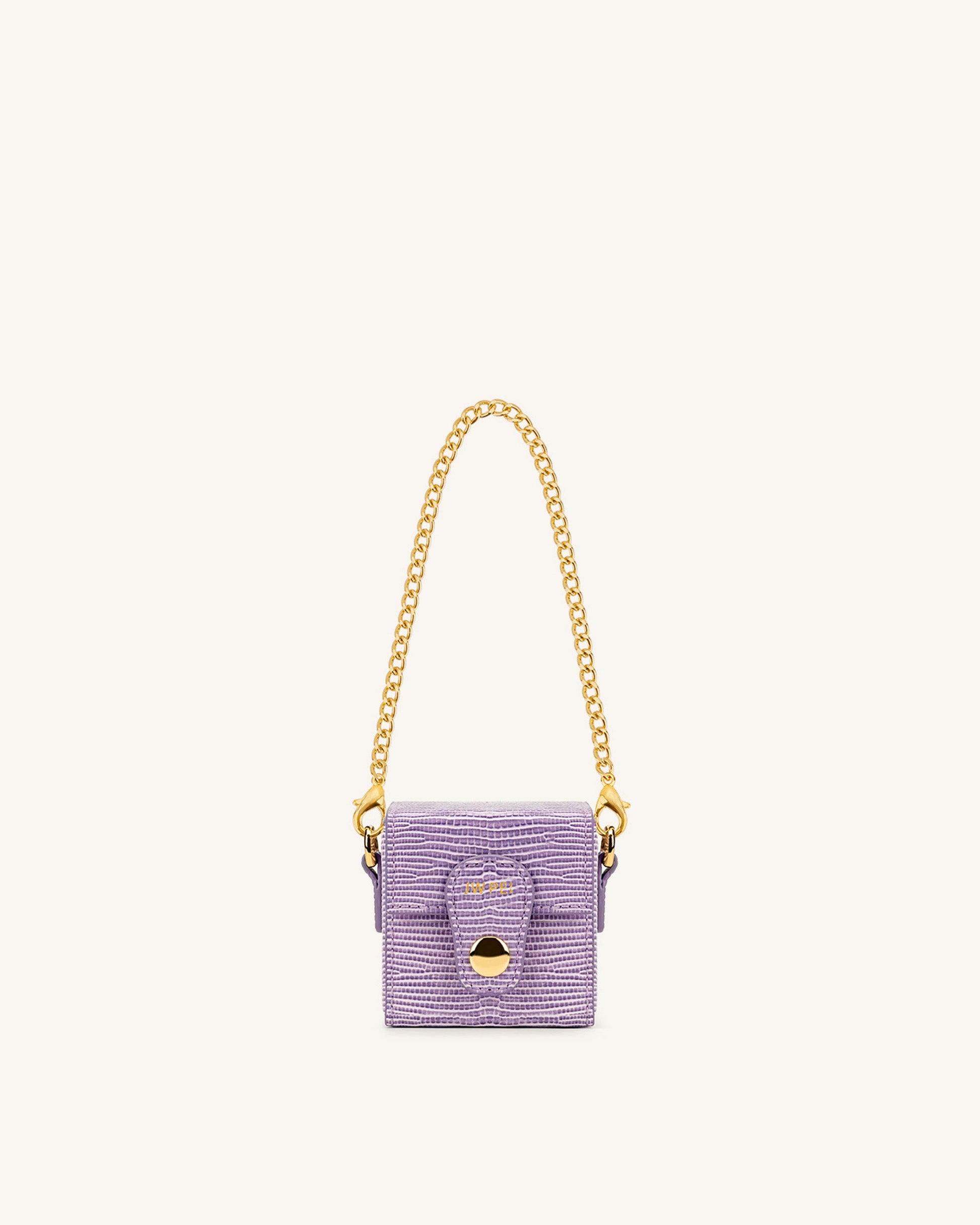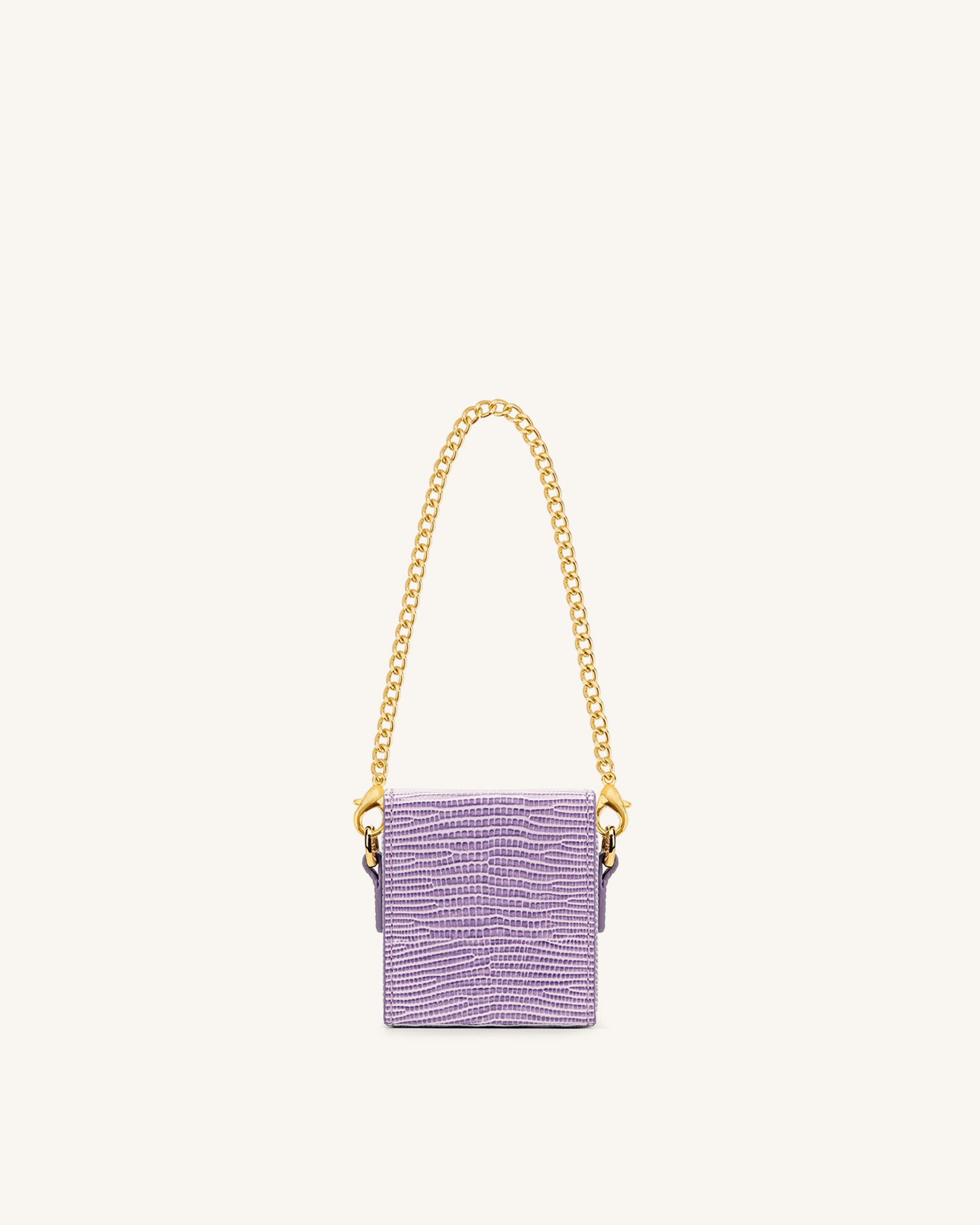 Square 迷你盒子包 - 紫色蜥蜴紋