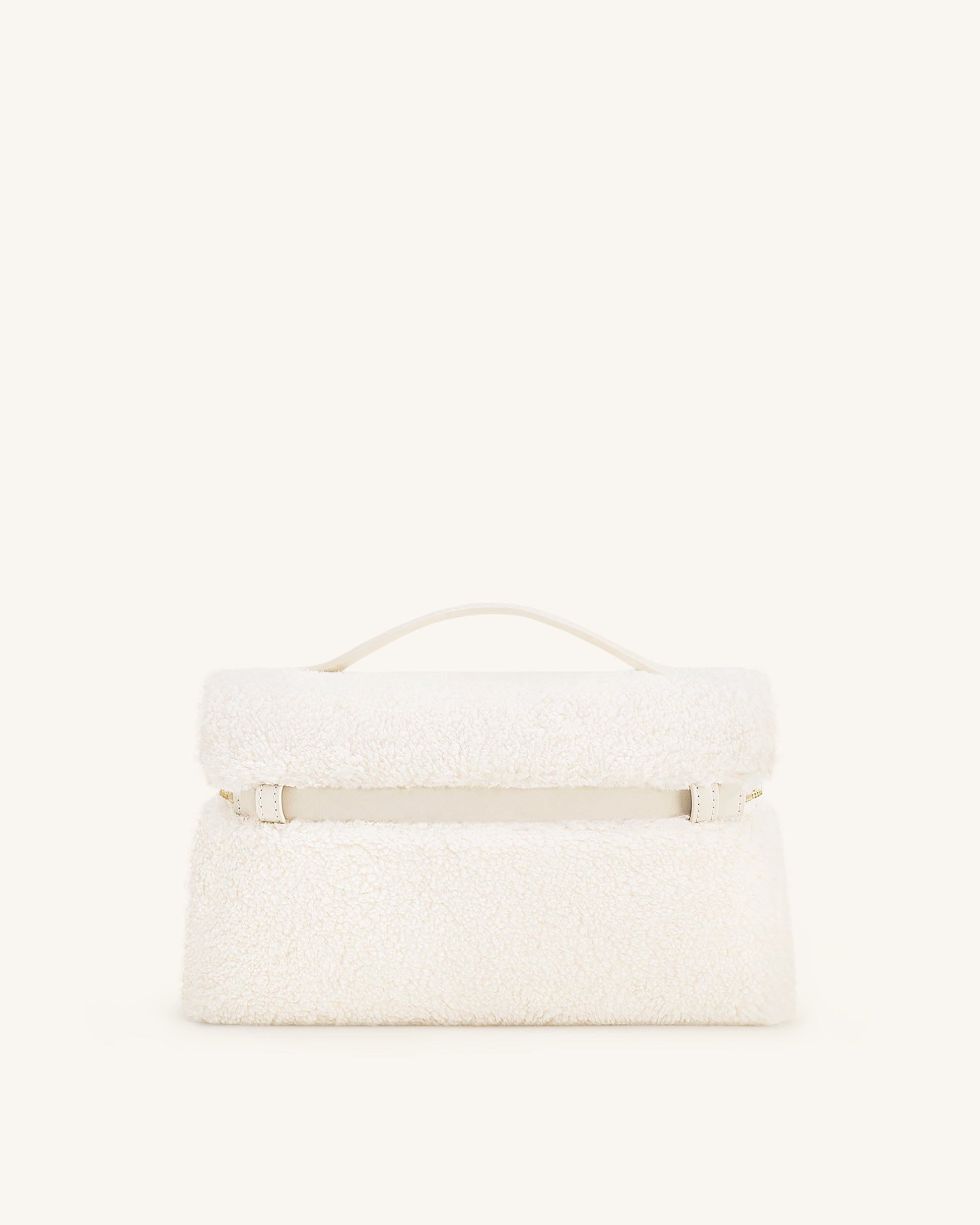 舒適、有型又時尚。選用柔軟仿毛絨物料,配以金色金屬配件。設有可調節及可拆式的單肩帶。