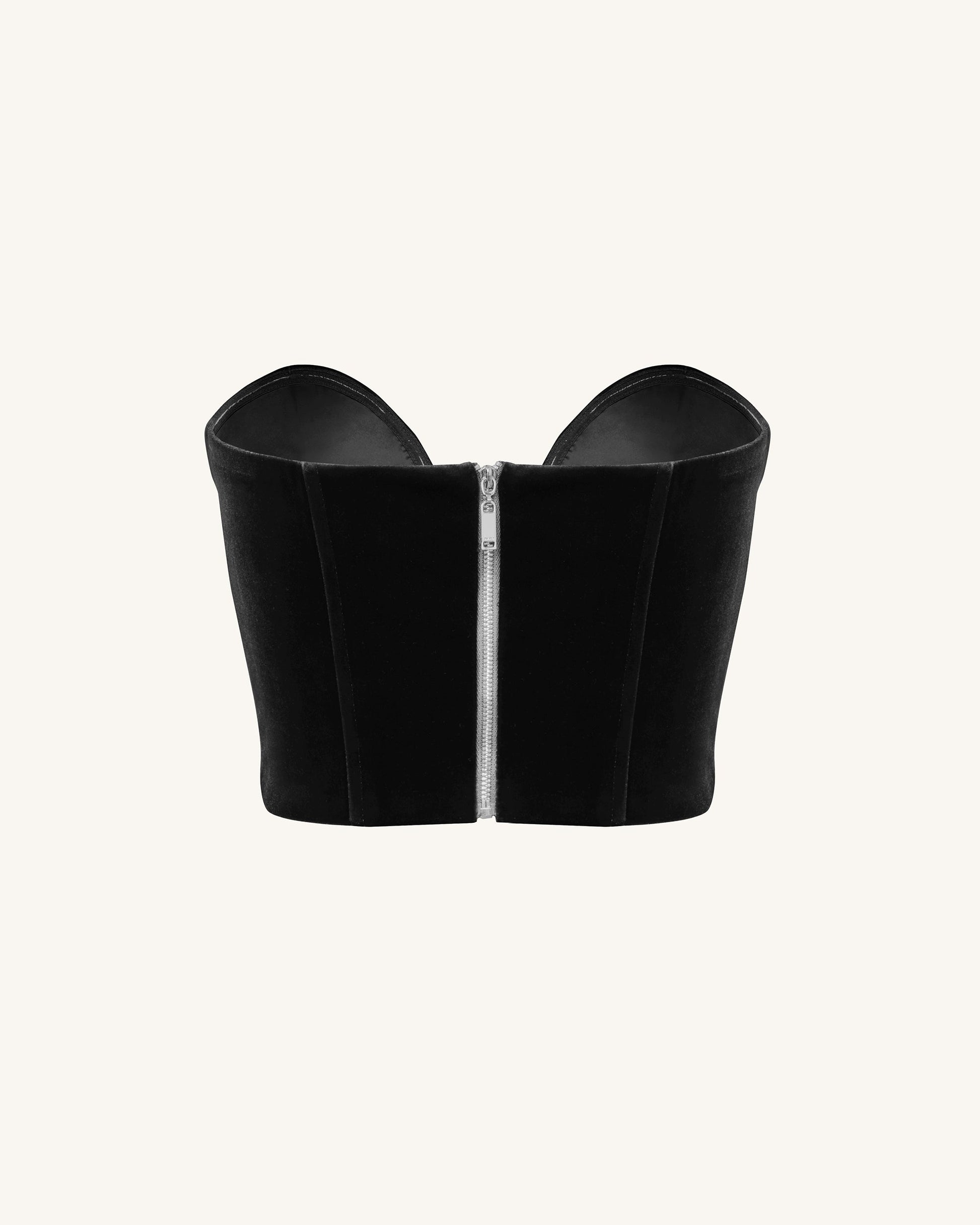 Anna 低胸絲絨馬甲上衣 - 黑色
