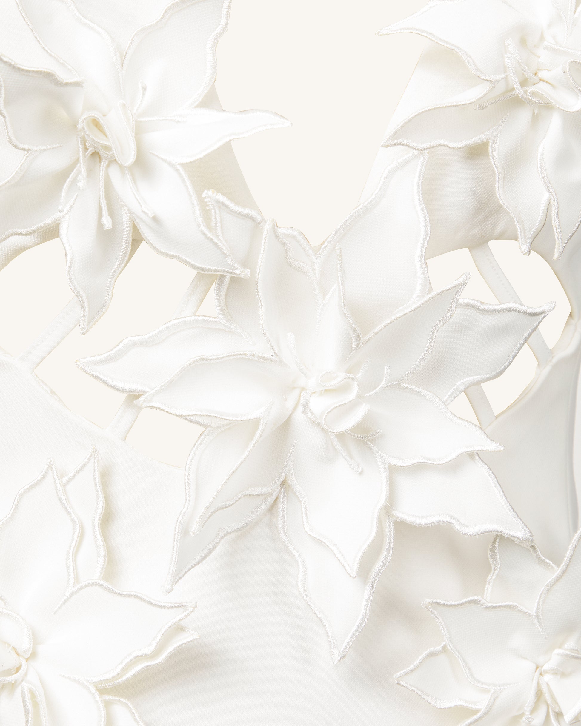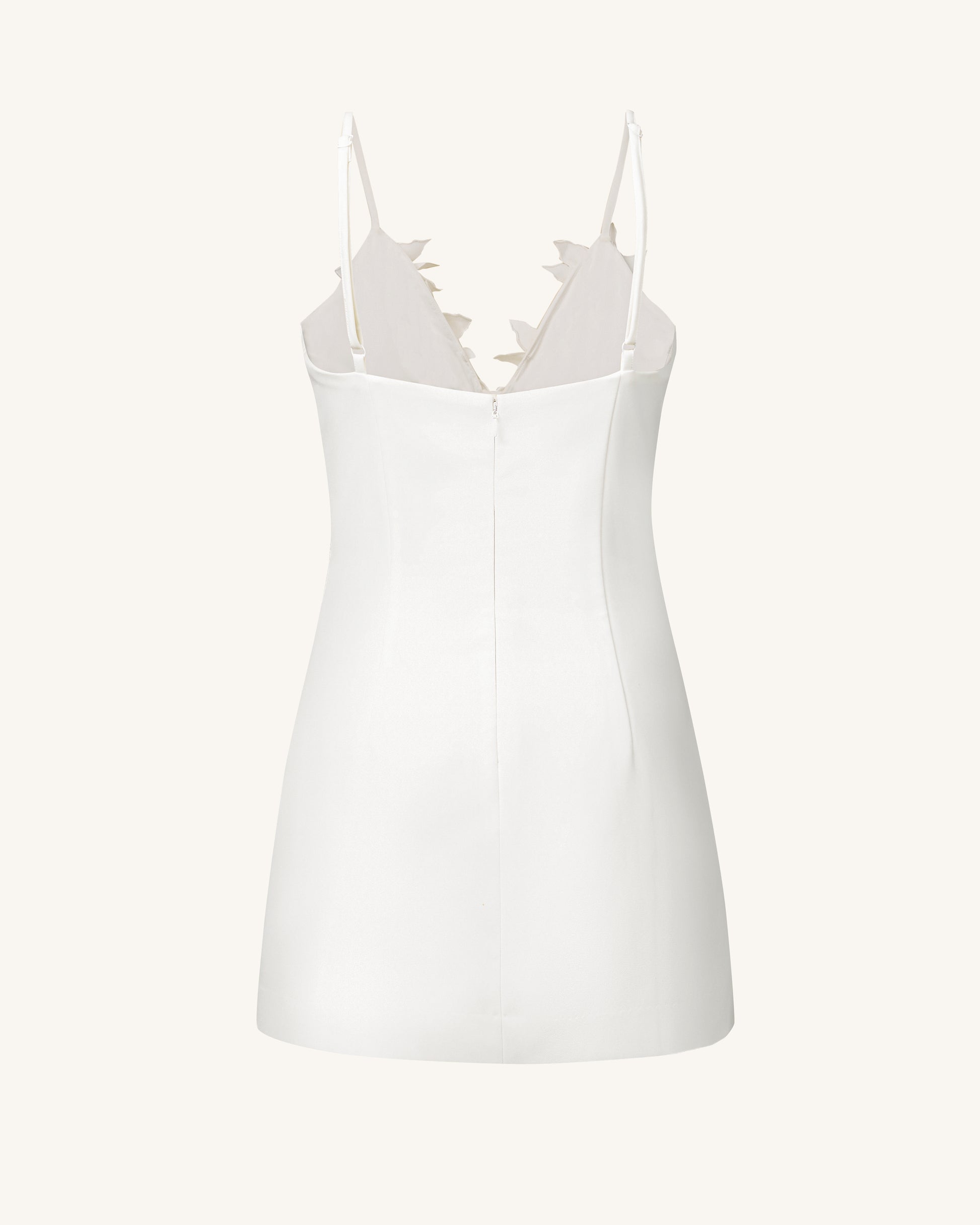 Yuliya 白色花卉點綴V領迷你連衣裙 - 白色