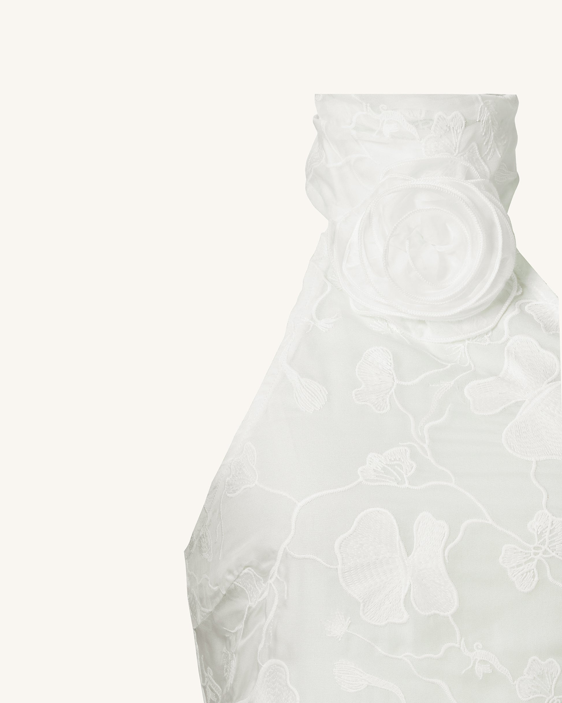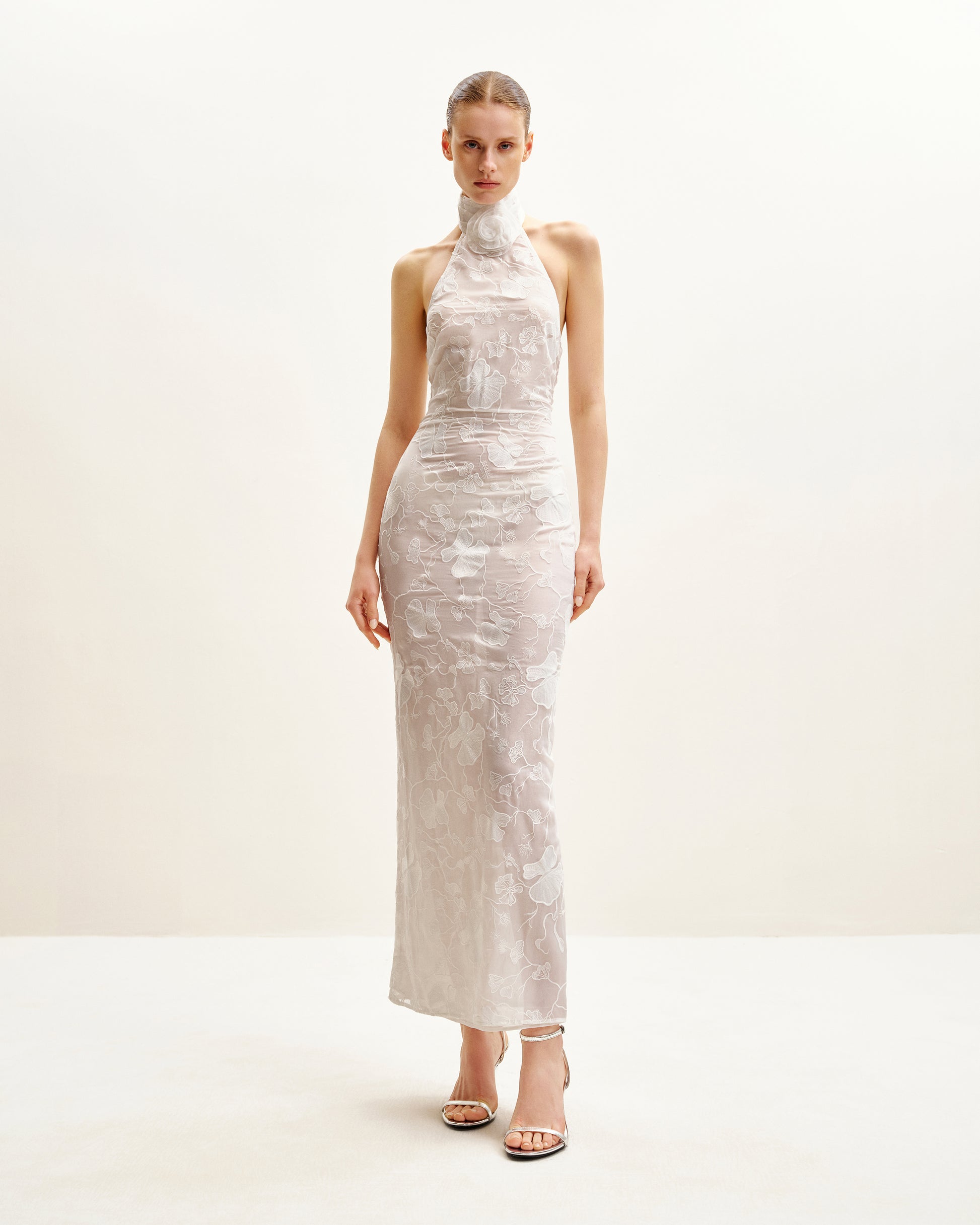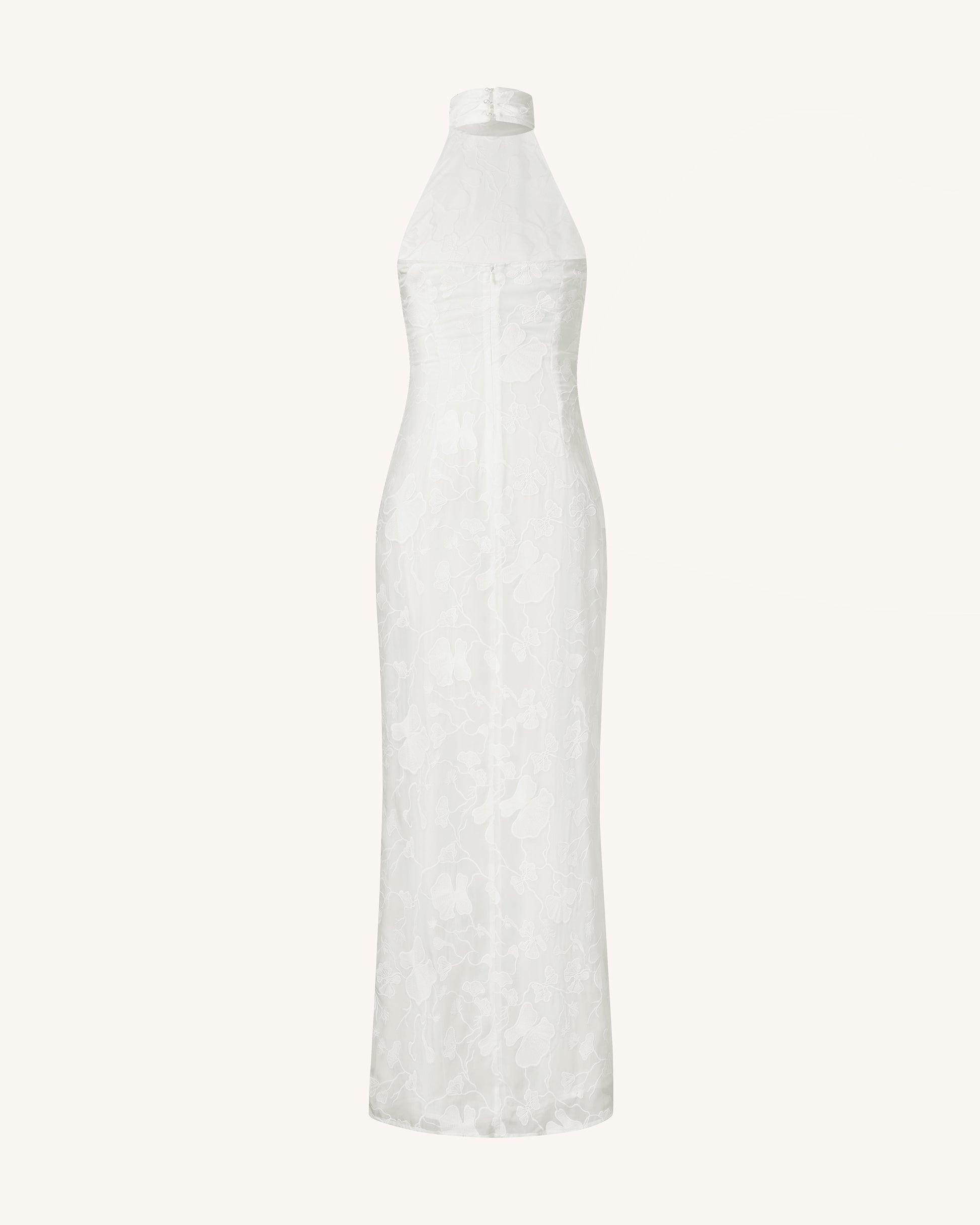 Uliana 白色花卉蕾絲掛脖長連衣裙 - 白色