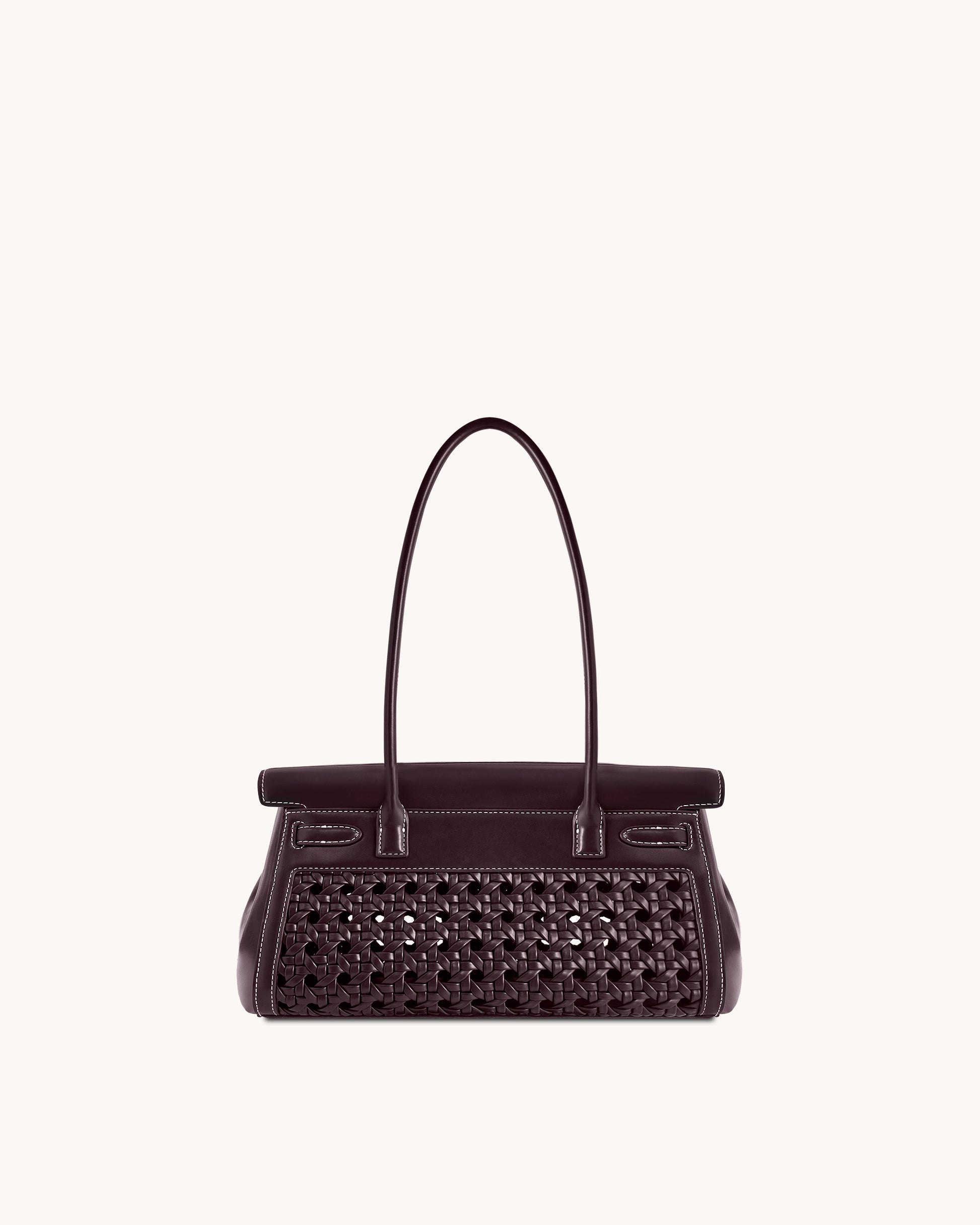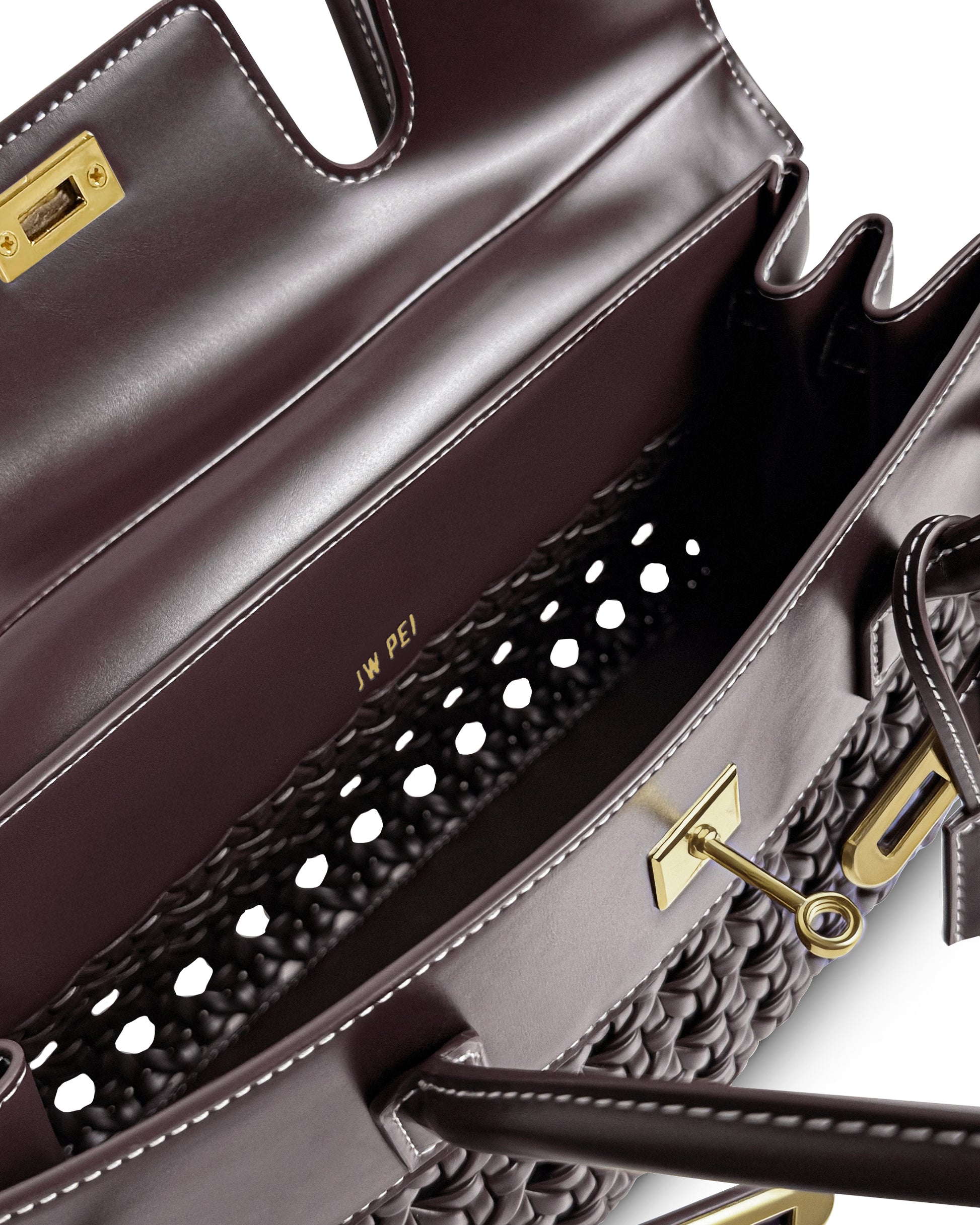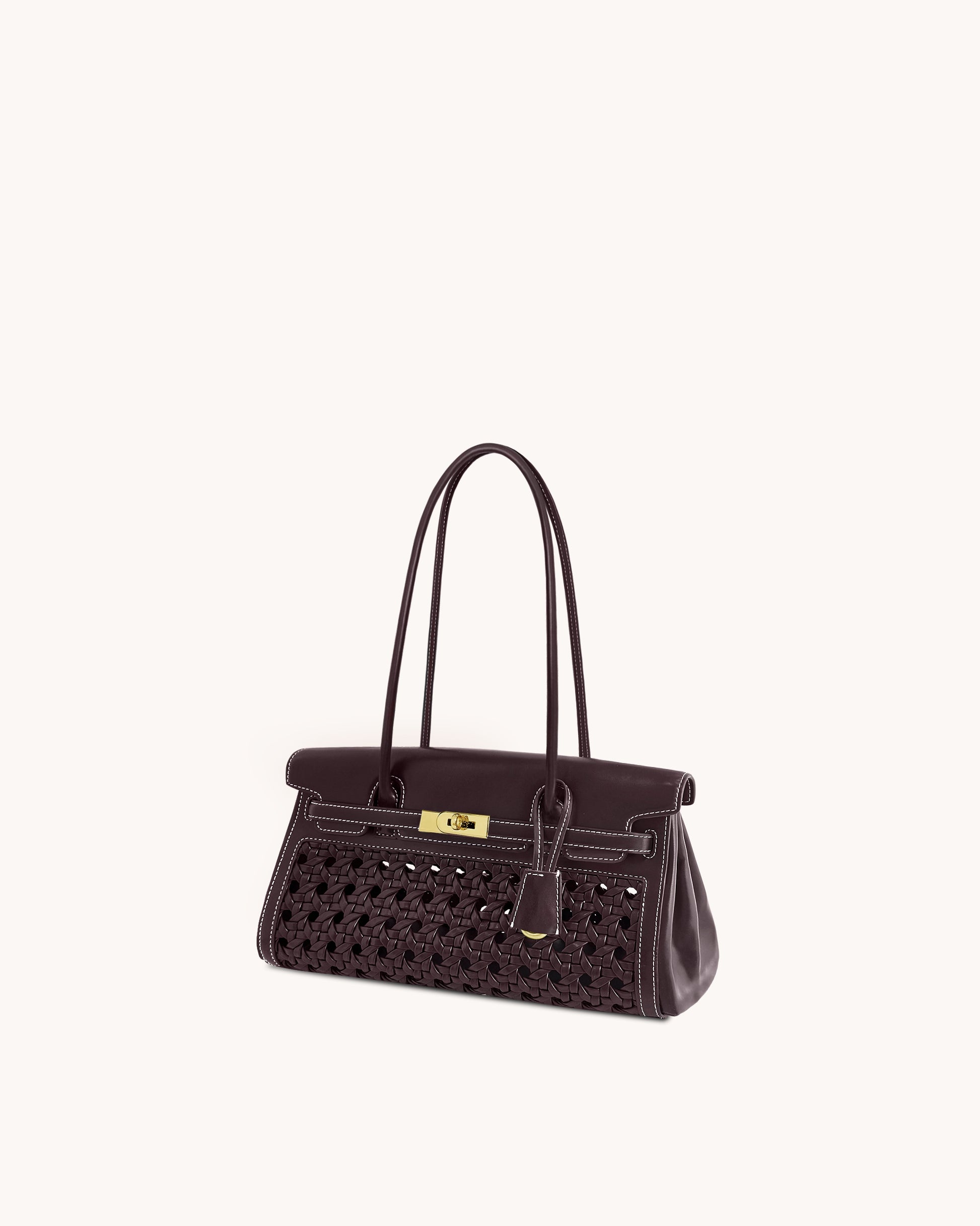 優雅手挽袋,前幅織紋設計,配搭金色金屬配件。容量寬敞、結構分明且時尚,適合日常或辦公場合使用。質感細膩光滑,外觀高雅,百搭且具現代感。