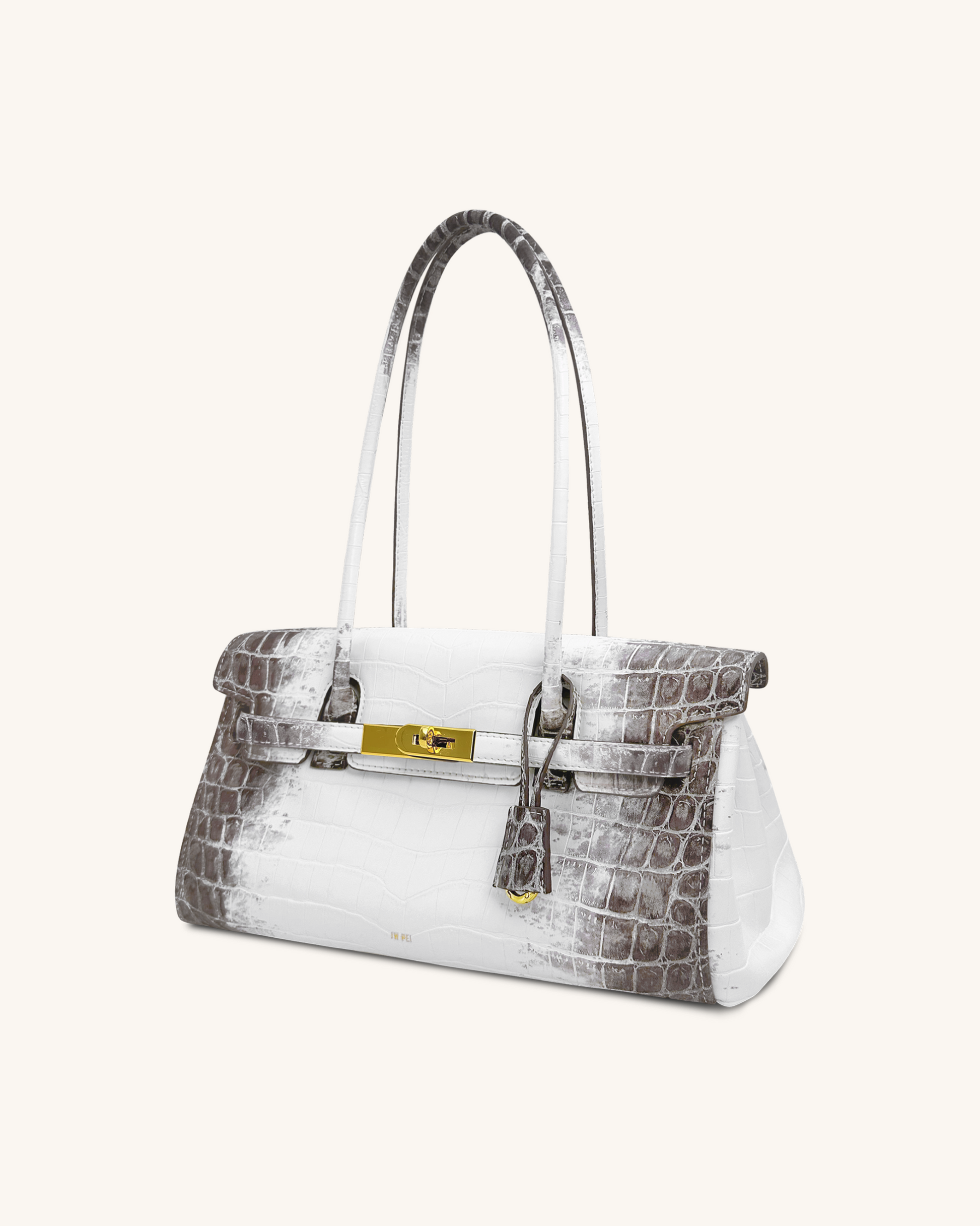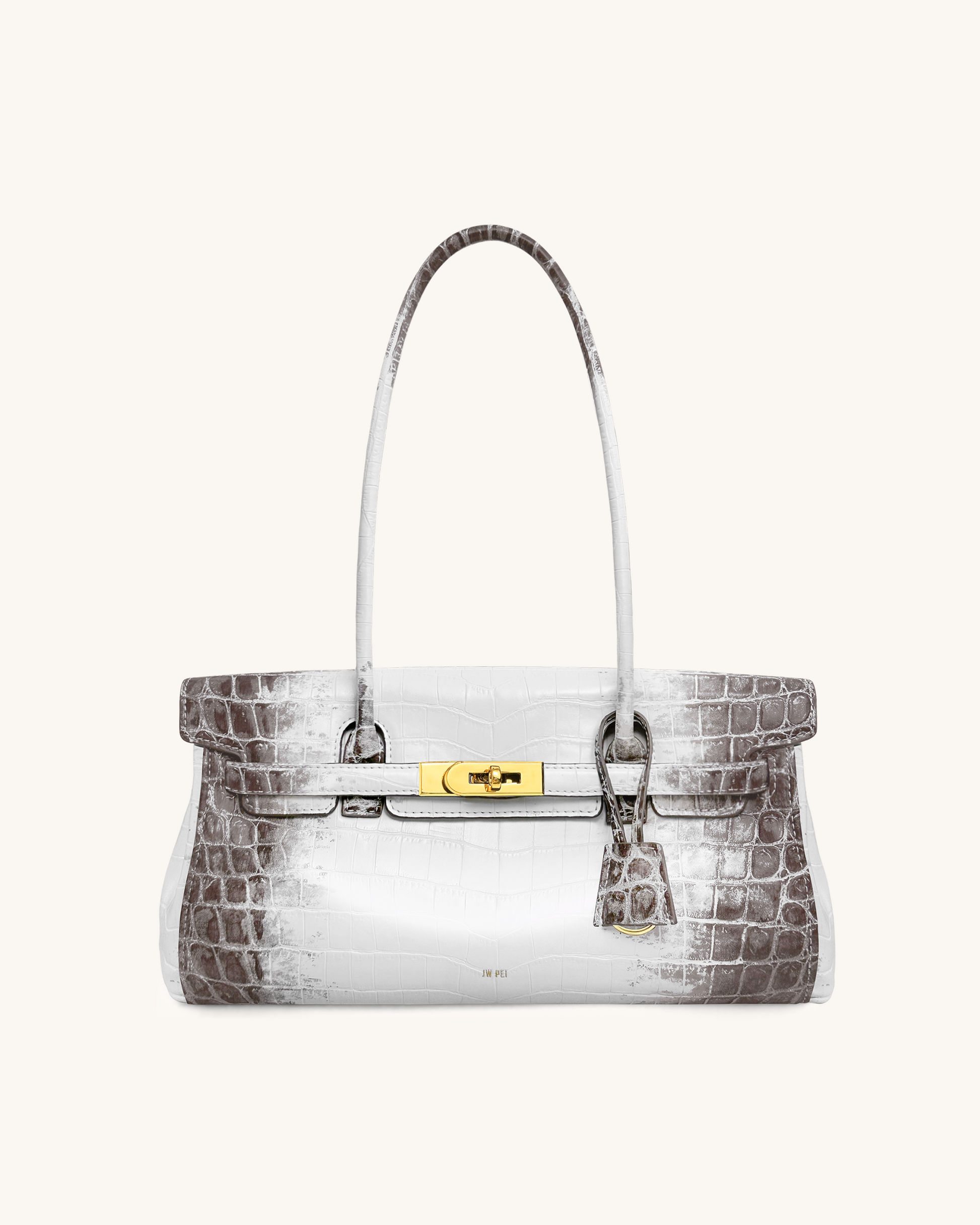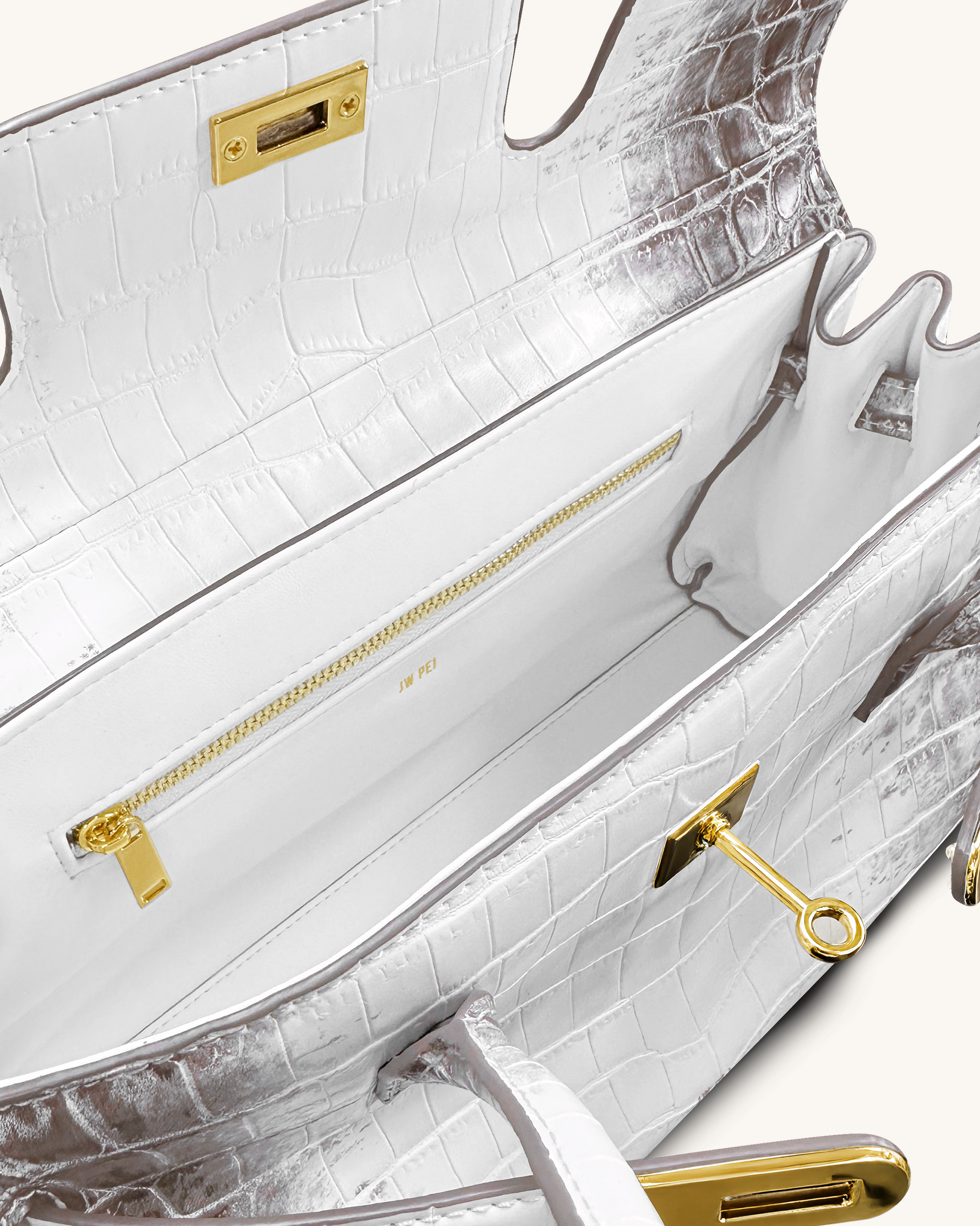 優雅手挽袋,採用奢華鱷魚壓紋純素皮革打造,配以金色金屬配件,盡顯高貴氣質。容量寬敞,輕鬆收納日常用品。