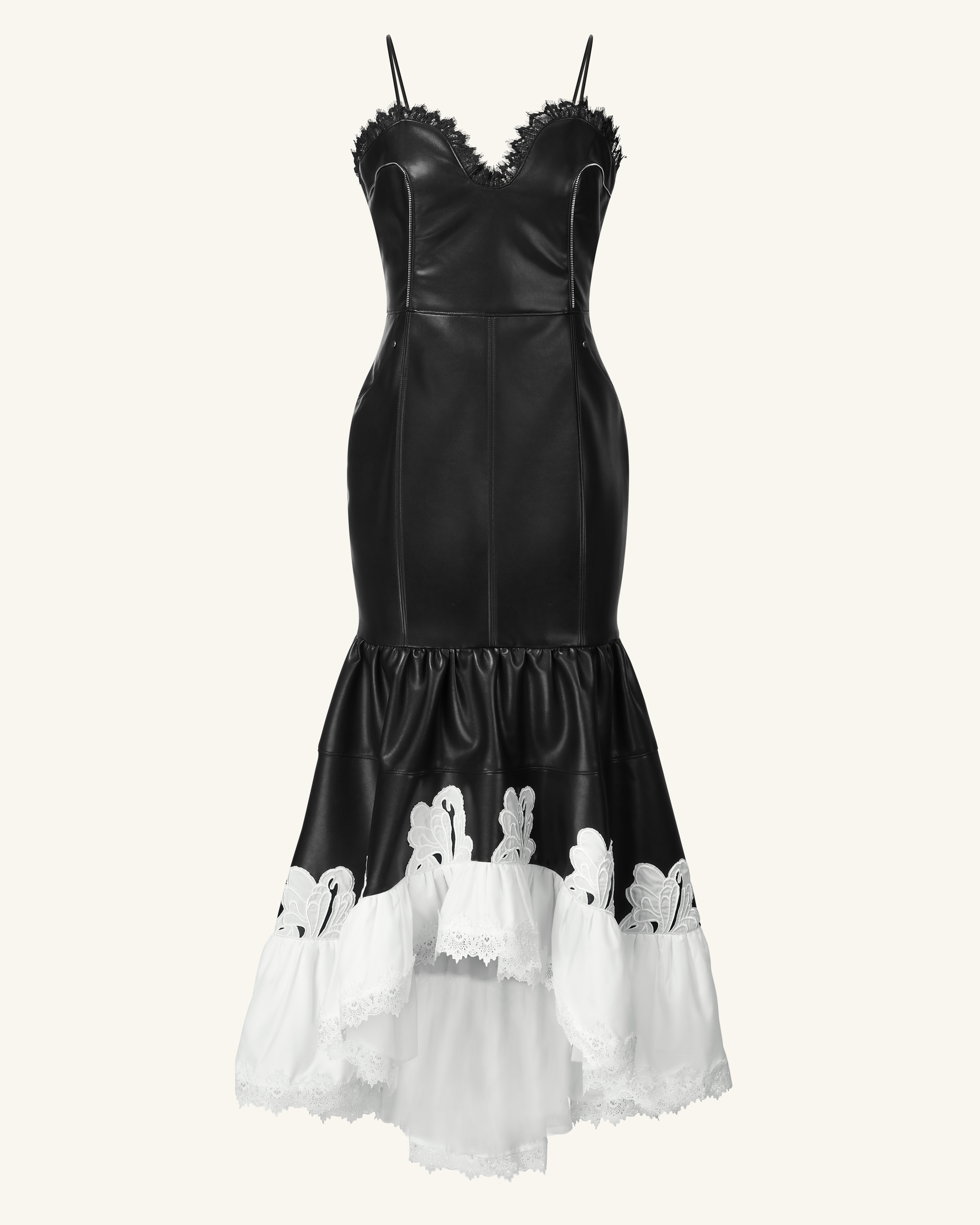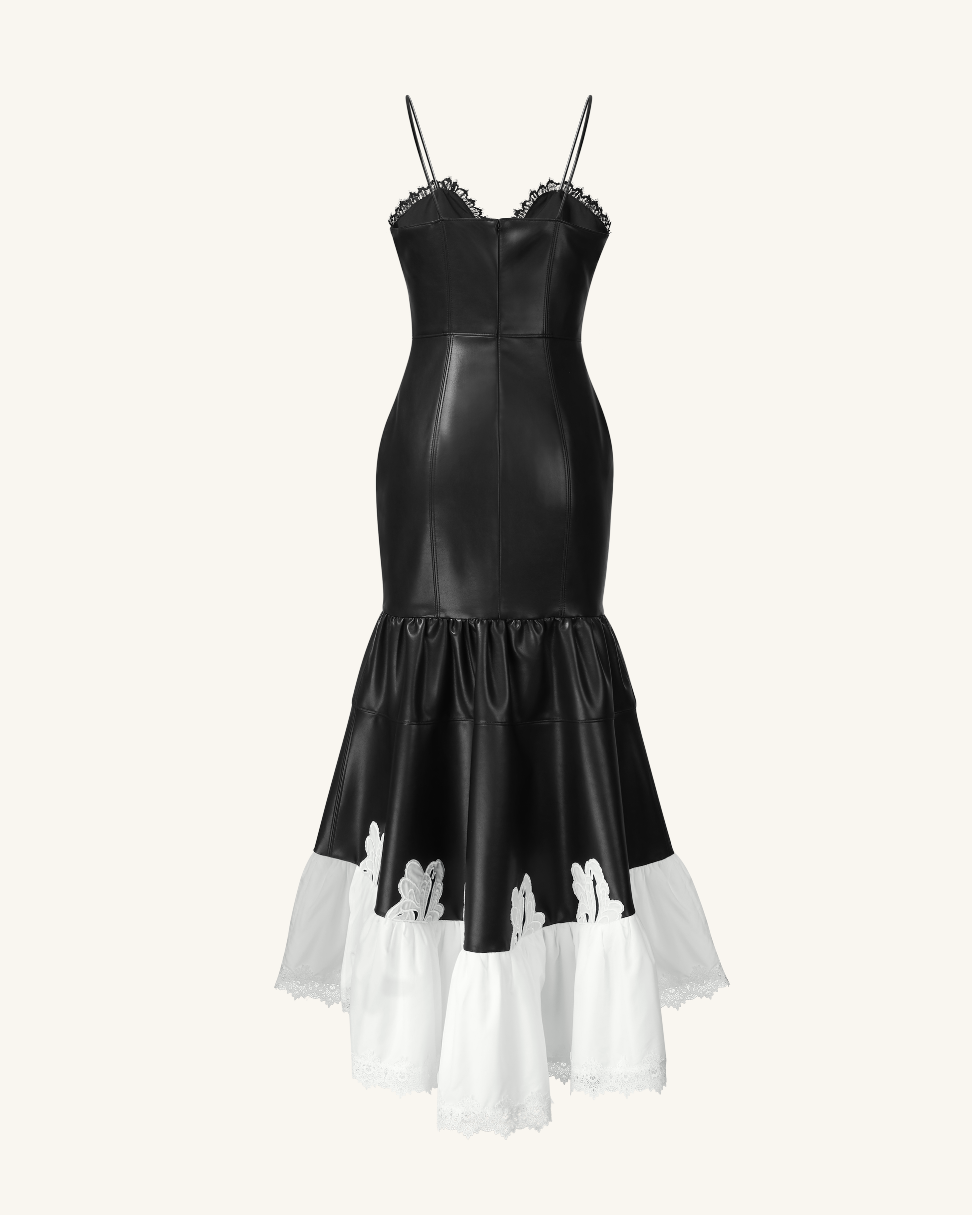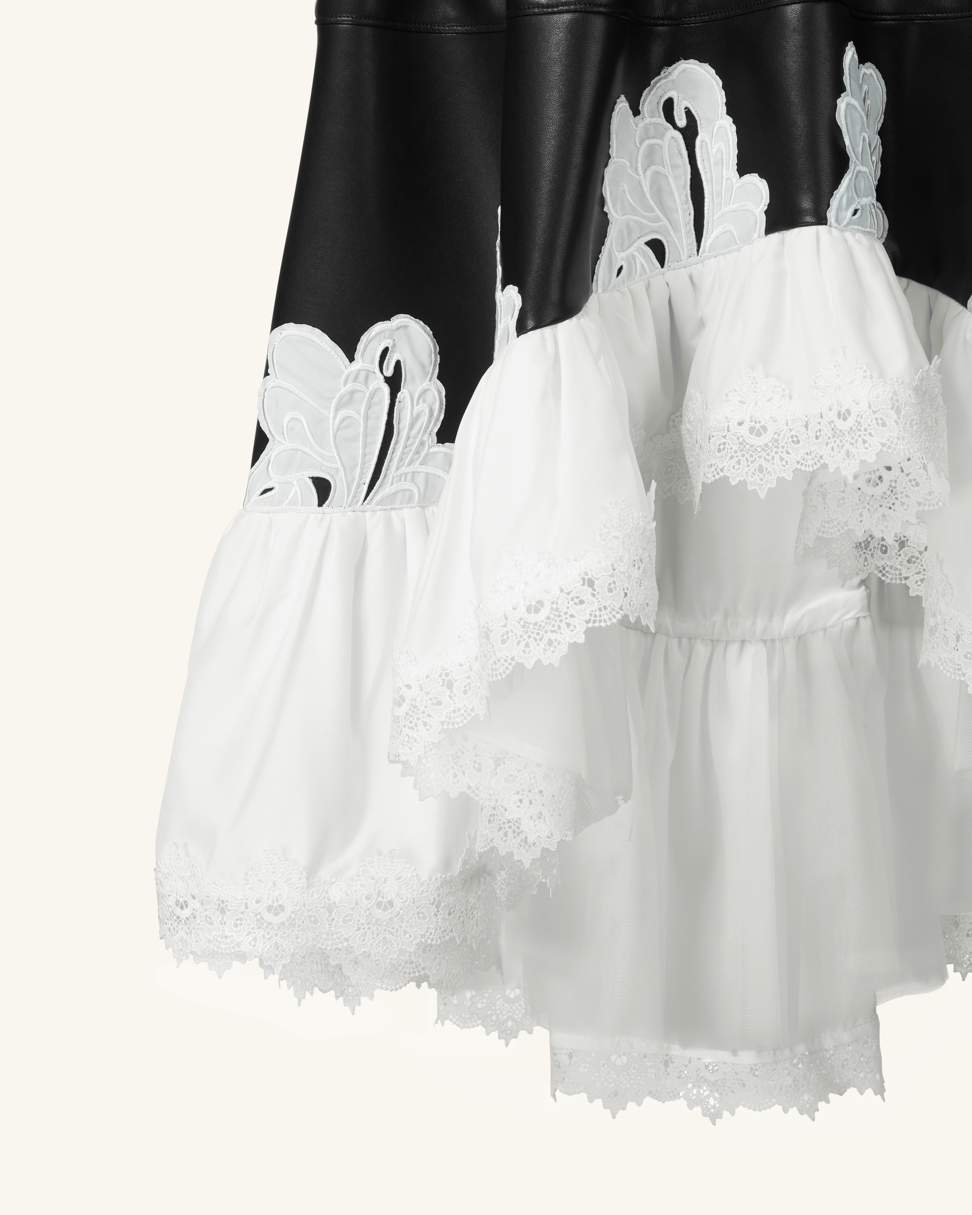 Zora 蕾絲邊皮革裙 - 黑色